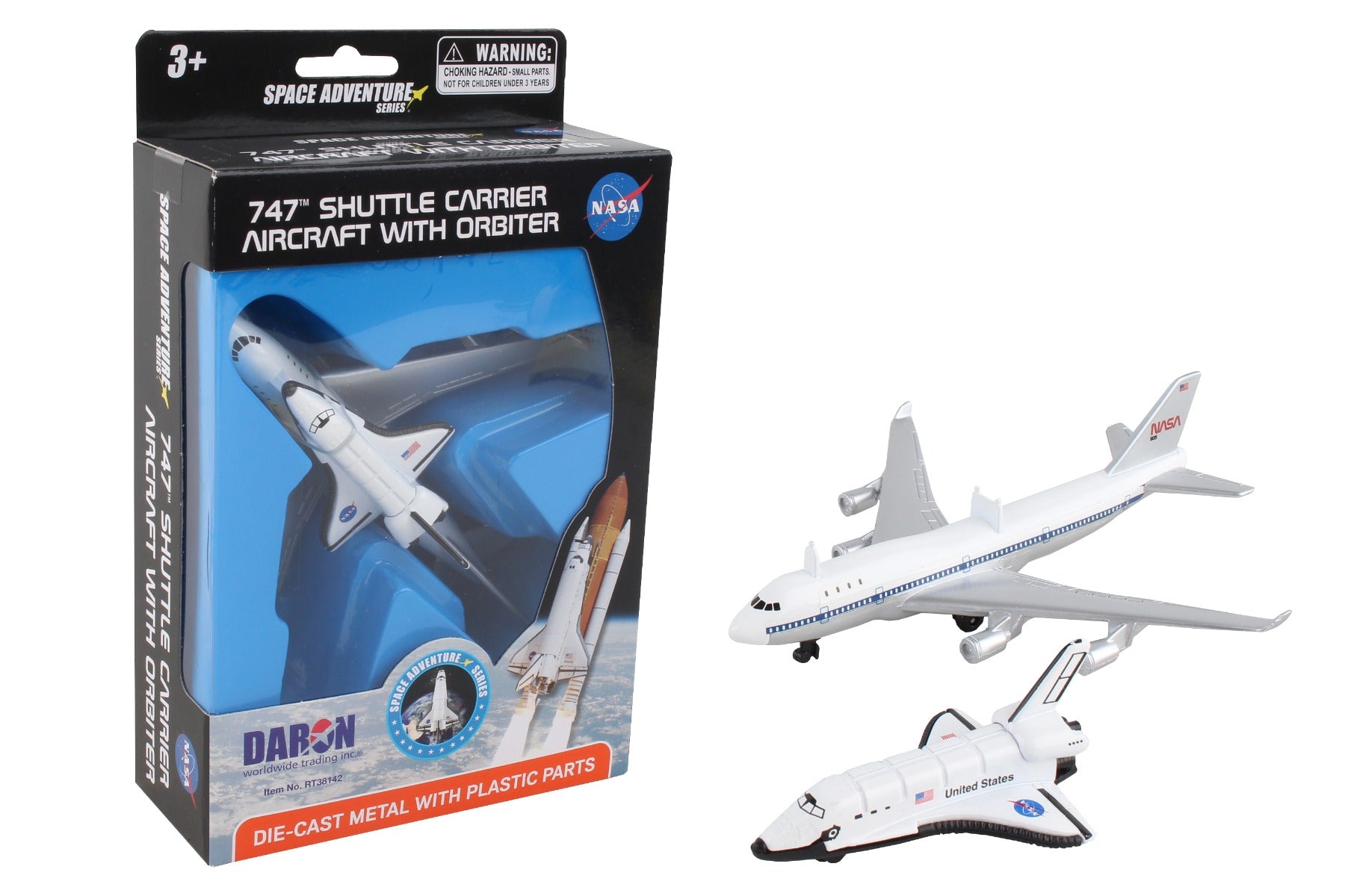 These Space Mission individually packaged toys and playsets are authentic representations of spacecraft past and present. Includes Boeing 747 and space shuttle. Ages 3+