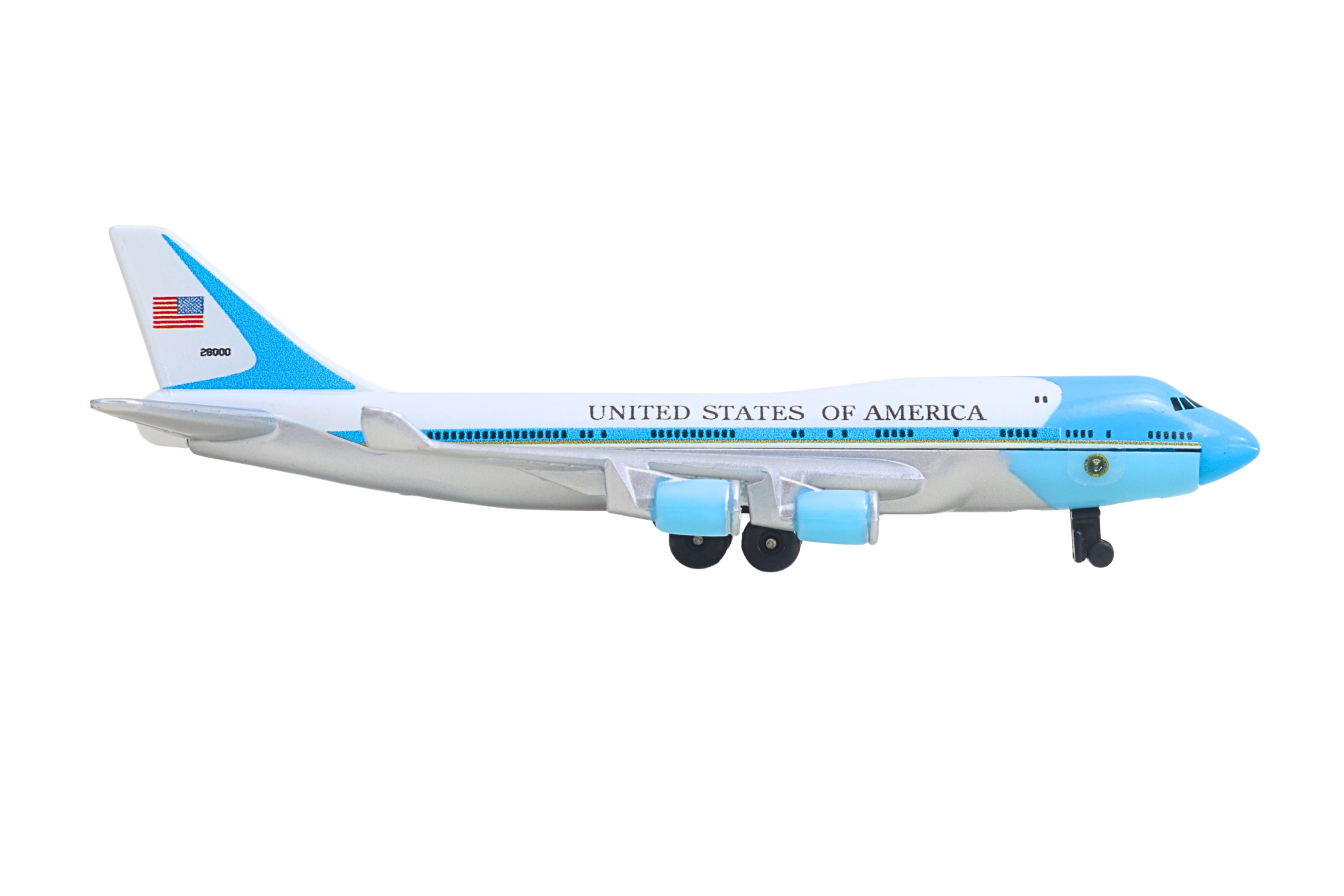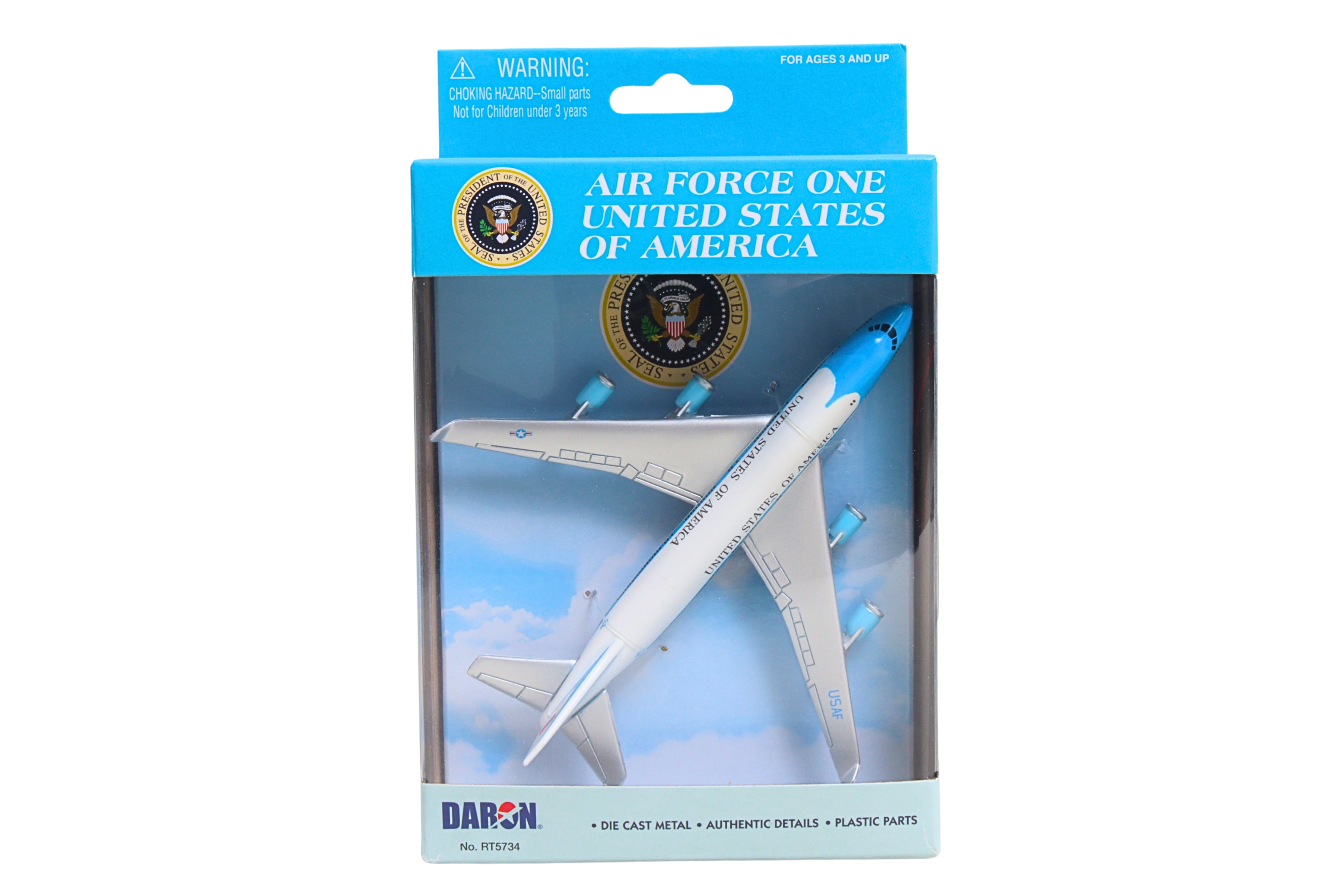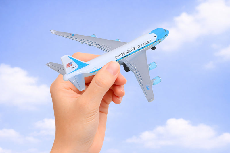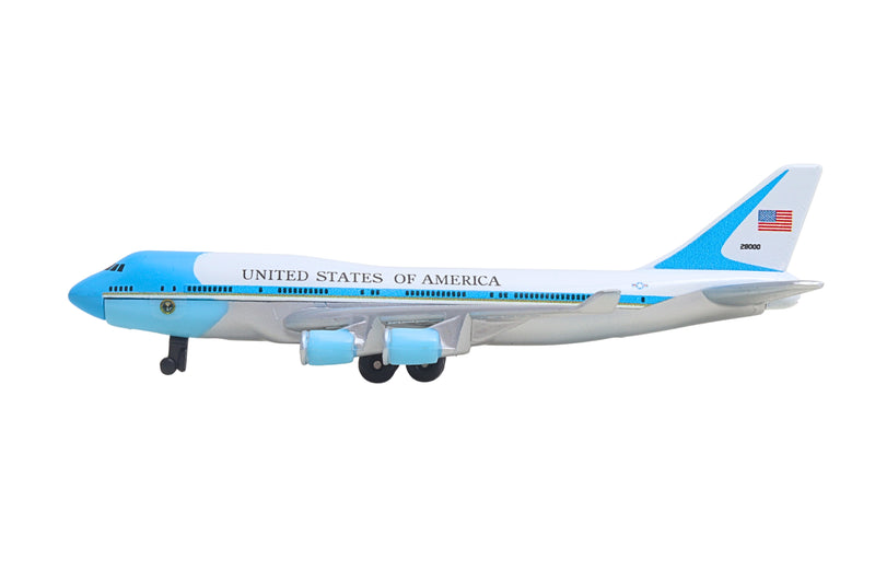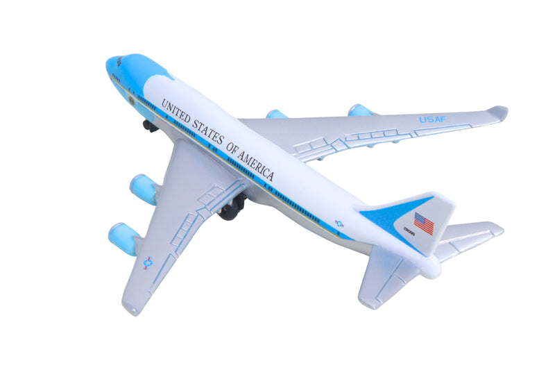 Fueled by your budding pilot's imagination, the DARON Air Force One single Plane is ready to soar right out of the package on journeys to faraway, mysterious places around the world. Constructed from diecast metal and plastic parts with an authentic livery, the DARON Air Force One Single Plane even has rolling wheels to ensure your furniture and floors remain unblemished during taxiing, takeoffs and landings. Perfect for little hands, the DARON Single Plane measures approximately 5-3/4 inches (L) x 5-1/4 Inches (W) x 1-3/4 inch (H) and is intended for ages 3 and up.