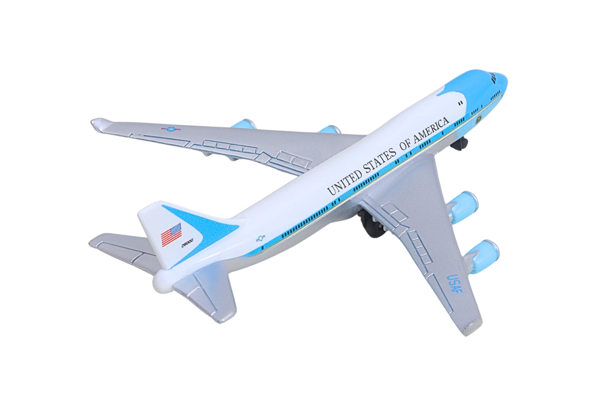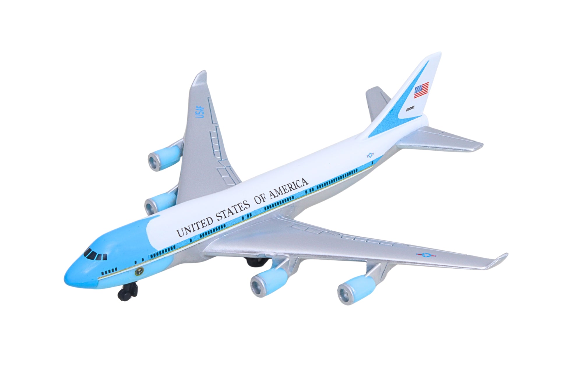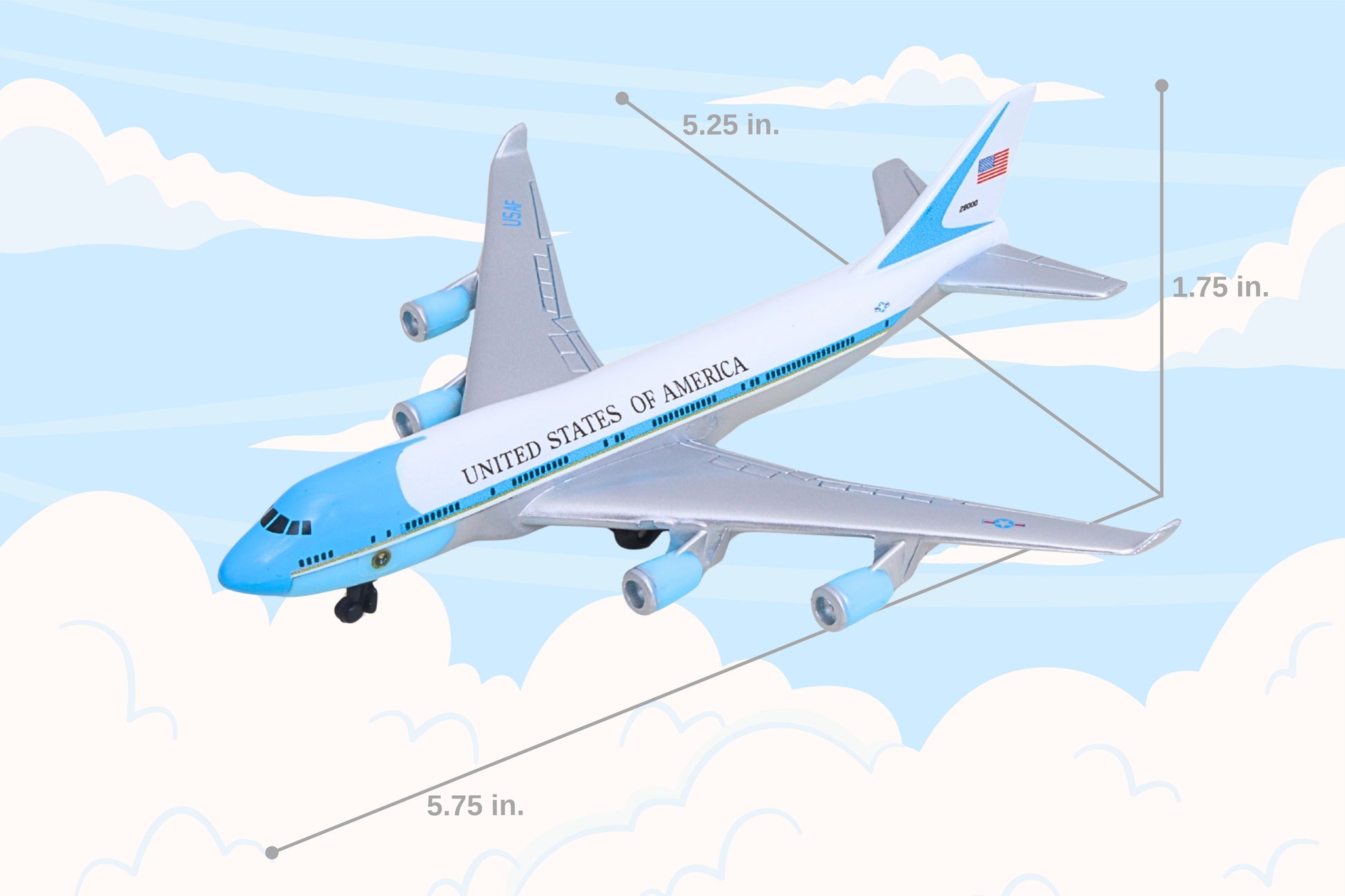 Fueled by your budding pilot's imagination, the DARON Air Force One single Plane is ready to soar right out of the package on journeys to faraway, mysterious places around the world. Constructed from diecast metal and plastic parts with an authentic livery, the DARON Air Force One Single Plane even has rolling wheels to ensure your furniture and floors remain unblemished during taxiing, takeoffs and landings. Perfect for little hands, the DARON Single Plane measures approximately 5-3/4 inches (L) x 5-1/4 Inches (W) x 1-3/4 inch (H) and is intended for ages 3 and up.