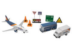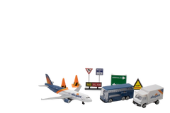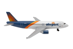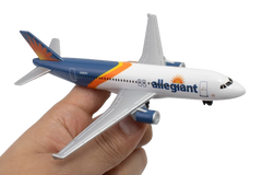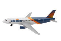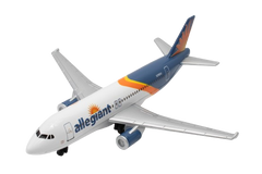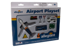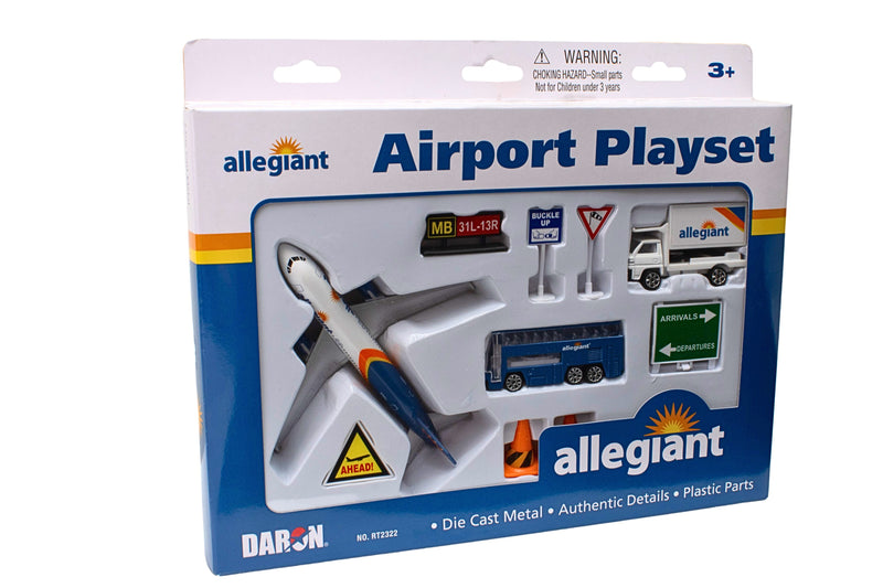 It's time to prepare for takeoff with this Allegiant airport playset featuring a die-cast metal A320 airliner painted in authentic Allegiant livery. It also includes an additional vehicle and accessories that let kids imagine they're on the tarmac, preparing the airplane for takeoff and landing. Kids can also pick up or drop off passengers in the free-wheeling shuttle bus that they roll along. There are also airport and safety signs, and safety cones to help kids create airport adventures whenever they'd like. Other accessories include plastic parts. 8-piece playset of airplane, vehicle, and accessories made from die-cast metal and plastic materials. Recommended for children Ages 3+.