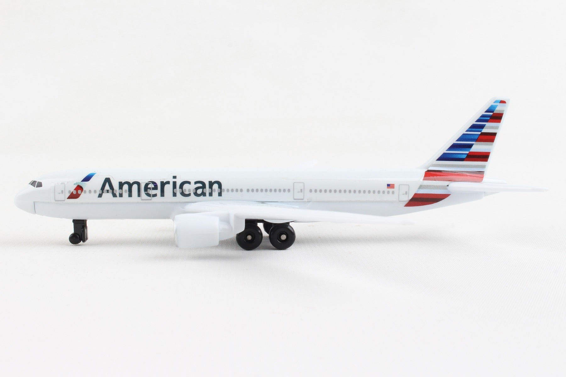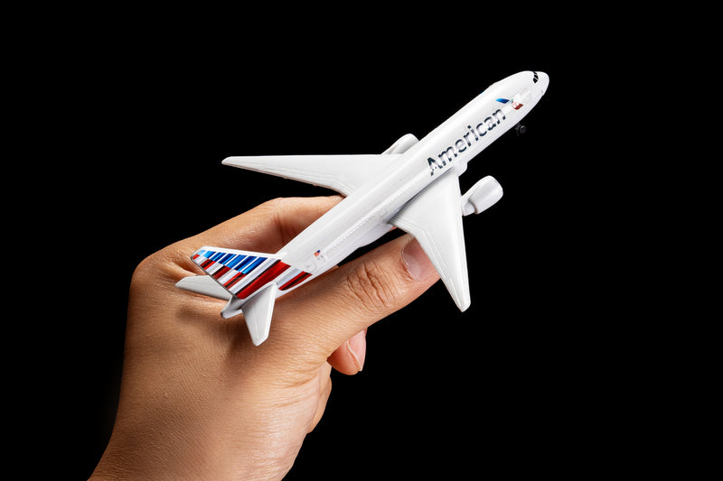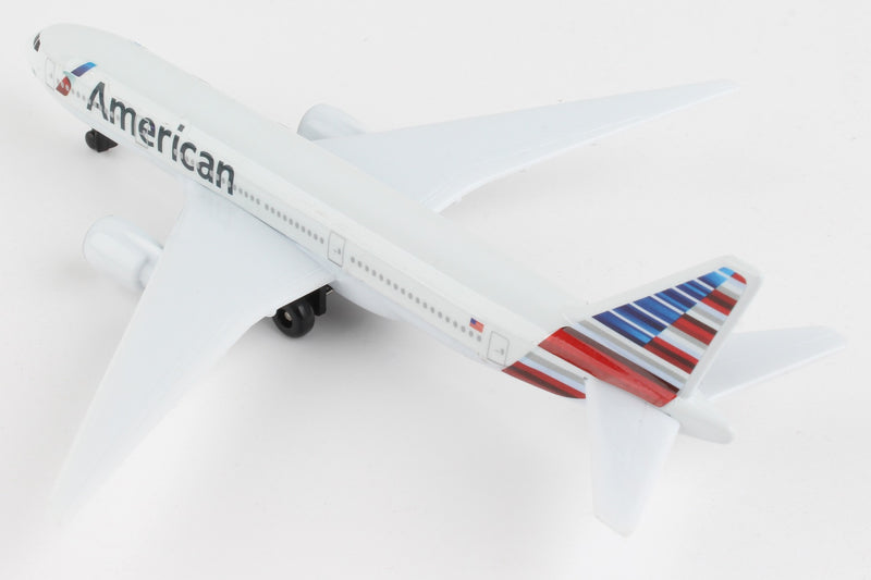 Fueled by your budding pilot's imagination, the DARON American Airlines single Plane is ready to soar right out of the package on journeys to faraway, mysterious places around the world. Constructed from diecast metal and plastic parts with an authentic livery, the DARON American Airlines Single Plane even has rolling wheels to ensure your furniture and floors remain unblemished during taxiing, takeoffs and landings. Perfect for little hands, the DARON Single Plane measures approximately 5-1/2-inches (L) x 5 3/4-Inches (W) x 1-Inch (H) and is intended for ages 3 and up.
