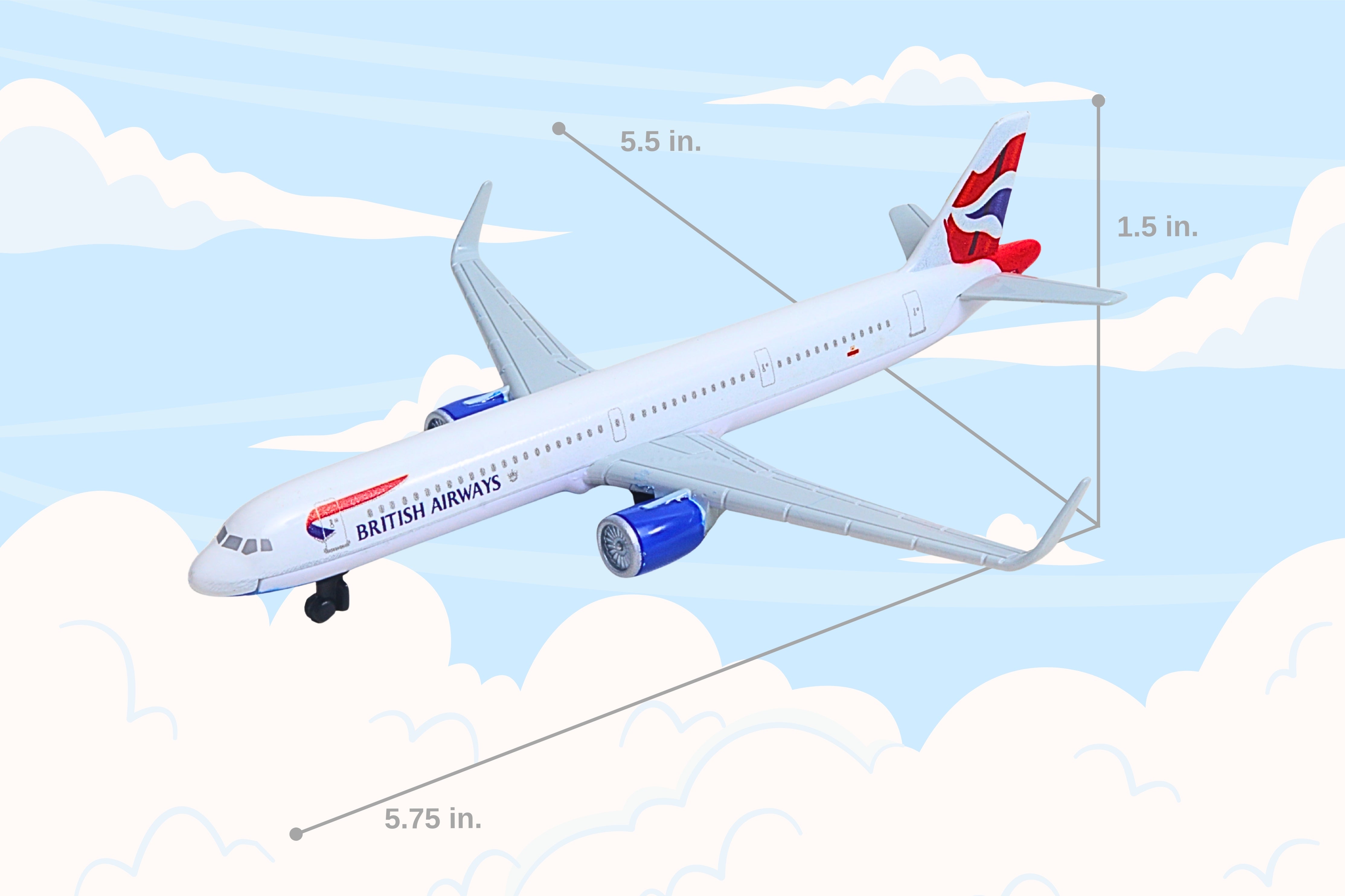 Bring home the excitement of air travel with the Daron British Airways A321 Single Plane. This officially licensed die-cast metal model captures the sleek design and signature livery of the real British Airways A321 aircraft. Perfect for young aviation fans and collectors alike, this detailed toy offers realistic markings and durable construction for hours of imaginative play or display. Daron British Airways A321 Single Plane measures approximately 5-3/4-Inches (L) x 5-1/2-Inches (W) x 1 1/2-Inch (H) and is intended for ages 3 and up.