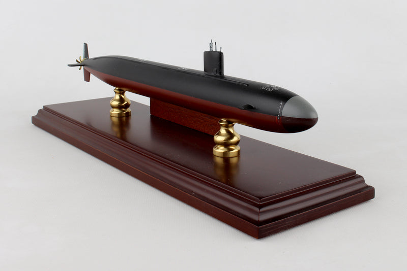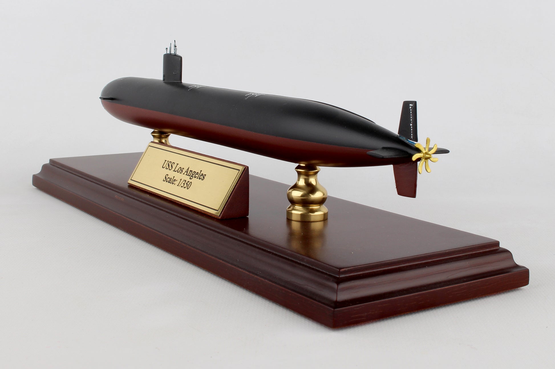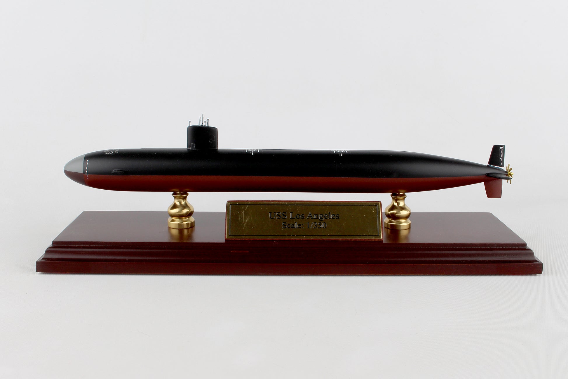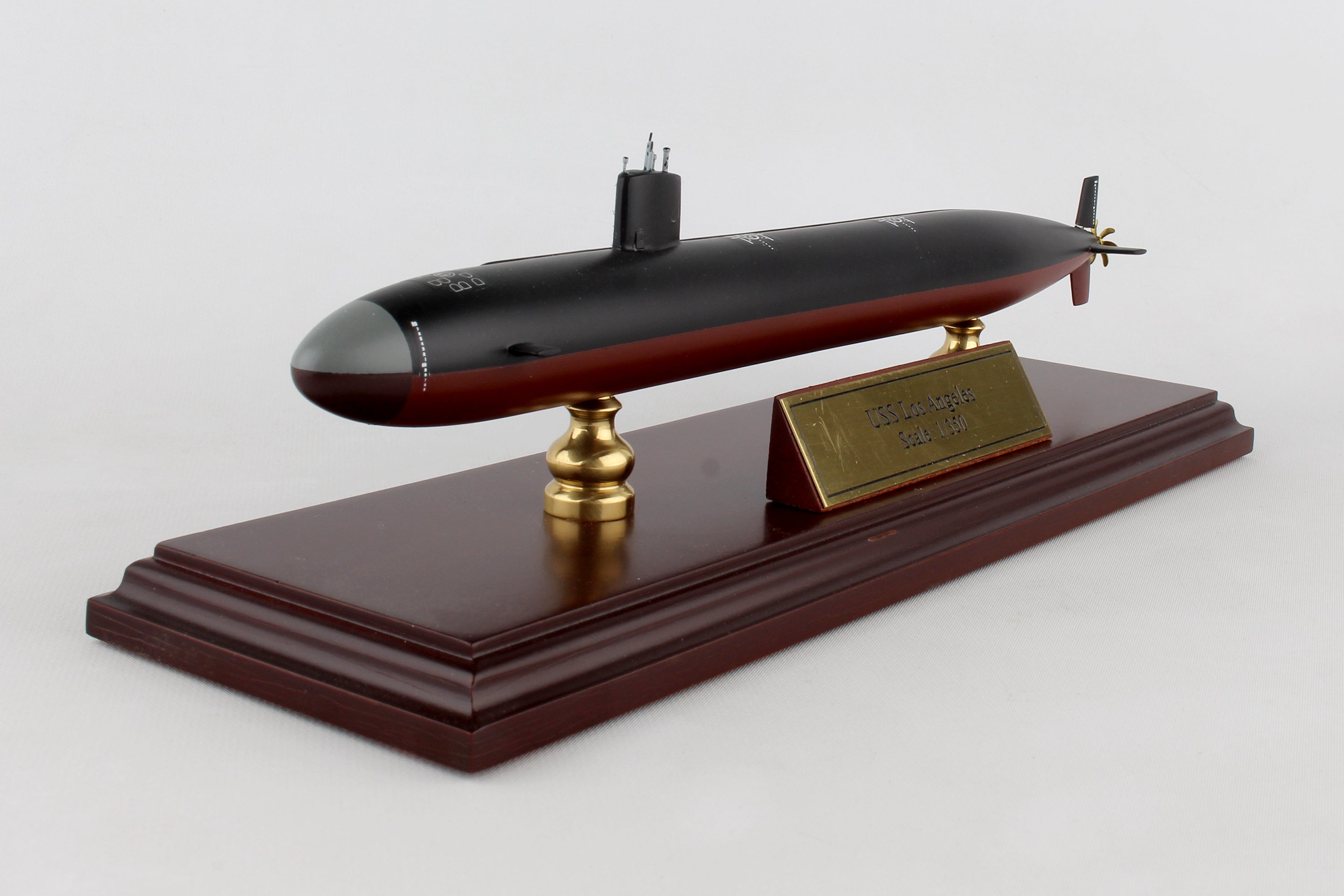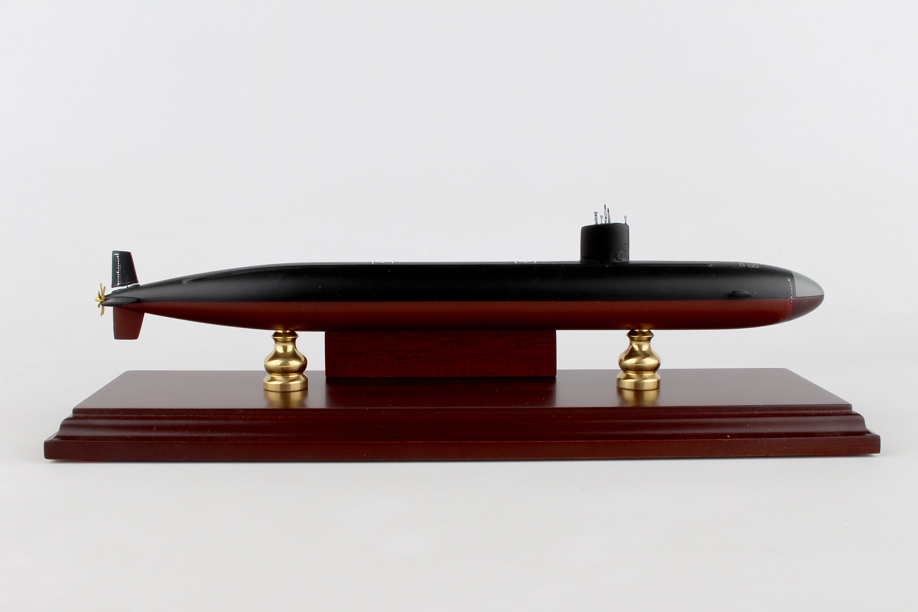 The Los Angeles class are nuclear-powered fast attack submarines (SSN) in service with the United States Navy, also known as the 688 class. This high quality replica is handcrafted from wood and comes with a wooden base. Length is 12" and beam is 1".