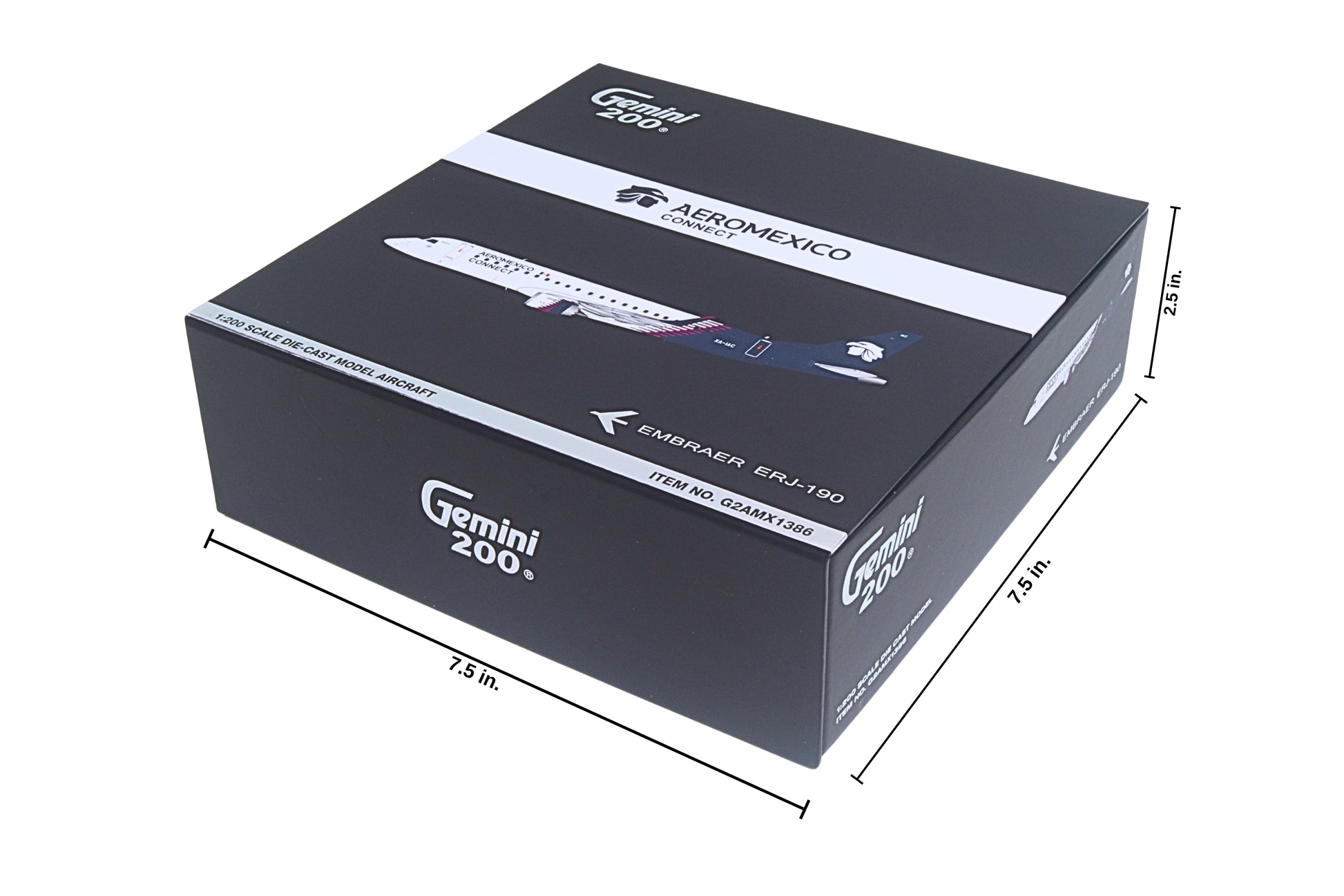 E190 1/200 This Die-cast metal airplane model comes in 1/200 scale with landing gear and stand. Model is approximately 7 inches long with 5 ½ inch wingspan. Adult collectible ages 14+