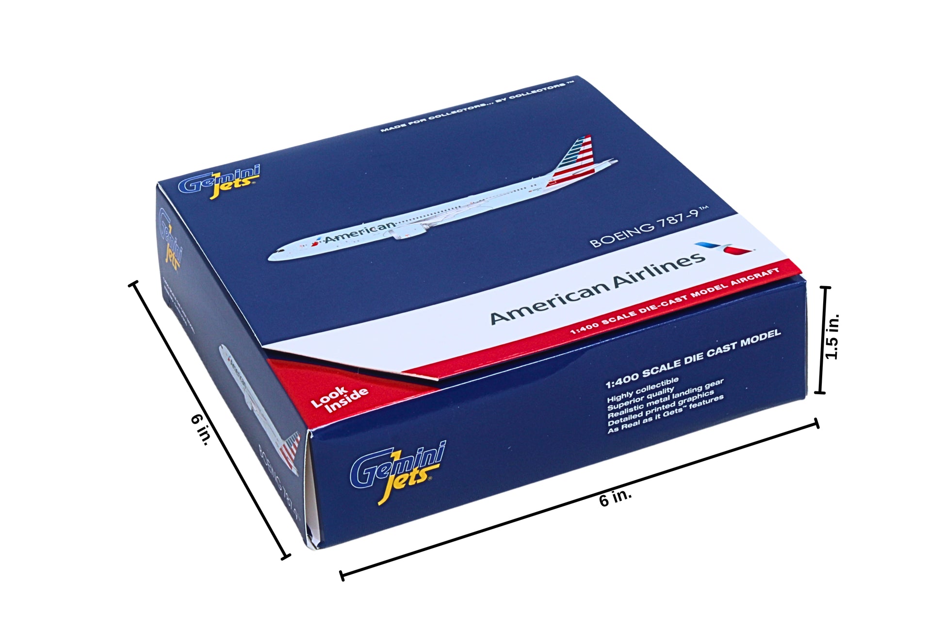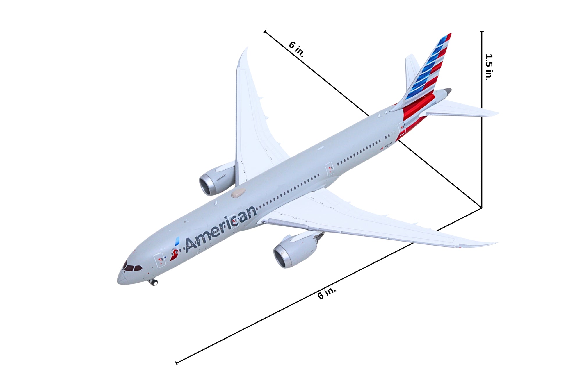 787-9 1/400 This die-cast metal airplane model comes in 1/400 scale with landing gear no stand. Model is approximately 6 inches long with 5 ¾ inch wingspan. Adult collectible ages 14+