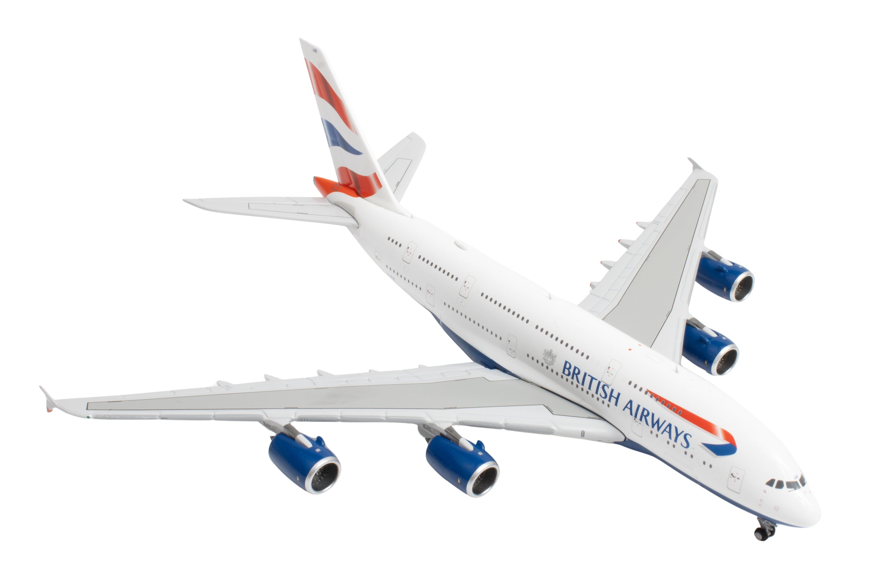 A380 1/400 This die-cast metal airplane model comes in 1/400 scale with landing gear no stand. Model is approximately 7 inches long with 7 ¾ inch wingspan. Adult collectible ages 14+