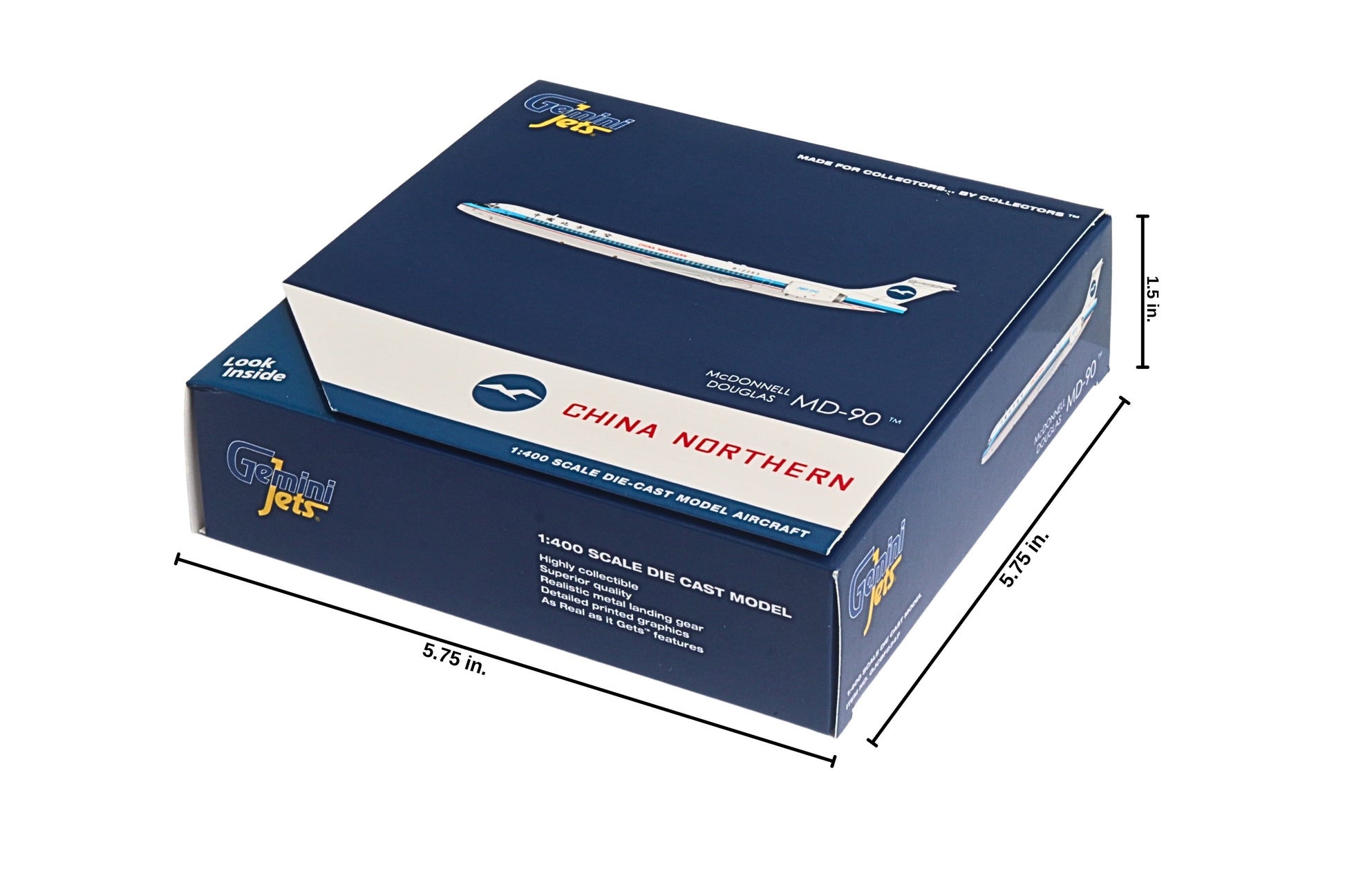 MD-90 1/400 This die-cast metal airplane model comes in 1/400 scale with landing gear no stand. Model is approximately 4 1/4 inches long with 3 1/4 inch wingspan. Adult collectible ages 14+