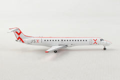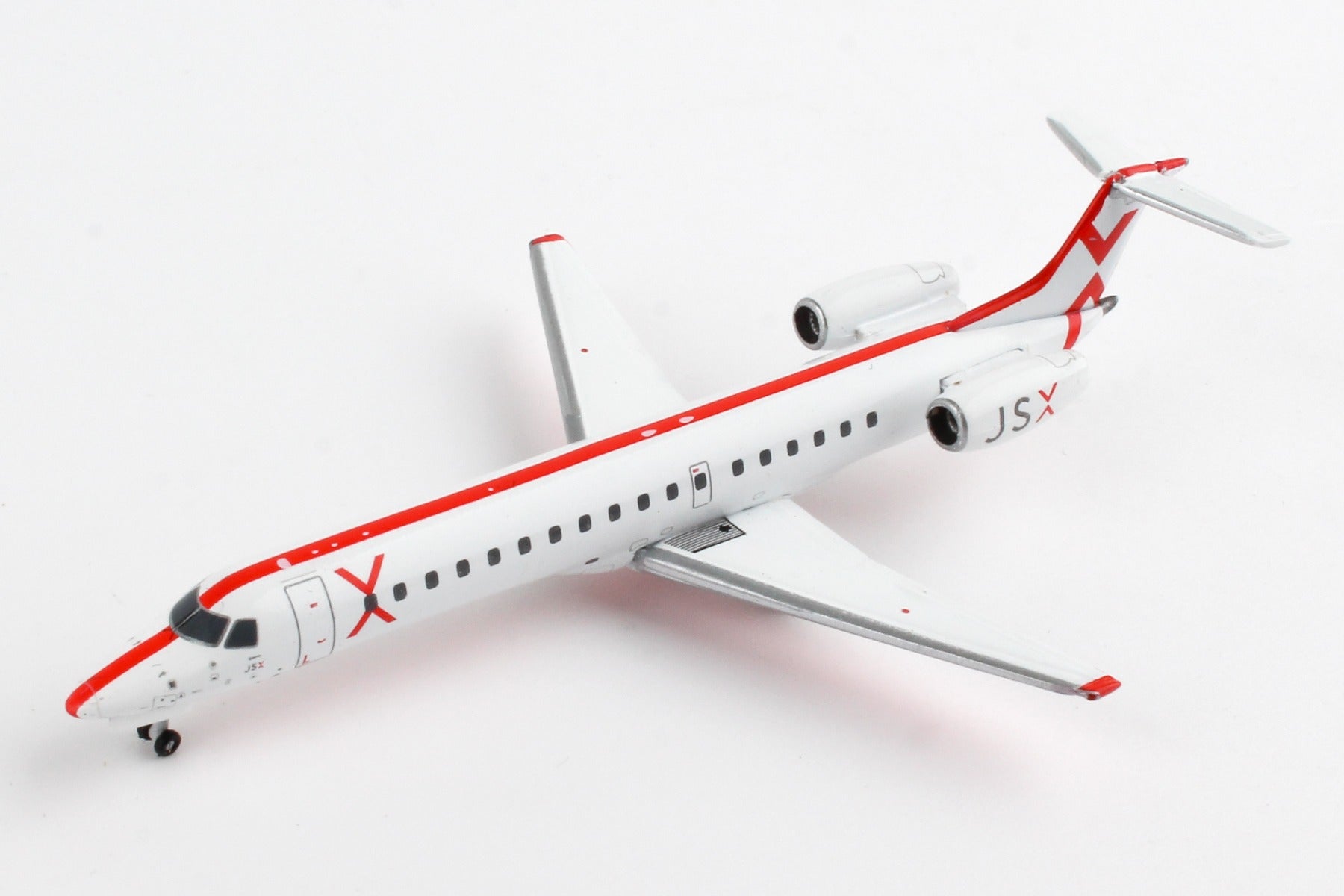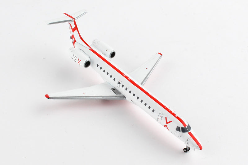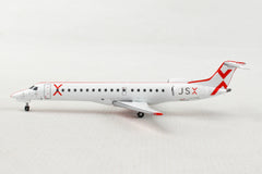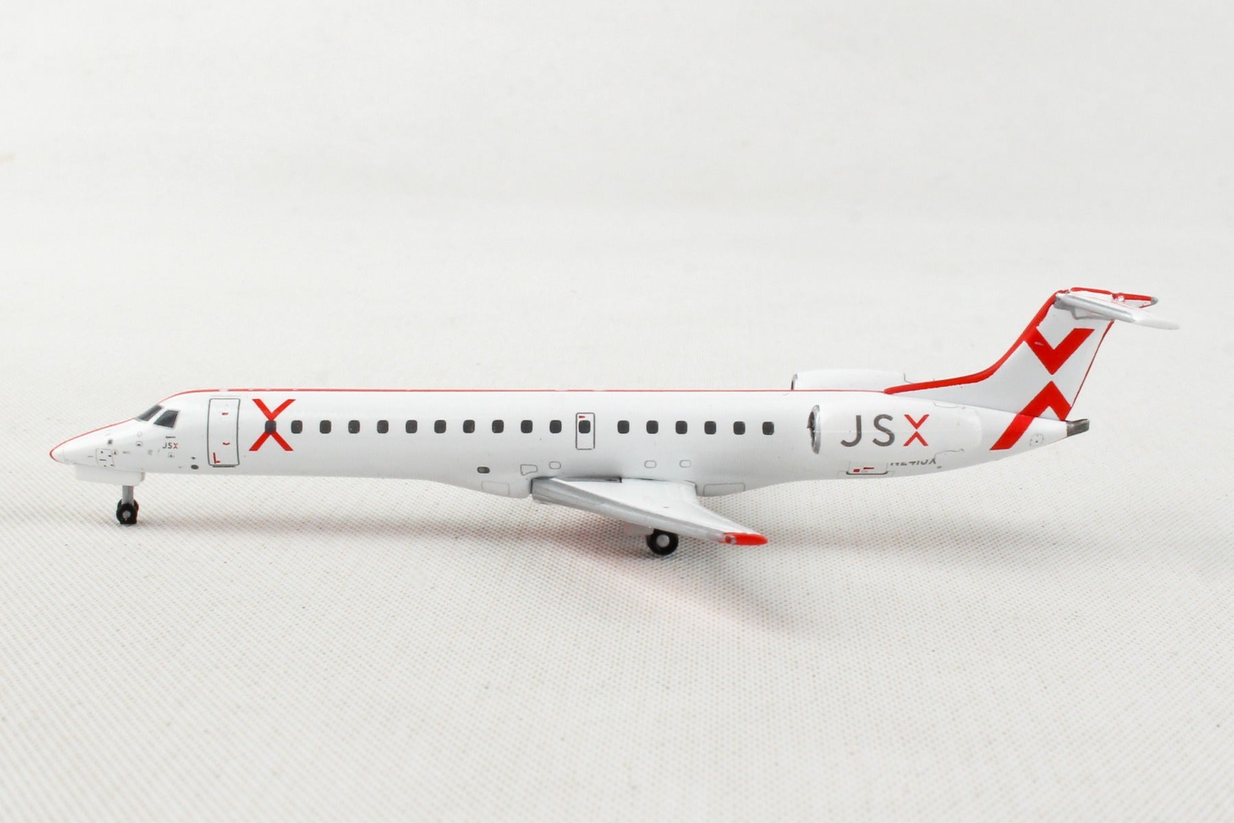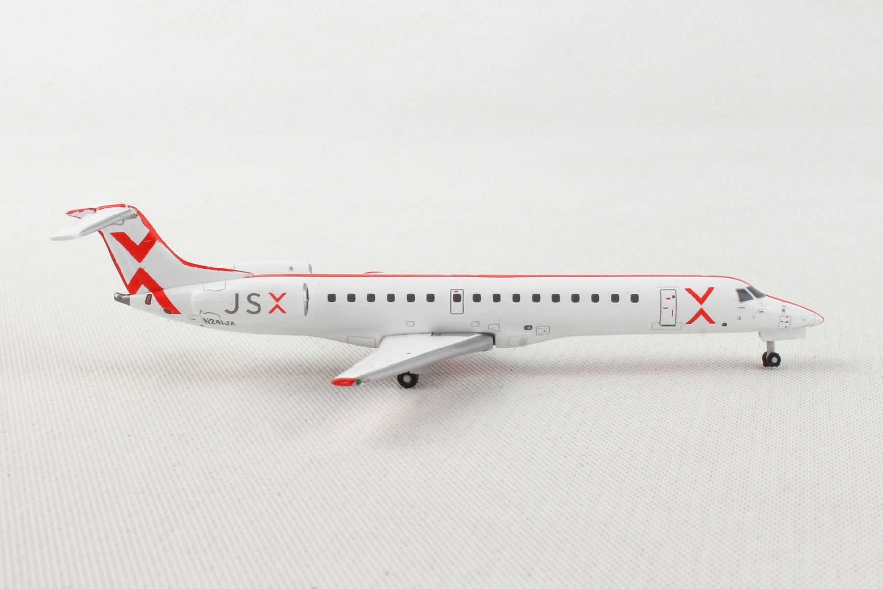 GeminiJets 1/400 scale JSX Jet Suite X / JSX Air Embraer ERJ-145 diecast model is As Real as it Gets™ and measures approximately 3-inches long with a 2-1/16-inch wingspan. Manufactured by GeminiJets as a limited edition, highly collectible model, this JSX Jet Suite X / JSX Air Embraer ERJ-145 - Registration N241JX - has been meticulously recreated from Embraer's blueprints and features realistic landing gear and detailed graphics, assuring the utmost accuracy and superior quality. A Display Stand is not included and is sold separately - Gemini GJSTD777. Originally conceived as a growth variant of the popular EMB-120 Brasilia turbo-prop, the ERJ-145 (formerly the EMB-145) answered the needs of the world's airlines for a small capacity jet airliner. With passengers in tertiary markets previously having had to fly on turbo-props, the Brazilian based manufacturer, Embraer was able to successfully develop a modern and efficient 50-passenger jet. Initiated in 1989, the first flight of the ERJ-145 took place in August 1995 with deliveries to launch customer Continental Airlines having begun in December 1996. At its peak, there were more than 1,000 of these versatile jets operating worldwide.
