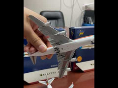 This die-cast metal airplane model comes in 1/400 scale with landing gear no stand. Model is approximately 7 inches long with 5 3/4 inch wingspan.