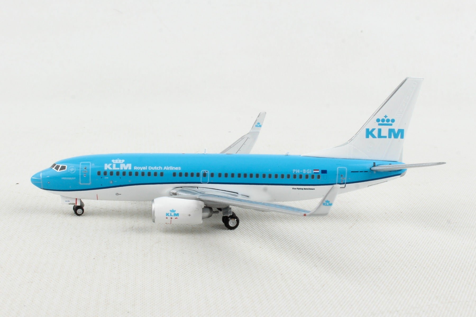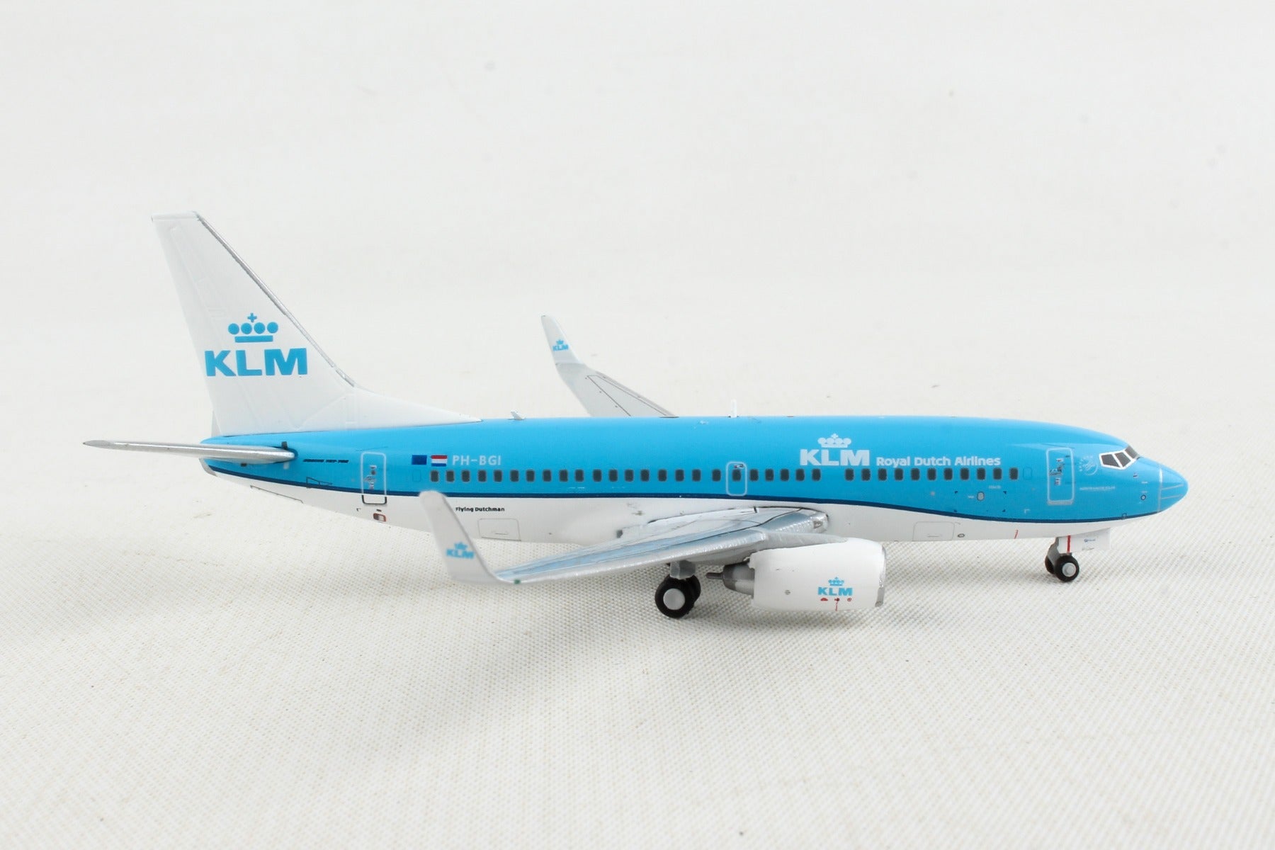 GeminiJets 1/400 scale KLM Boeing 737-700W diecast model is As Real as it Gets™ and measures approximately 3-1/4-inches long with a 3-1/2-inch wingspan. Manufactured by GeminiJets as a limited edition, highly collectible model, this KLM Boeing 737-700W - Registration PH-BGI - has been meticulously recreated from Boeing's blueprints and features realistic landing gear and detailed graphics, assuring the utmost accuracy and superior quality. A Display Stand is not included and is sold separately - Gemini GJSTD777. In the early 1990s, Boeing worked on designing an aircraft that would replace older models of its popular Boeing 737 jetliner. In June 1983, Boeing launched the 737-X program after having received an order from Southwest Airlines for 63 aircraft. This resulted in the development of the 737 Next Generation (737NG or 737 Next Gen) aircraft and would go on to include four different variants: the -600, -700, -800 and -900. The Boeing Next Generation 737s incorporated a larger wing, more powerful engines and can fly longer range routes with higher payloads than the earlier 737 models. The Boeing 737-700 was the first variant to enter production, with the first delivery having been made to Southwest Airlines in December 1997. Thereafter, in September 1994, the first Boeing 737-800 was delivered to Hapag-Lloyd, which is a longer version of the Boeing 737-700, with seating for up to 189 passengers. Then, in 1988, SAS became the first airline to take delivery of the Boeing 737-600, which is the smallest Boeing 737 in the Next Generation family, with seating for 110 to 132 passengers. The last aircraft in the Next Generation family, the Boeing 737-900, which is the Longest 737NG, was launched in November 1997, with Alaska Airlines having placed the first order. Boeing also subsequently introduced its Boeing 737-900ER, which offers greater range with a higher payload capacity than the Boeing 737-900. Today many of the Next Generation 737s incorporate blended winglets, which help to increase lift, reduce drag, and helps to reduce fuel consumption and engine wear. A split scimitar winglet featuring a distinctive curve was also released to further reduce energy loss. Recognized as Boeing's most successful airliner program to date, the 737NG program has been superseded by the improved 737 Max family of aircraft.