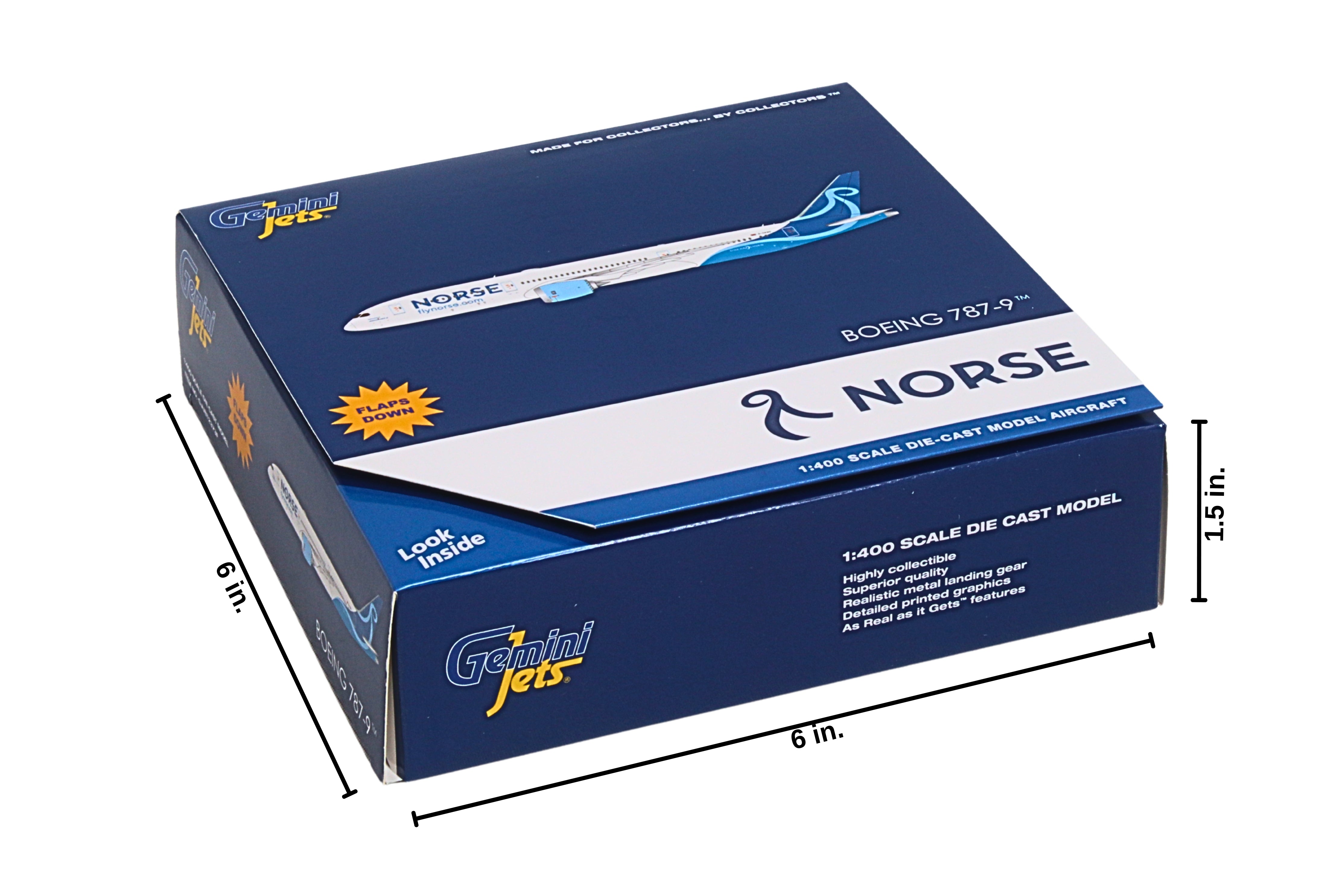 787-9 1/400 This die-cast metal airplane model comes in 1/400 scale with landing gear no stand. Model is approximately 6 inches long with 5 ¾ inch wingspan. Adult collectible ages 14+