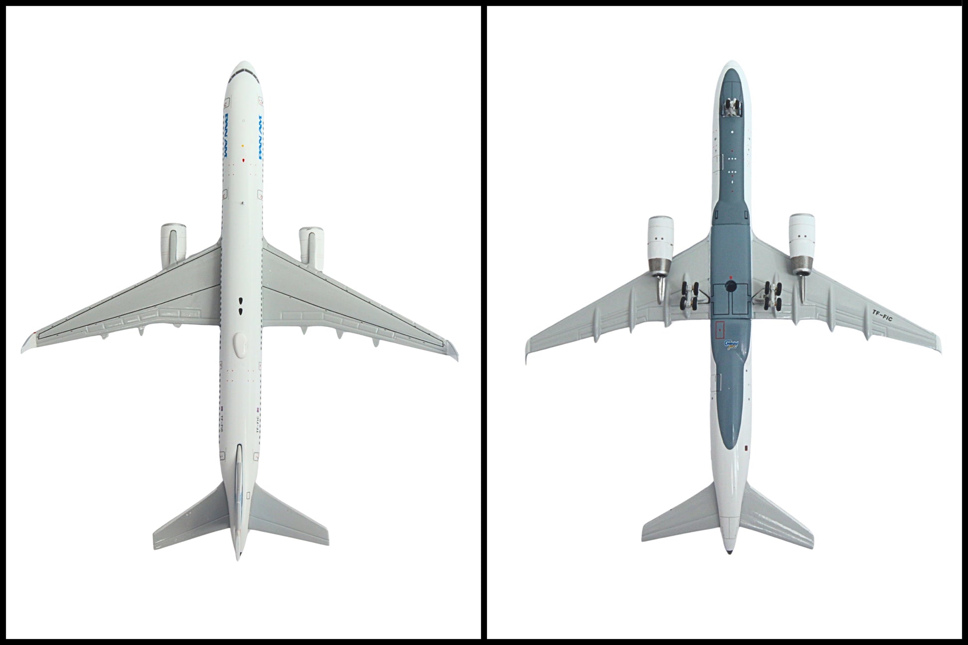757-200 1/400 This die-cast metal airplane model comes in 1/400 scale with landing gear no stand. Model is approximately 4 ¾ inches long with 3 ¾ inch wingspan. Adult collectible ages 14+