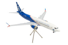 737MAX8 1/200 This Die-cast metal airplane model comes in 1/200 scale with landing gear and stand. Model is approximately 7 ½ inches long with 7 inch wingspan. Adult collectible ages 14+