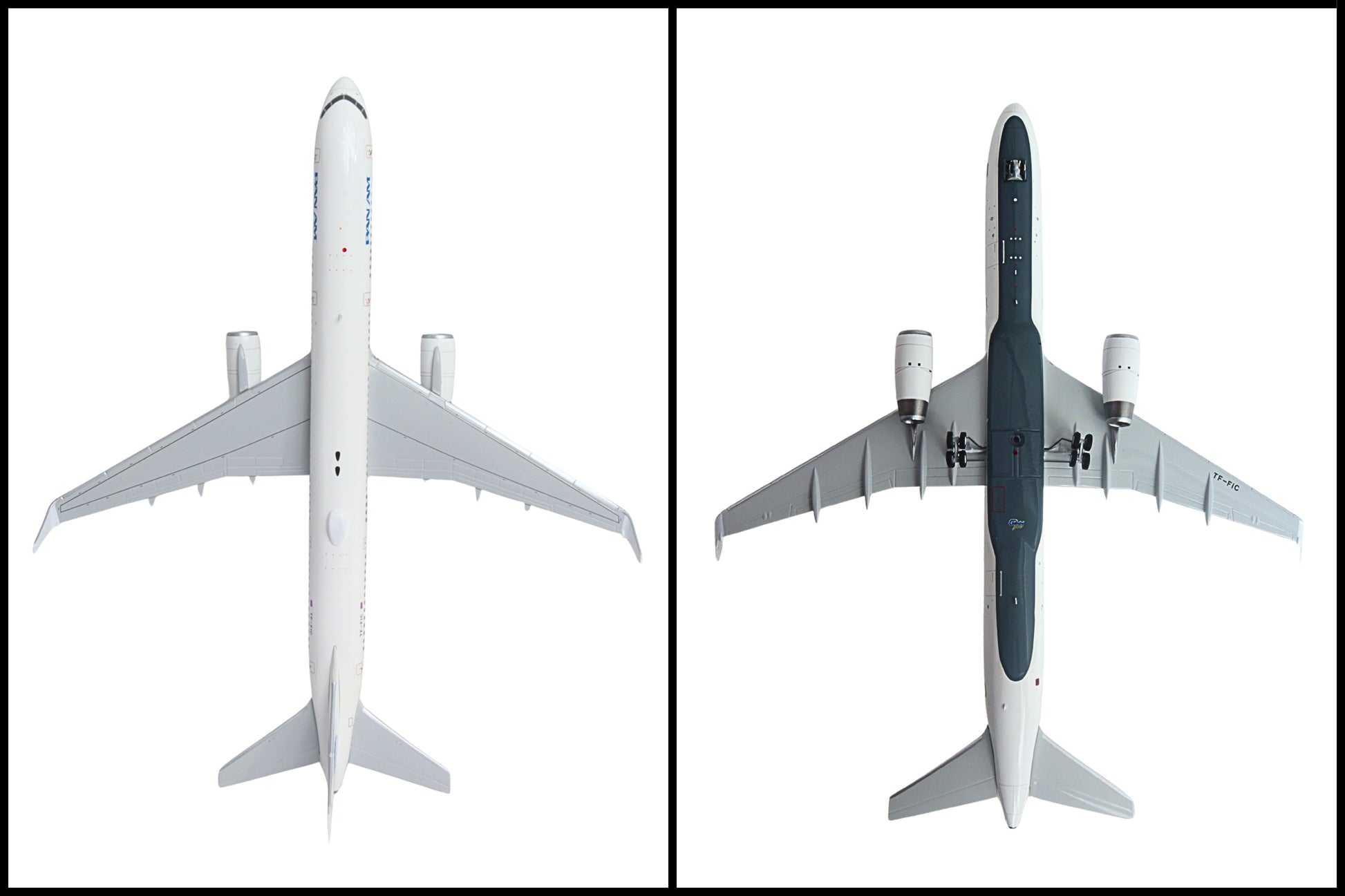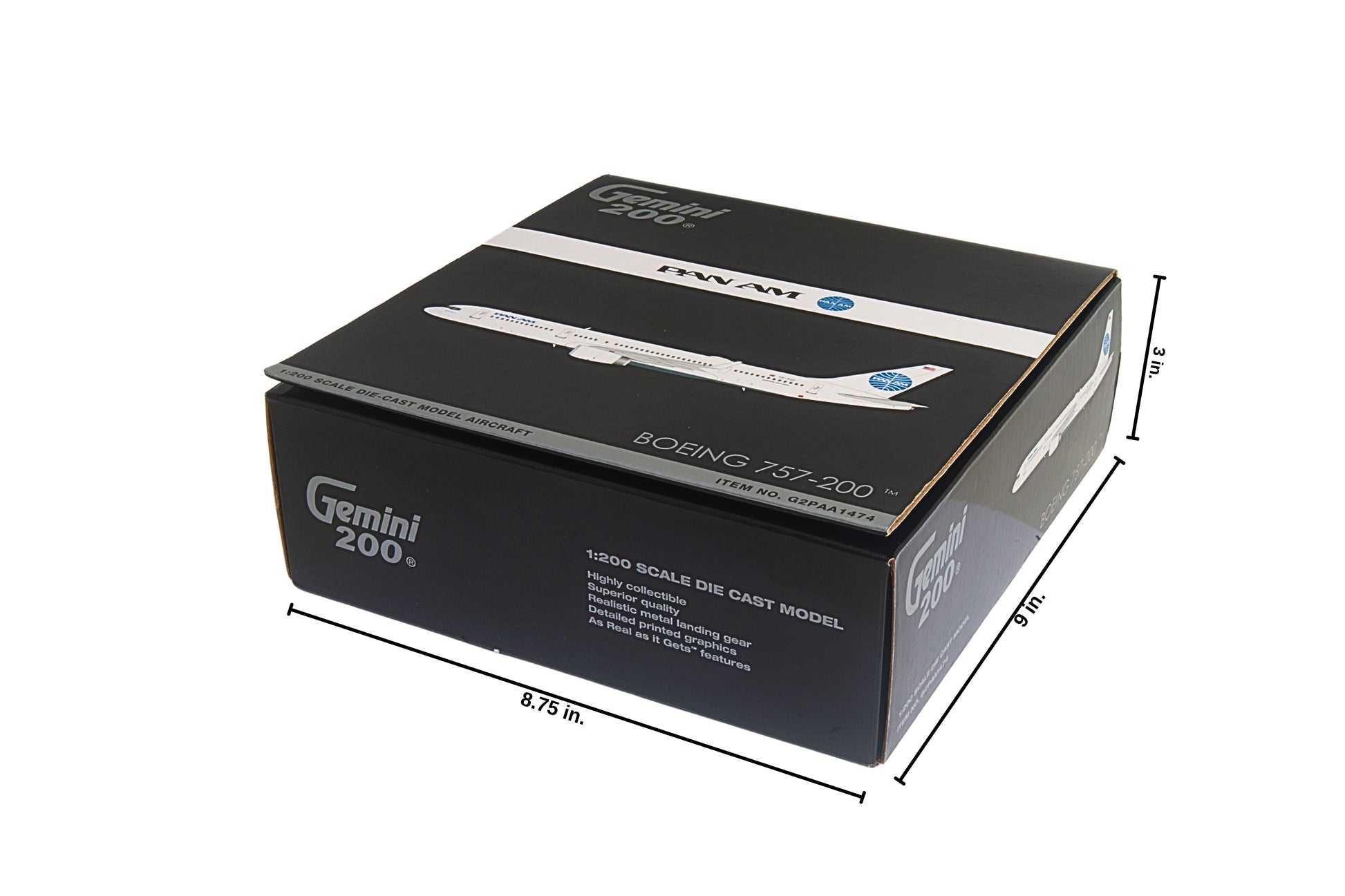757-200 1/200 This Die-cast metal airplane model comes in 1/200 scale with landing gear and stand. Model is approximately 9 ¼ inches long with 7 ½ inch wingspan. Adult collectible ages 14+.