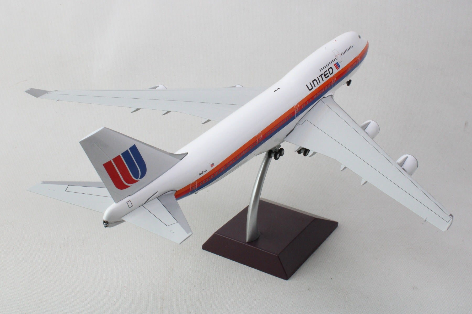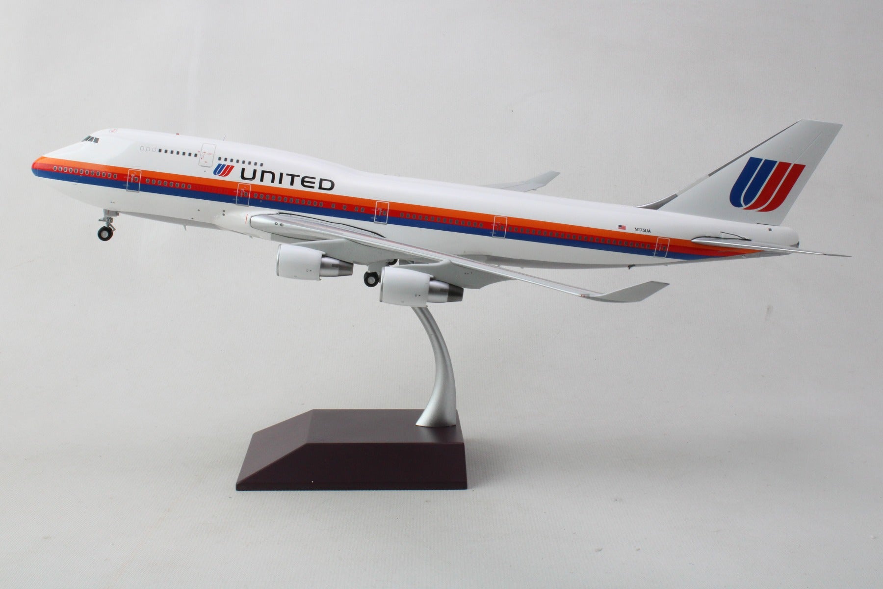 747-400 1/200 This Die-cast metal airplane model comes in 1/200 scale with landing gear and stand. Model is approximately 14 inches long with 12 1/2 inch wingspan. Adult collectible ages 14+