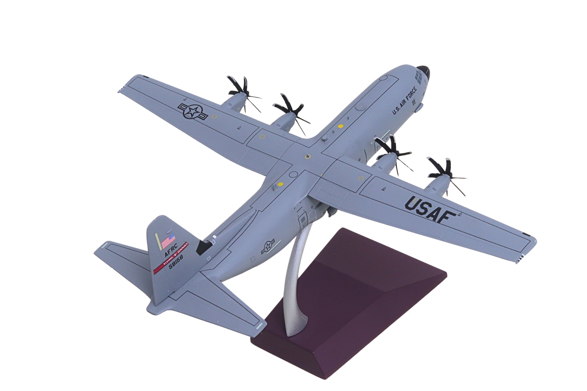 C-130J 1/200 This Die-cast metal airplane model comes in 1/200 scale with landing gear and stand. Model is approximately 6 ¾ inches long with 8 inch wingspan.