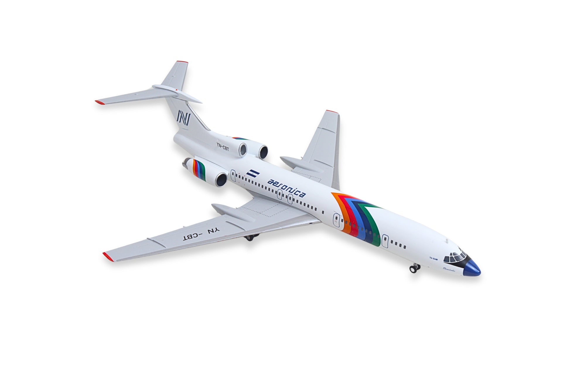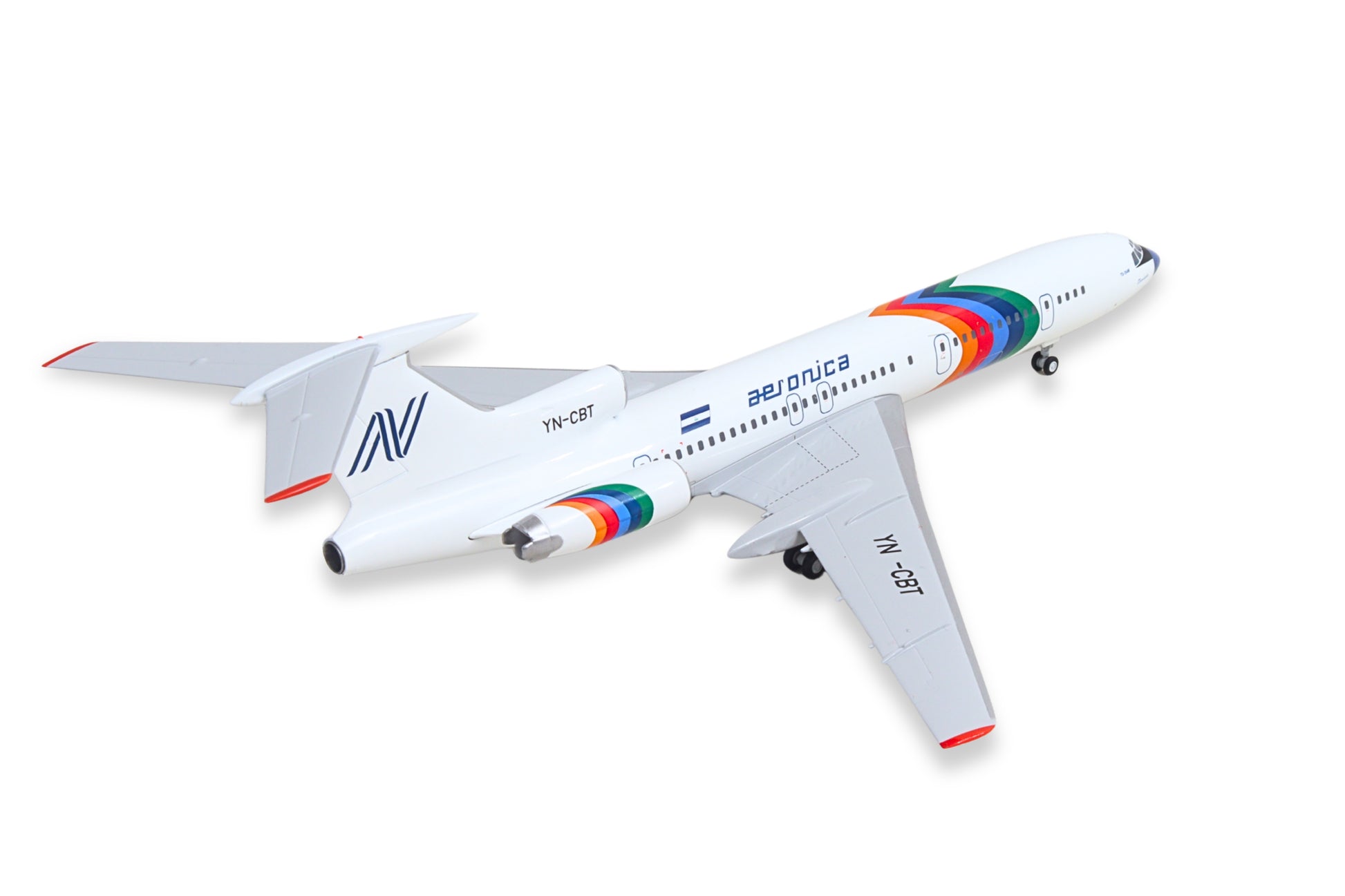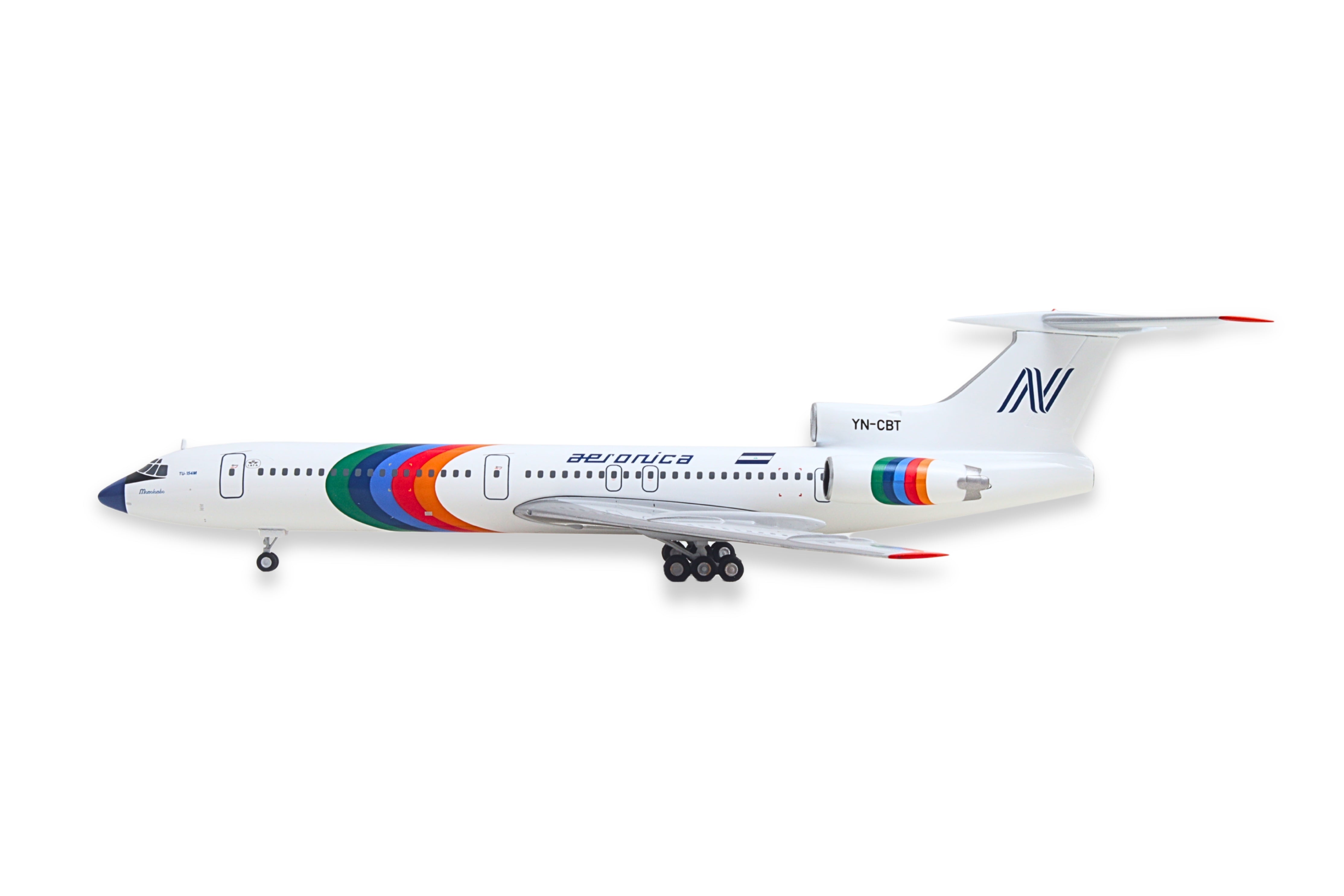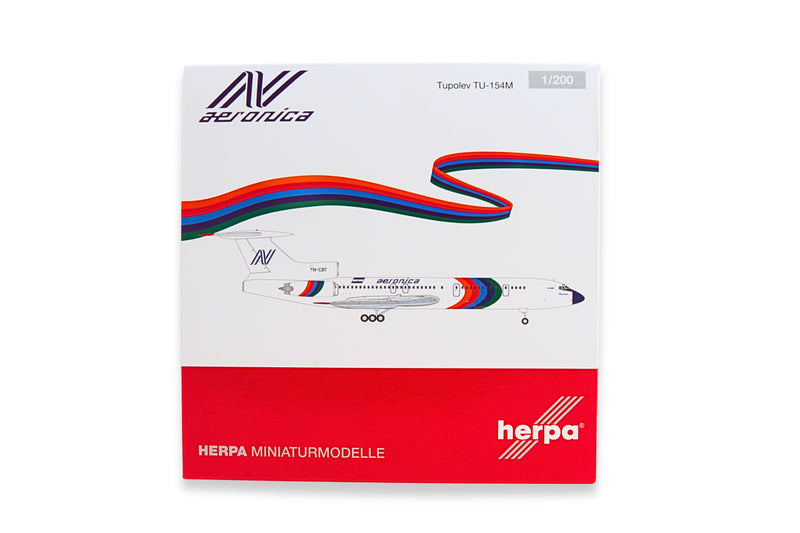 TU154M 1/200 This Die-cast metal airplane model comes in 1/200 scale with landing gear and plastic stand. Model is approximately 8 ½ inches long with 7 ½ inch wingspan. Adult collectible ages 14+