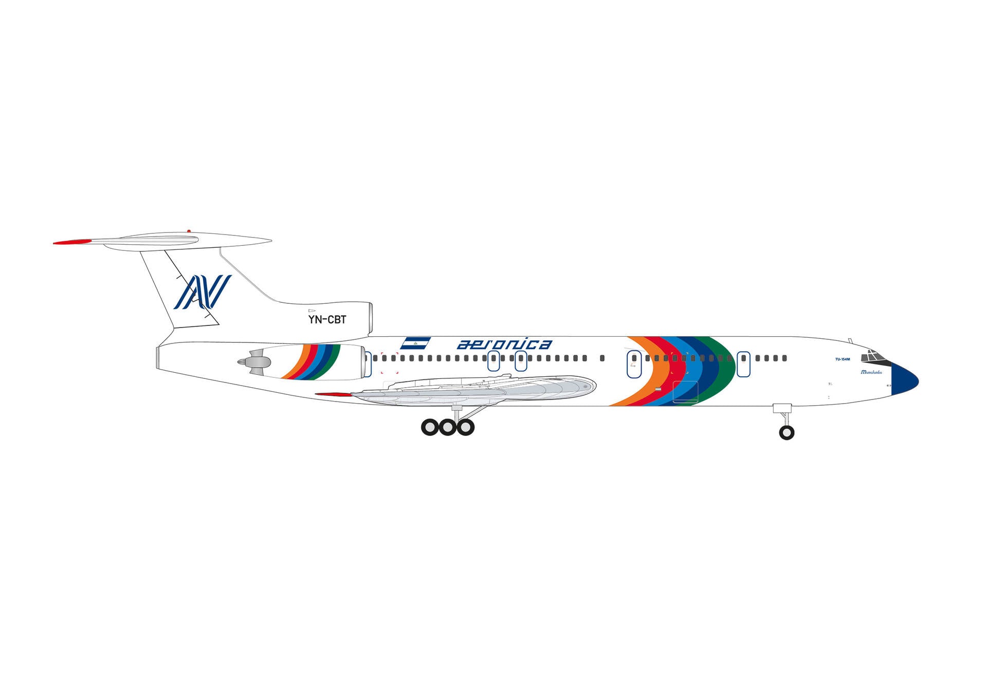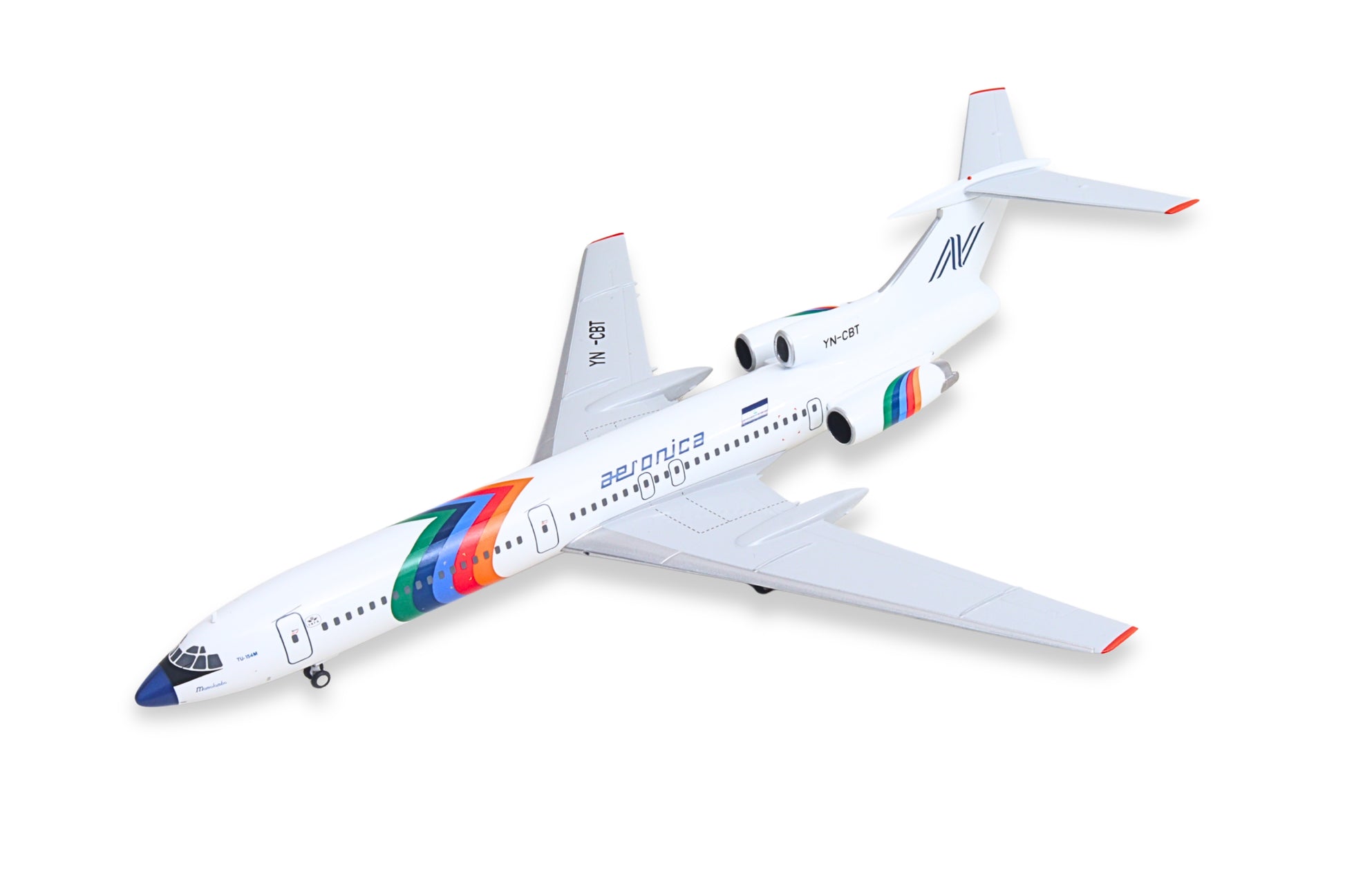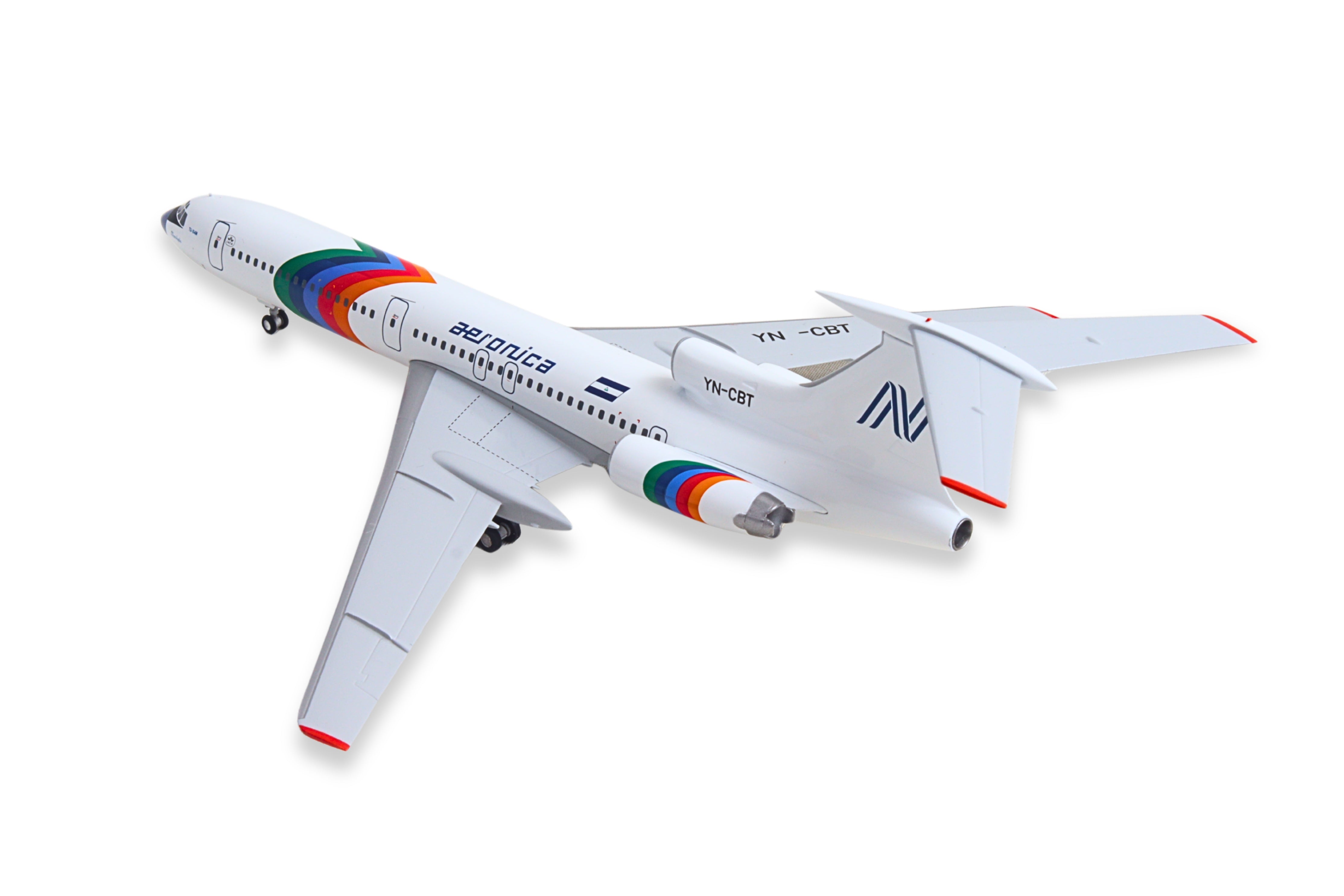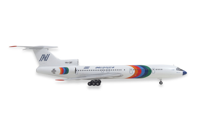 TU154M 1/200 This Die-cast metal airplane model comes in 1/200 scale with landing gear and plastic stand. Model is approximately 8 ½ inches long with 7 ½ inch wingspan. Adult collectible ages 14+