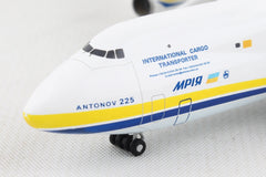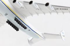 Produced as an officially licensed product to the highest standards, Herpa diecast metal models are developed as a collaborative effort with aircraft manufacturers and the airlines, and are recognized by discerning model airplane collectors worldwide for their unparalleled, accurate realism, attention to detail and exceptional quality. This Herpa 1/500 scale Antonov Airlines AN-225 - Registration UR-82060 - which measures approximately 6-5/8-inches long with a 7-inch wingspan, is a correct, true-to-scale reproduction of the actual aircraft, and features authentic, highly detailed graphics and markings. A Display Stand is not included and is sold separately - Herpa HE521024. Powered by six Progress Design Bureau Motor Sich D18T Turbofans producing 230 kN thrust apiece, the AN-225 took off on its maiden flight on December 22, 1988. Originally designed to support the Soviet Space Program, as well as a transport aircraft for the Buran Shuttle, the AN-225 is the world's largest aircraft. Civil certification was completed in 2001 with its first commercial flight having commenced in Stuttgart in December of that year. The Antonov AN-225 has gone on to set more than 100 world records in many categories, including the heaviest total cargo (5 military tanks weighing a total of 253.8 tonnes), the heaviest single item (a generator weighing 187.6 tonnes), and quite possibly the longest rigid item (2 windmill blades with a length of 42 meters apiece). Virtually self-sufficient, with a range of 15,000 km (9,230 mi), the AN-225 has a unique, unmatched ability for its ability to transport oversized, exceptionally heavy cargo, and does not require ground support equipment, as it is equipped with an onboard nose loading ramp, internal overhead cranes with a capacity of 30 tonnes, and two 30 kN capacity winches. Operated by Anotonov Airlines, which is the airline of its Ukrainian designers, the AN-225 has repeatedly proven its value and capability time and again in relief operations following natural and environmental disasters, such as Hurricane Katrina, the 2010 Earthquake in Haiti and the Gulf of Mexico Oil Spill, and has also been utilized for support in industrial and infrastructure projects around the world.