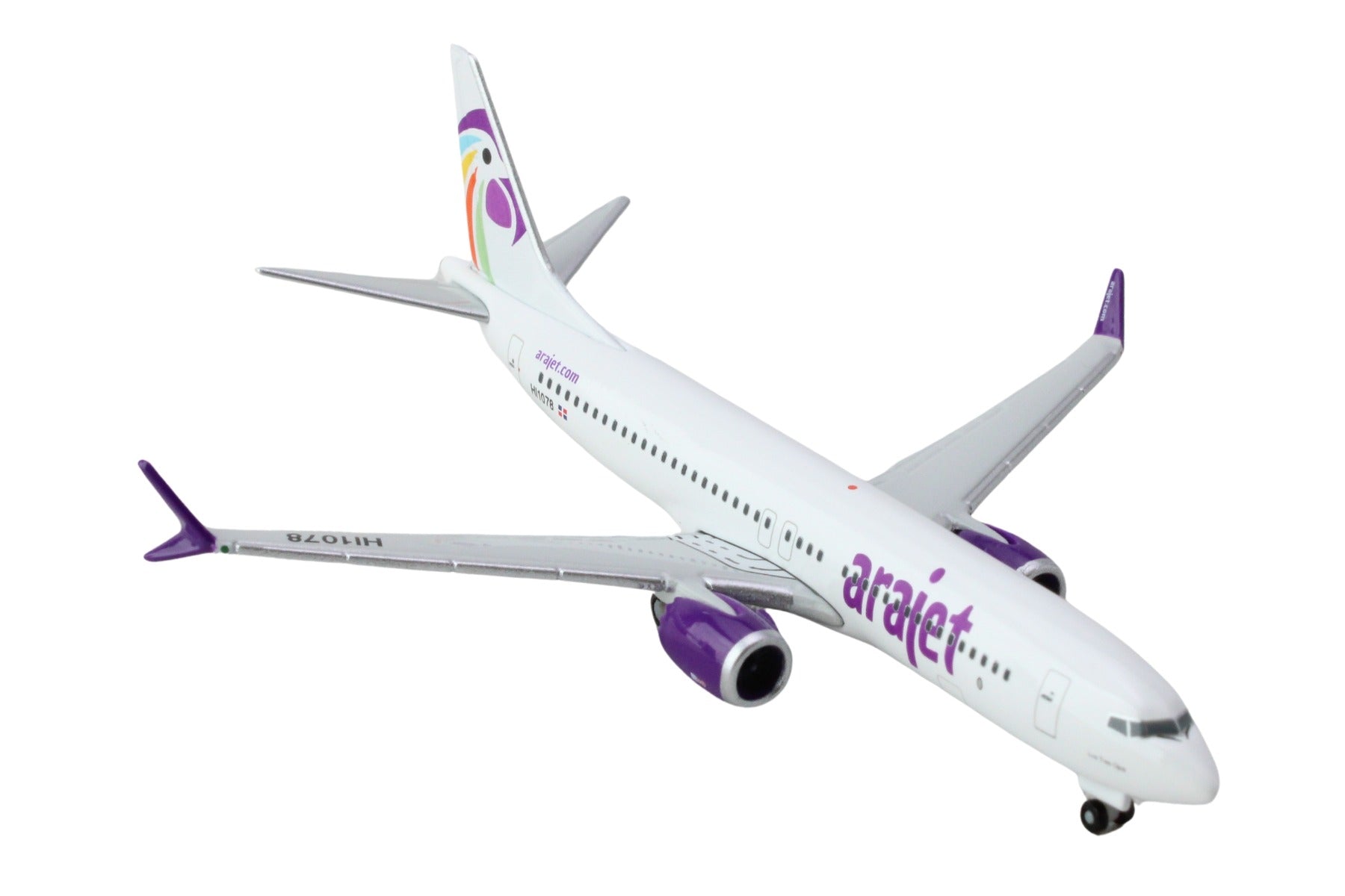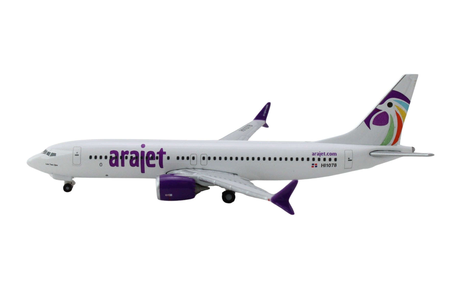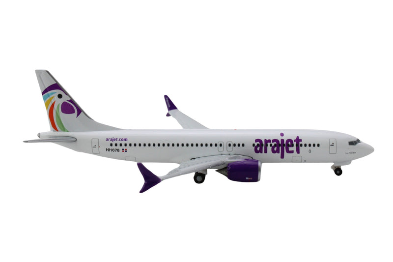 This Die-cast metal model airplane comes in 1/500 scale with landing gear no stand. Model is approximately 3 ¼ inches long with 2 5/8 inches long.