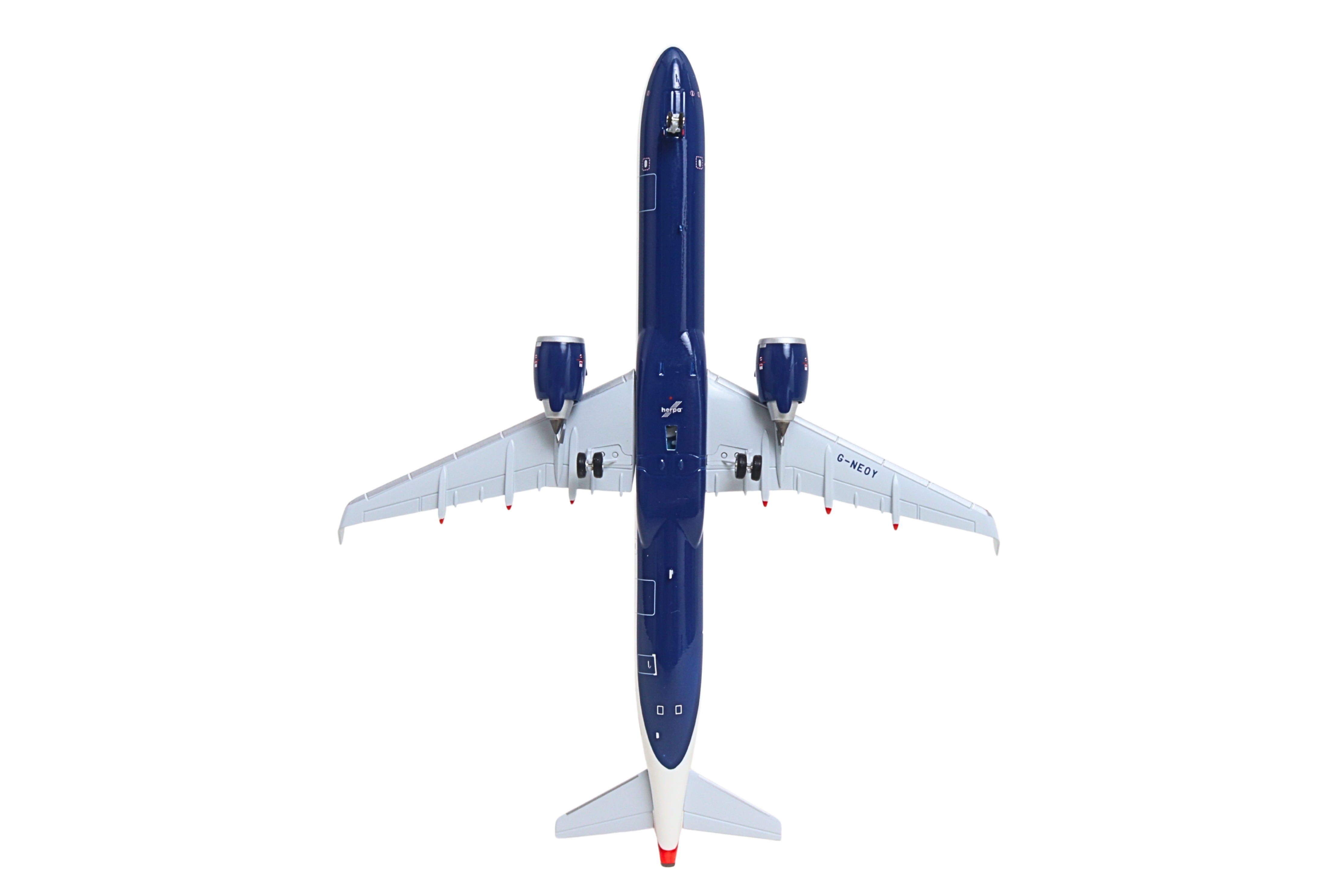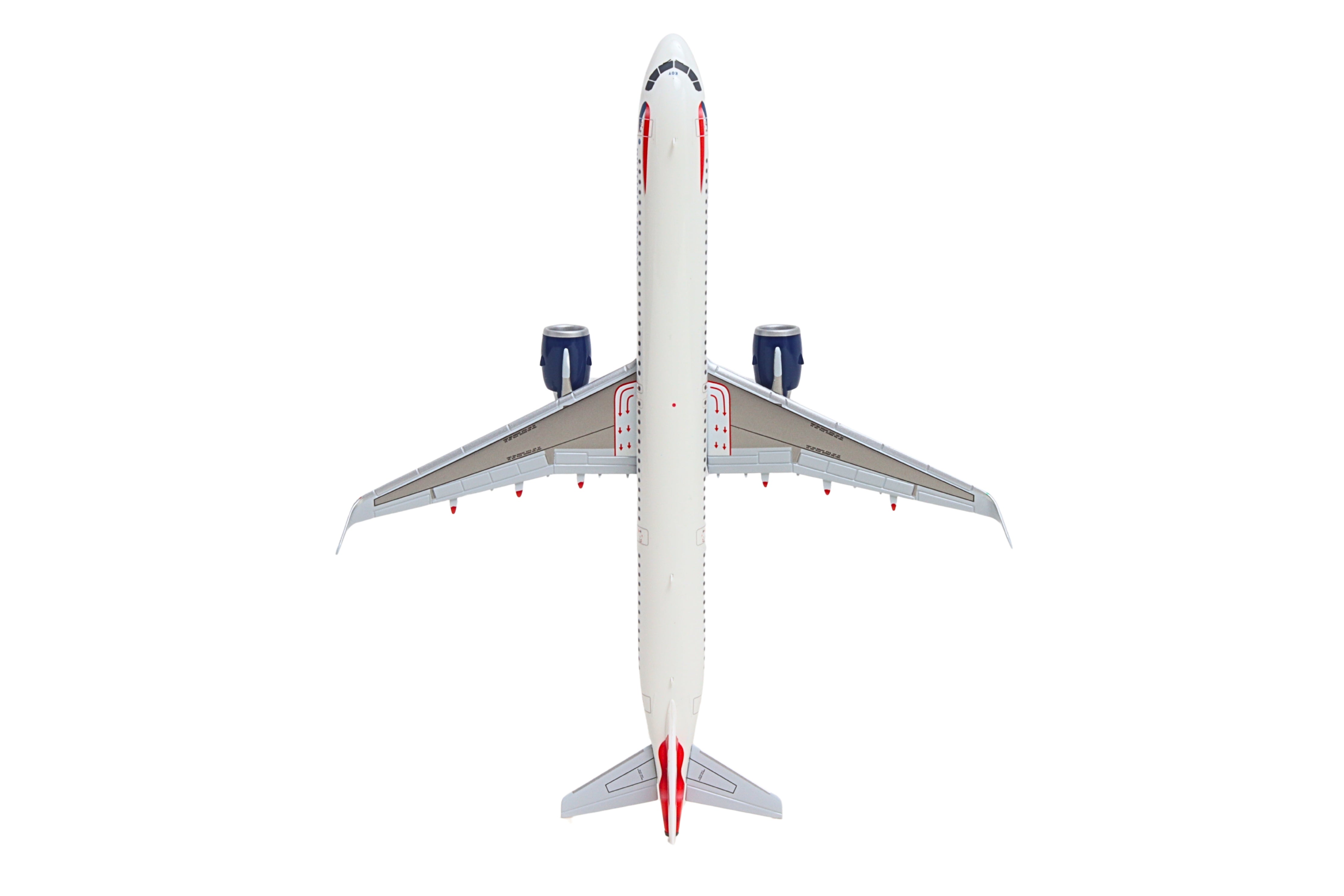 This plastic airplane model comes in 1/200 scale with landing gear and plastic stand. Model is approximately 8 ¾ inches long with 6 ¾ inch wingspan.