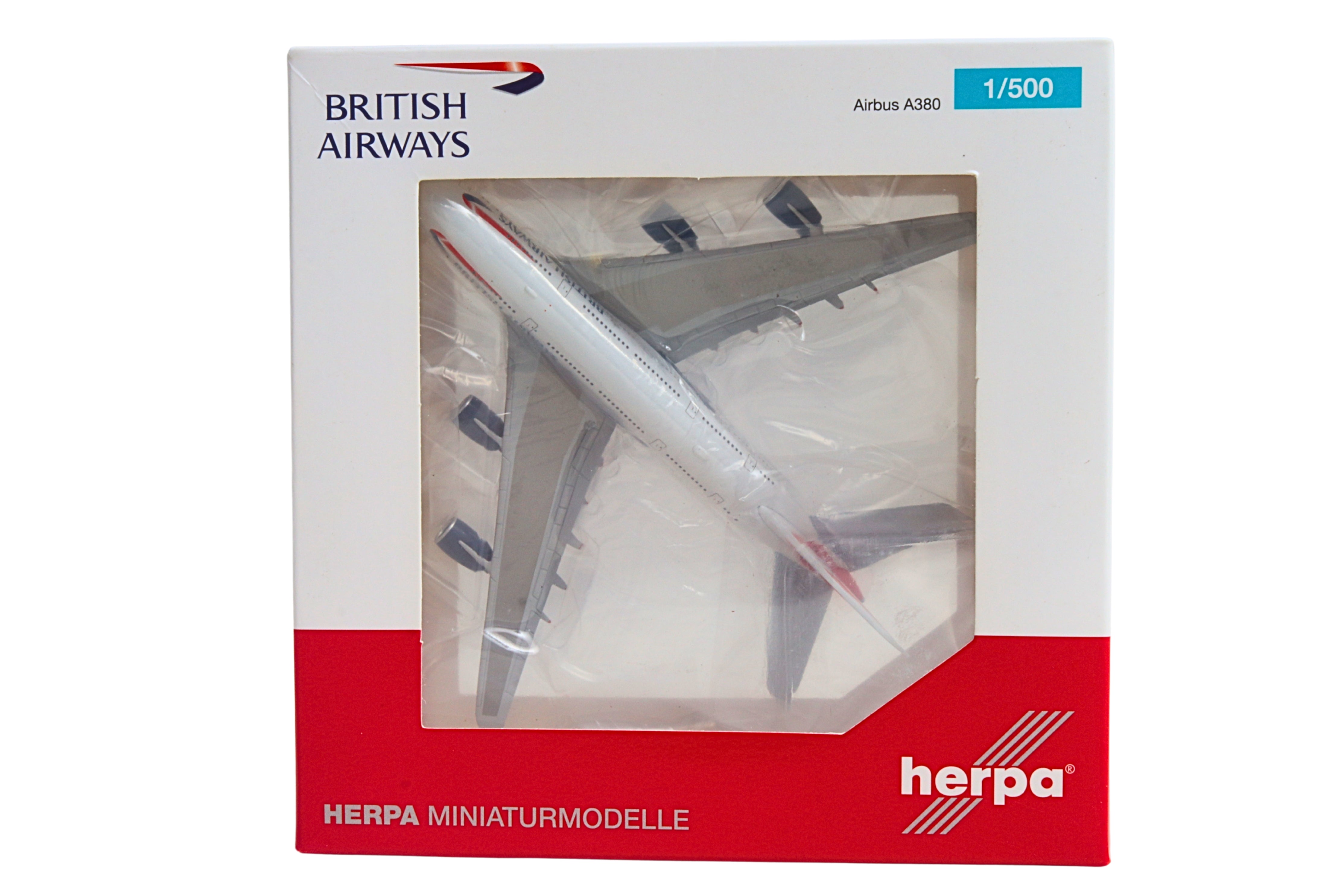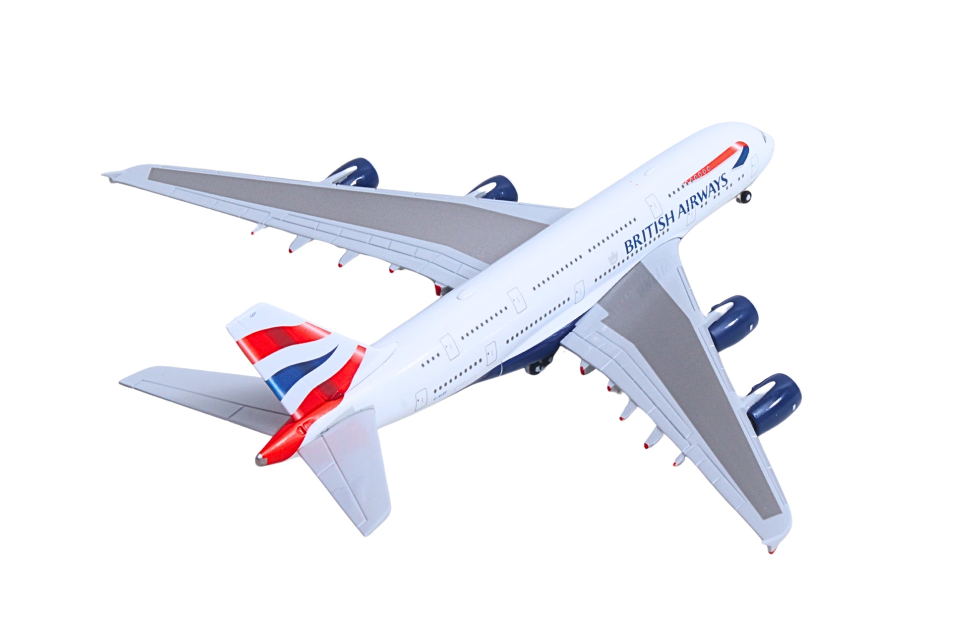 This die-cast metal airplane model comes in 1/500 scale with landing gear no stand. Model is approximately 5 ¾ inches long with 6 1/8 inch wingspan.