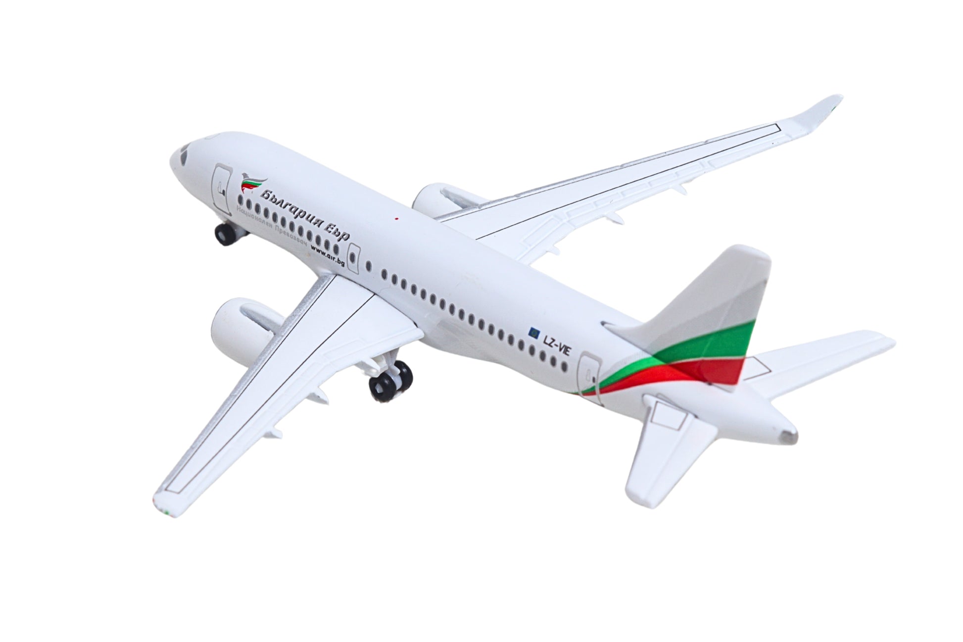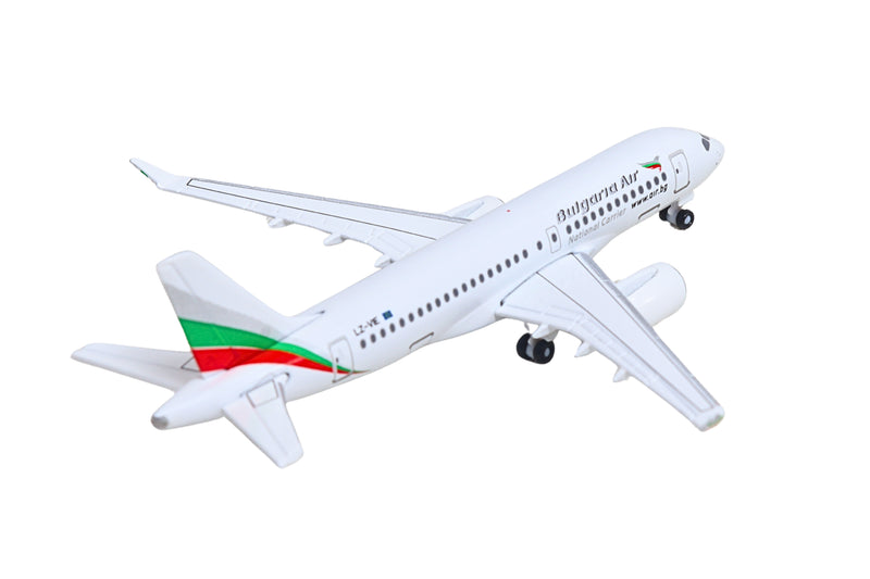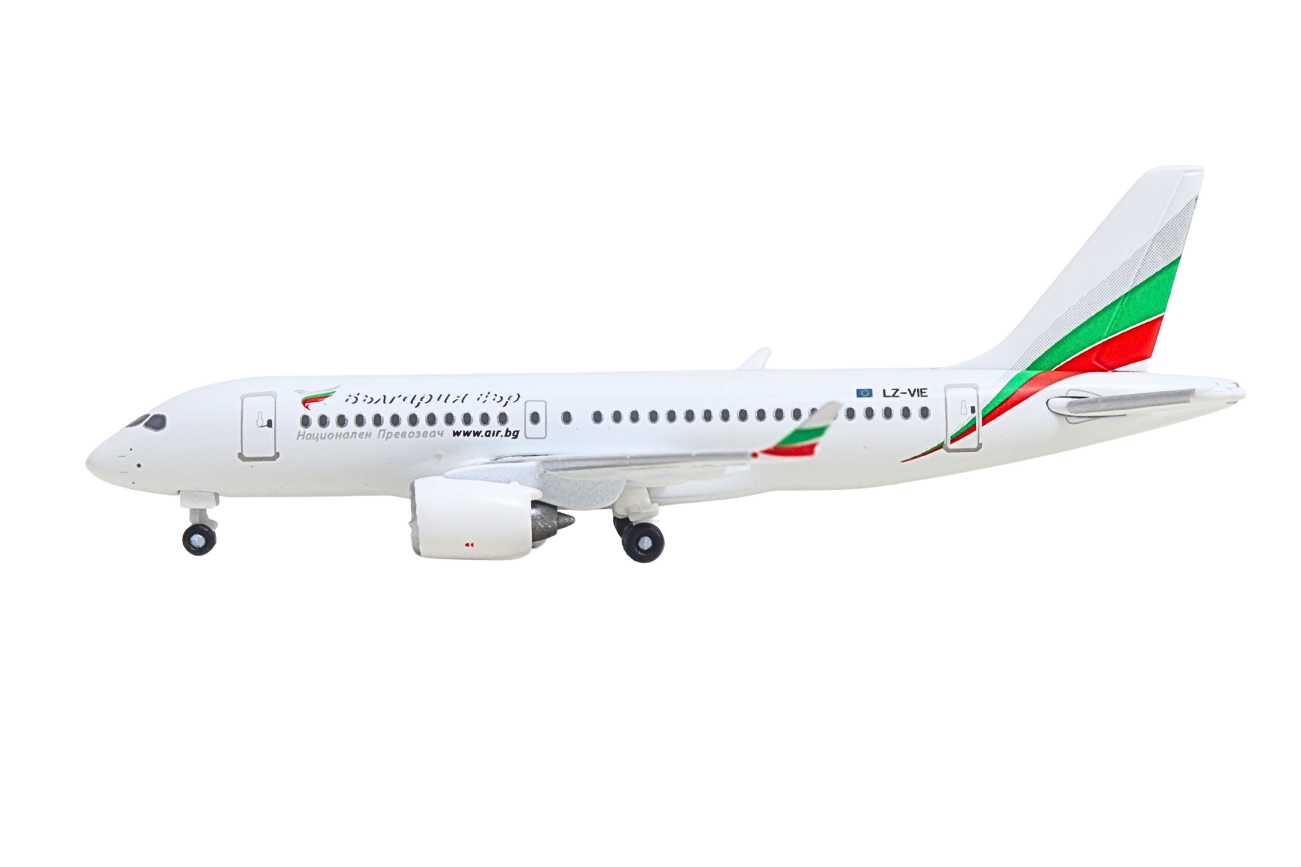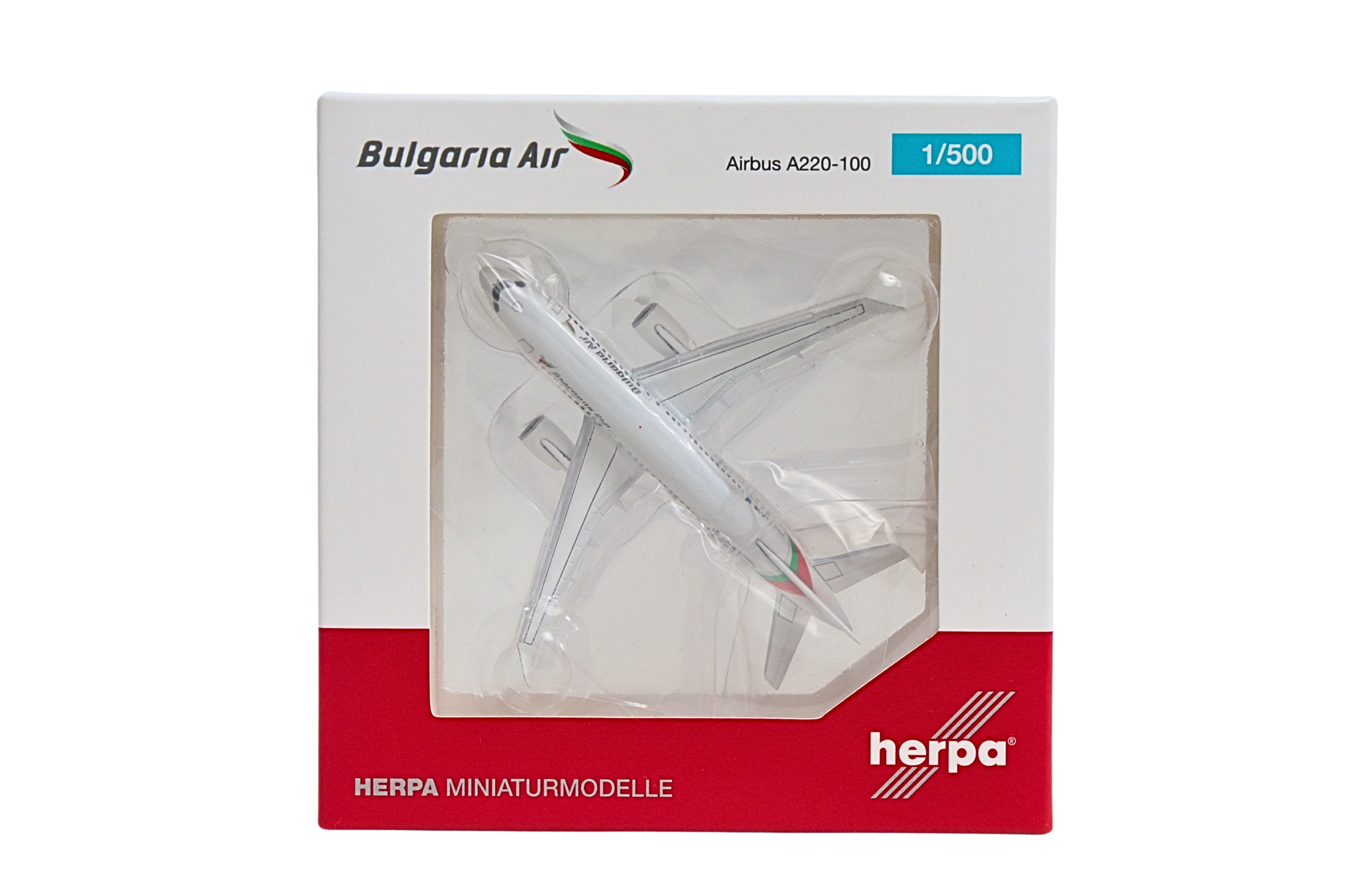 A220-100 1/500 (CS100) This die-cast metal airplane model comes in 1/500 scale with landing gear no stand. Model is approximately 2 1/4 inches long with 2 1/2-inch wingspan. Adult collectible ages 14+