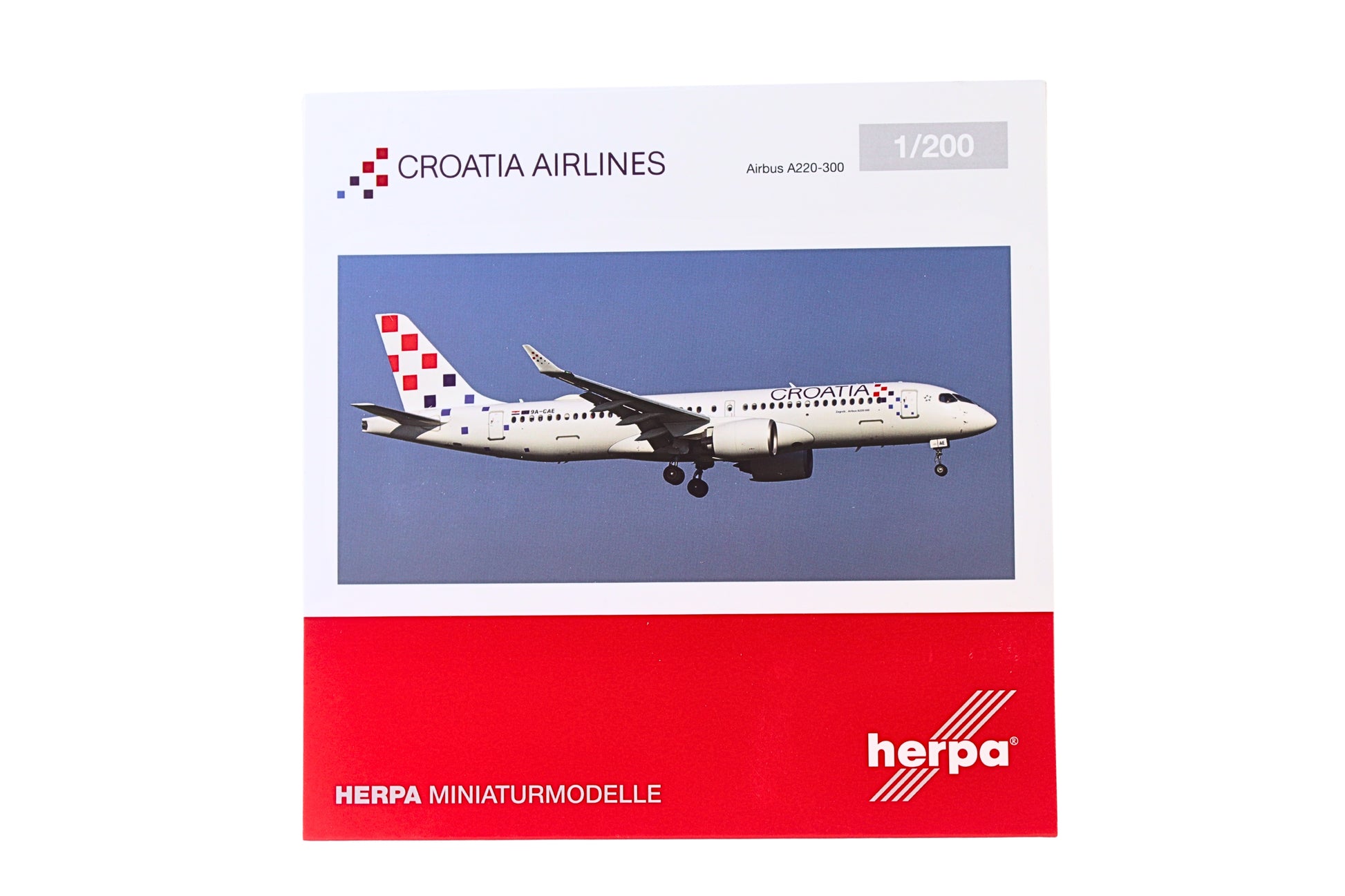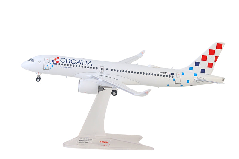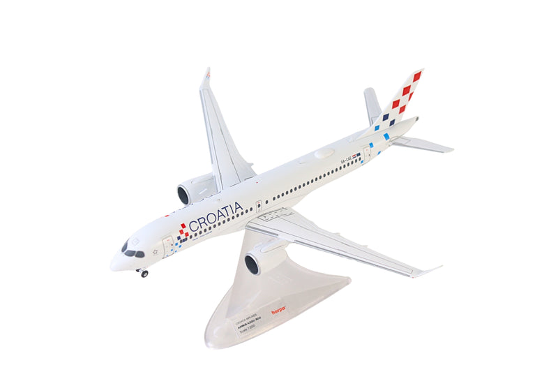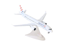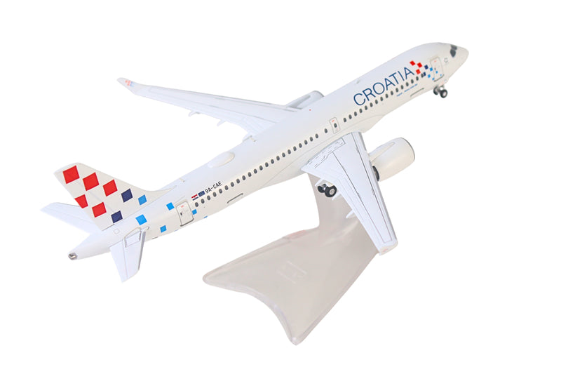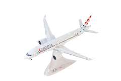 A220-300 1/200 This Die-cast metal airplane model comes in 1/200 scale with landing gear and plastic stand. Model is approximately 7 1/2 inches long with 6 3/4 inch wingspan. Adult collectible ages 14+