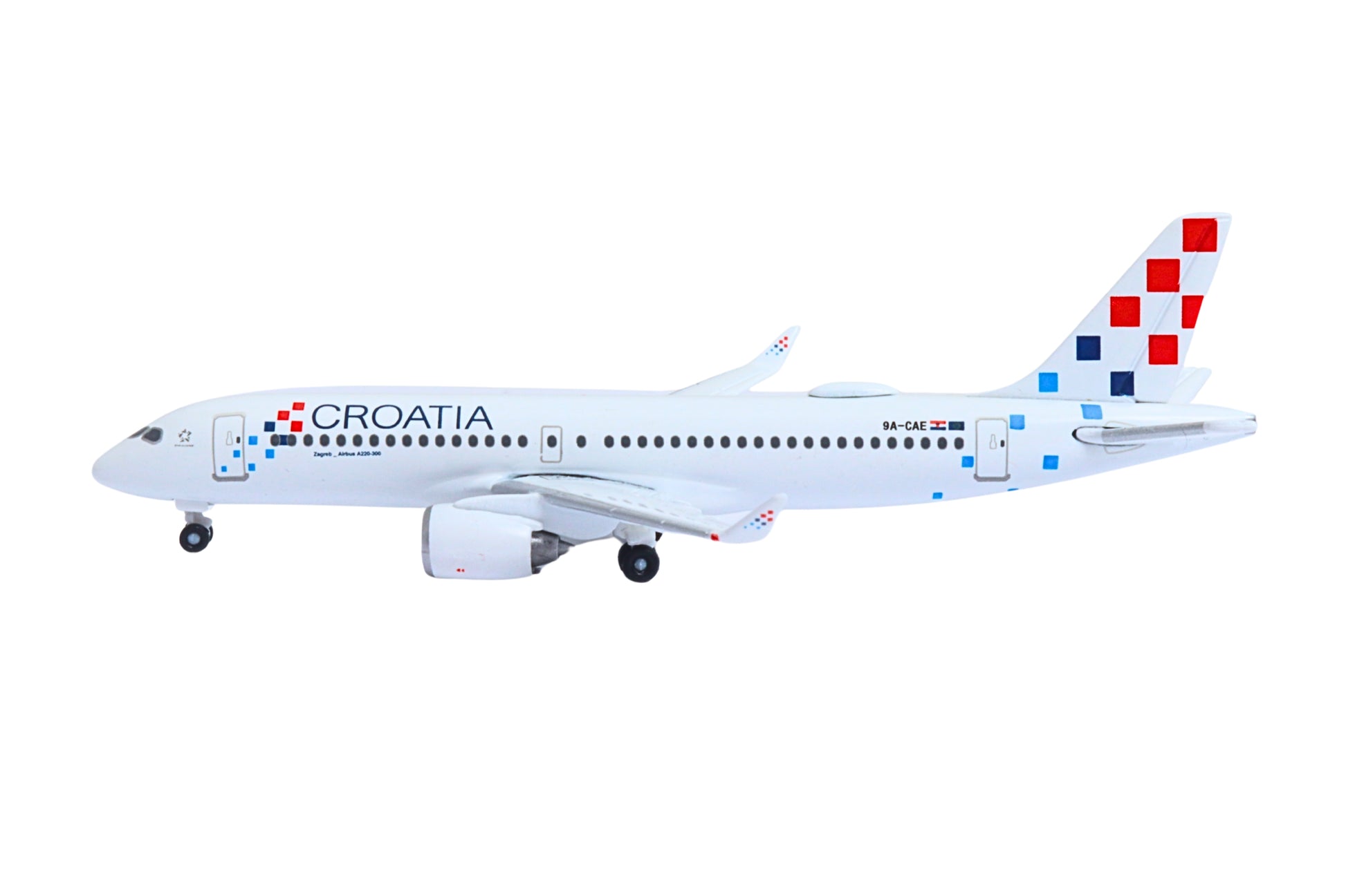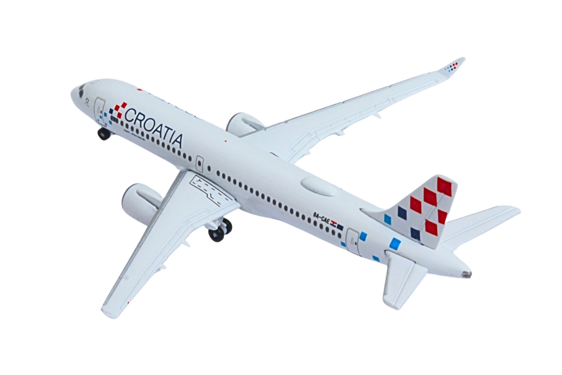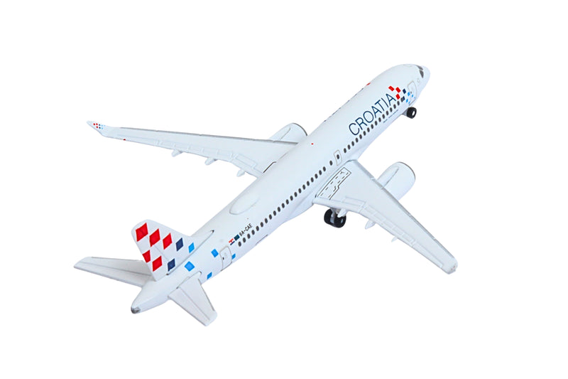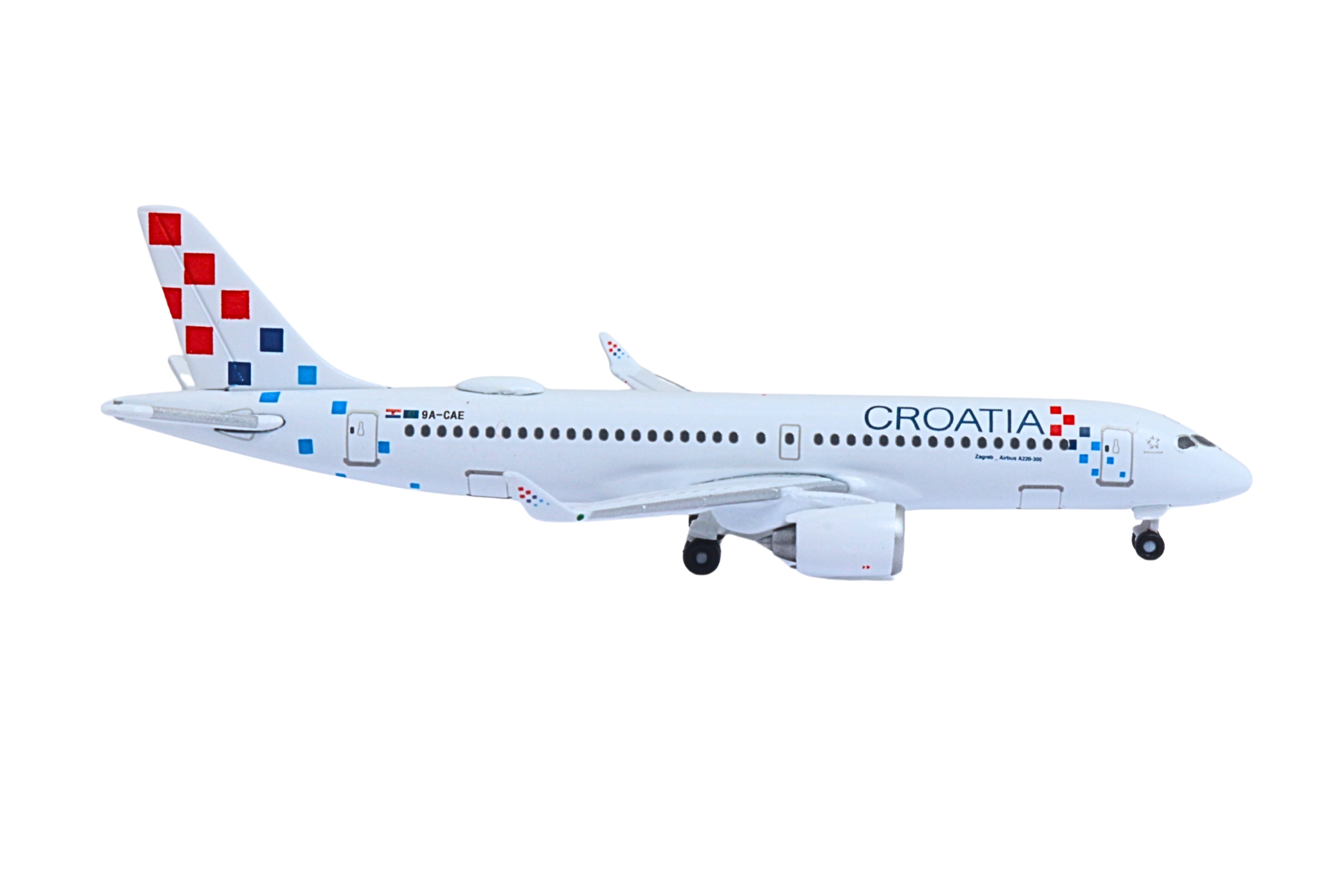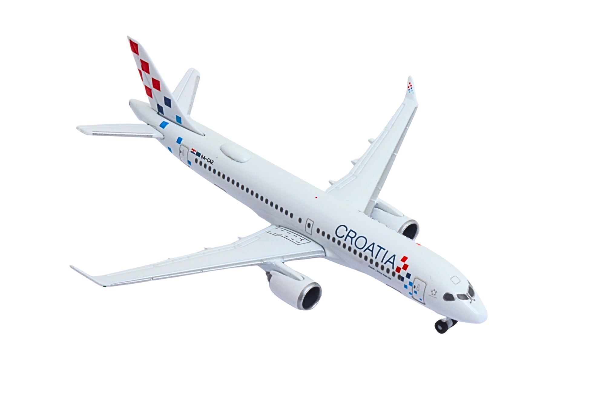 A220-300 1/500 This die-cast metal airplane model comes in 1/500 scale with landing gear no stand. Model is approximately 3 inches long with 2 3/4 inch wingspan. Adult collectible ages 14+