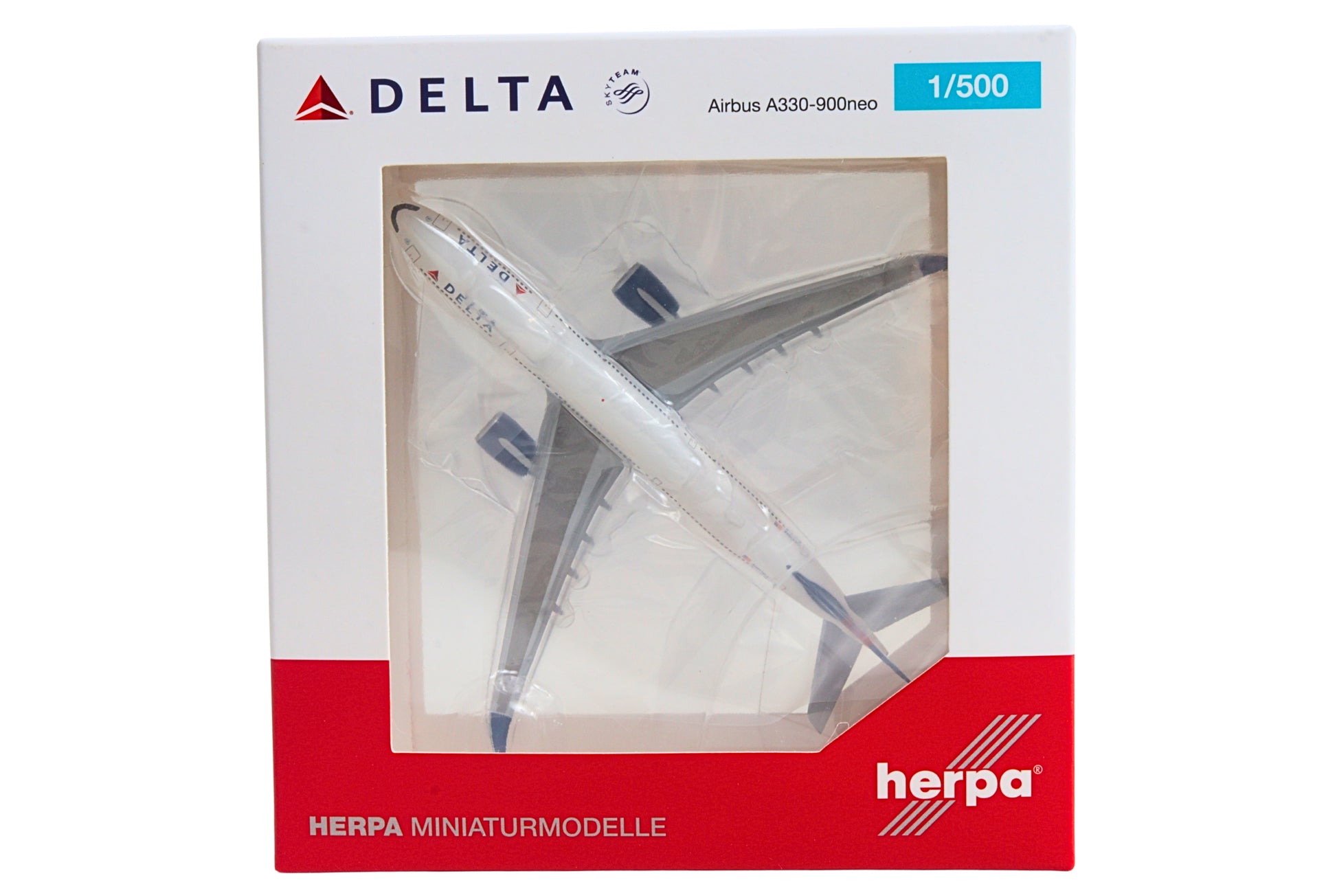 A330-900Neo 1/500 This die-cast metal airplane model comes in 1/500 scale with landing gear no stand. Model is approximately 4 3/4 inches long with 5 inch wingspan. Adult collectible ages 14+