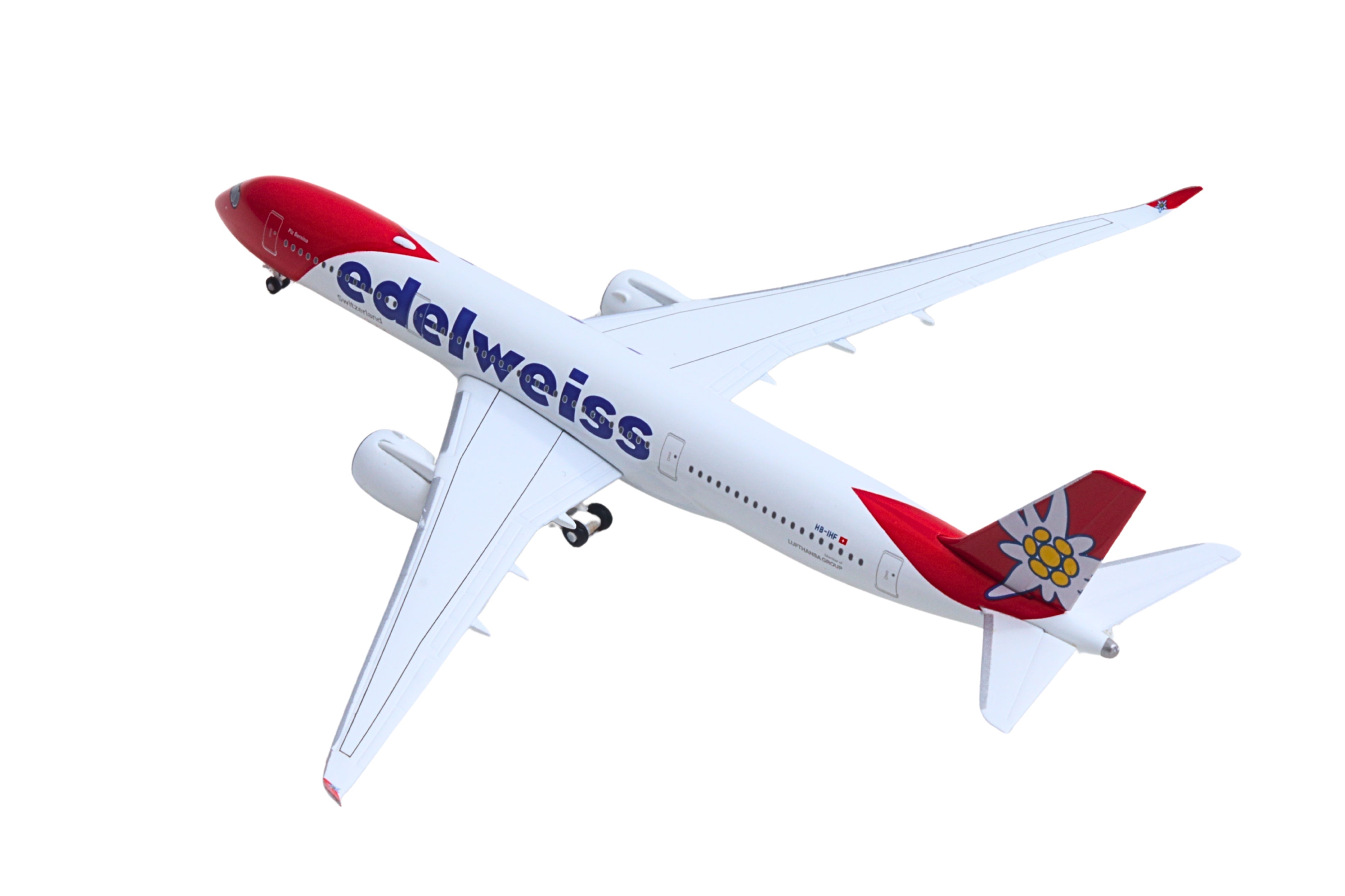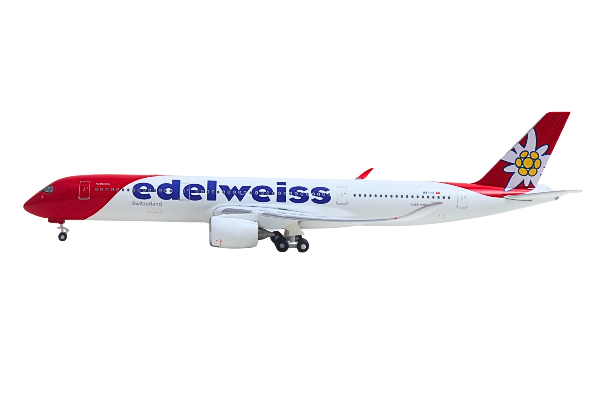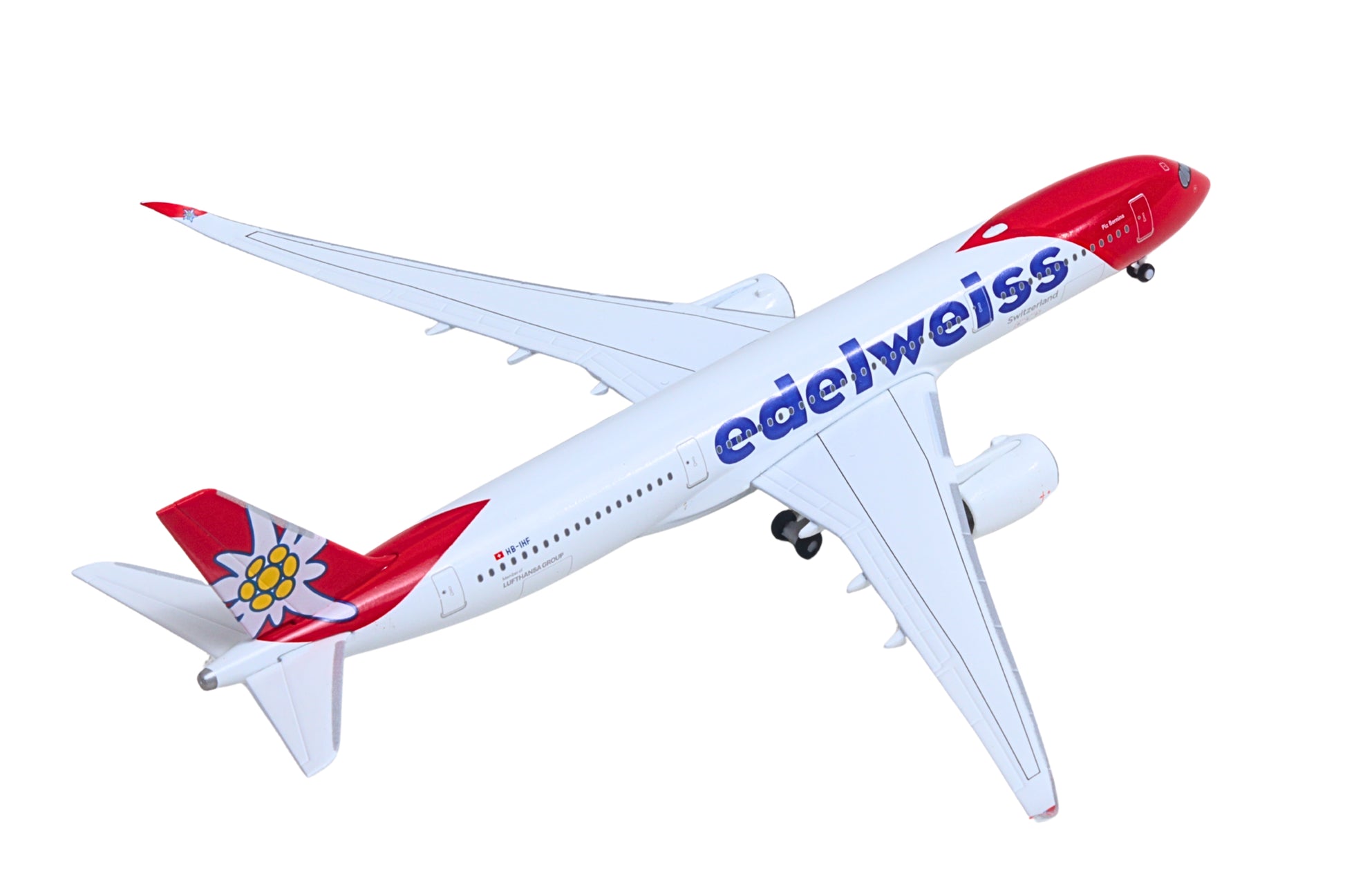 A350-900 1/500 This die-cast metal airplane model comes in 1/500 scale with landing gear no stand. Model is approximately 4 1/2 inches long with 4 1/4 inch wingspan. Adult collectible ages 14+