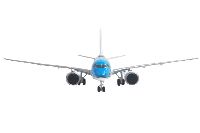 E195 1/500 This die-cast metal airplane model comes in 1/500 scale with landing gear no stand. Model is approximately 2 ¾ inches long with 2 ¼ inch wingspan. Adult collectible ages 14+