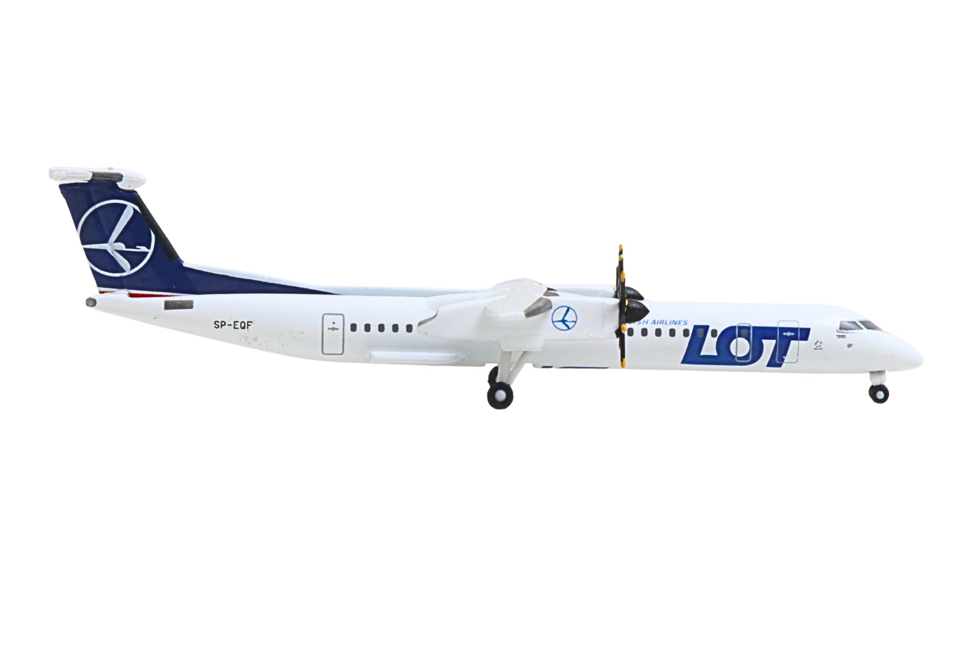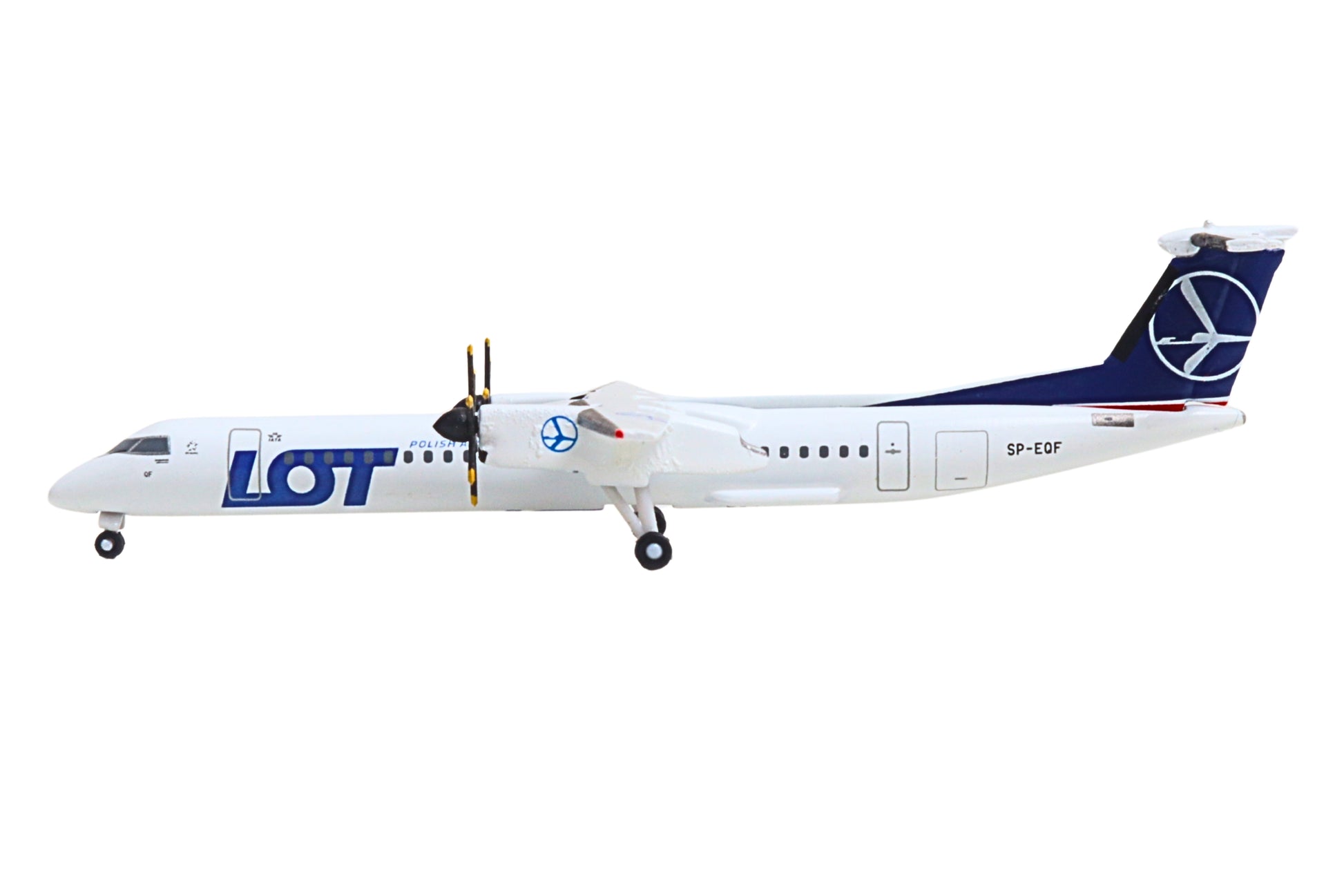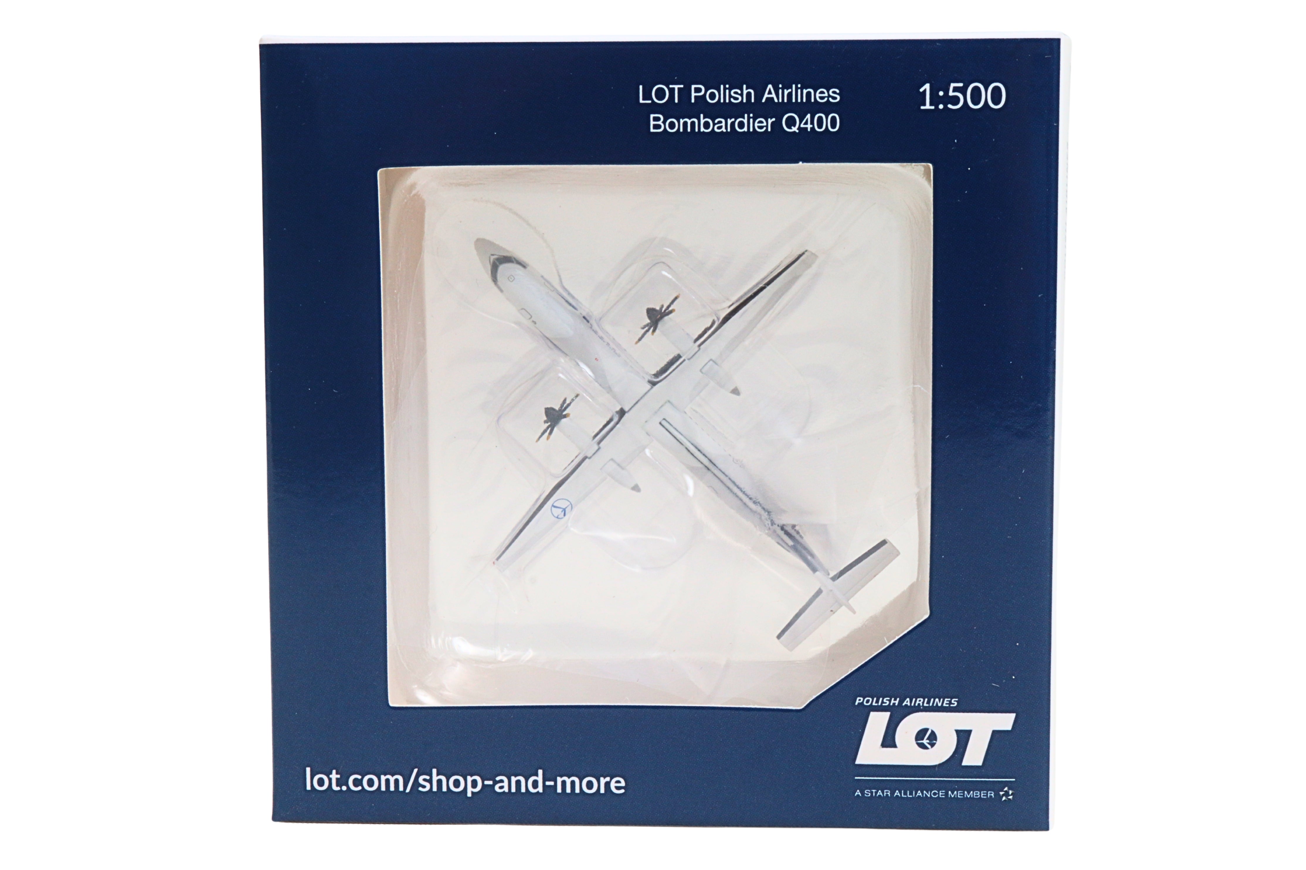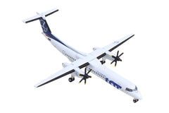 Q400 1/500 This Die-cast metal airplane model comes in 1/500 scale with landing gear no stand. Model is approximately 2 ½ inches long with 2 1/8 inch wingspan. Adult collectible ages 14+