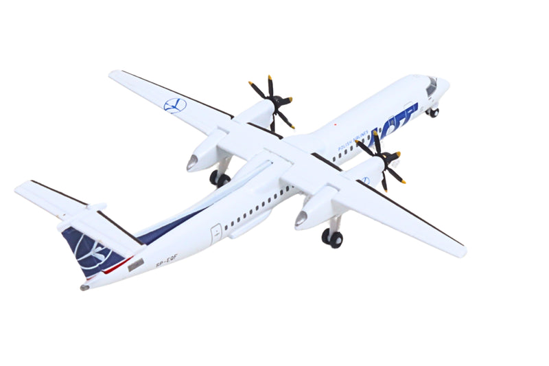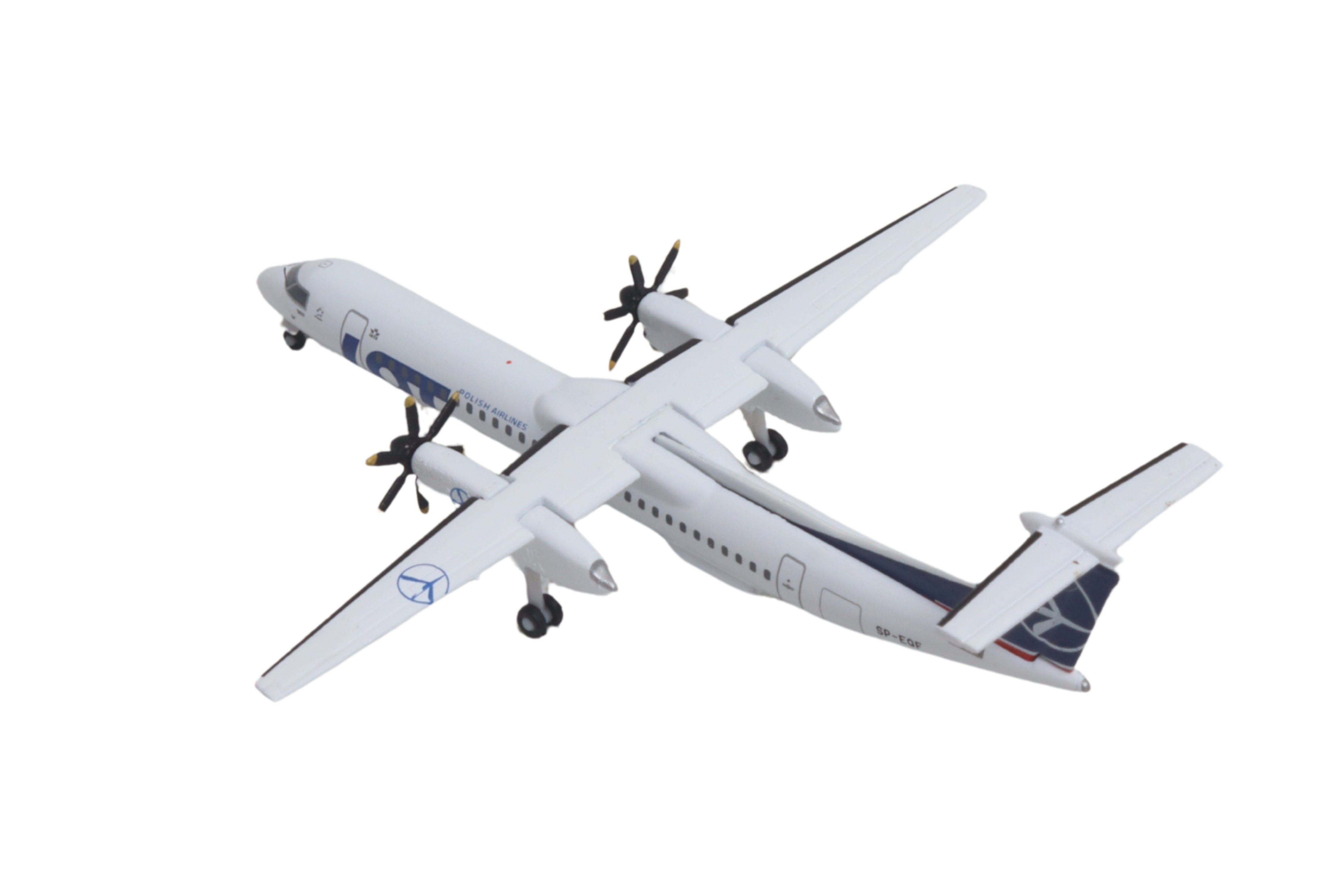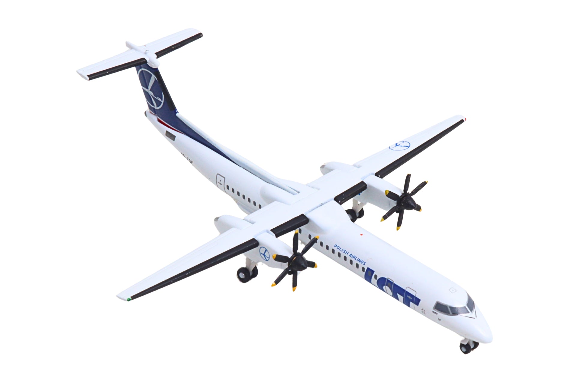 Q400 1/500 This Die-cast metal airplane model comes in 1/500 scale with landing gear no stand. Model is approximately 2 ½ inches long with 2 1/8 inch wingspan. Adult collectible ages 14+