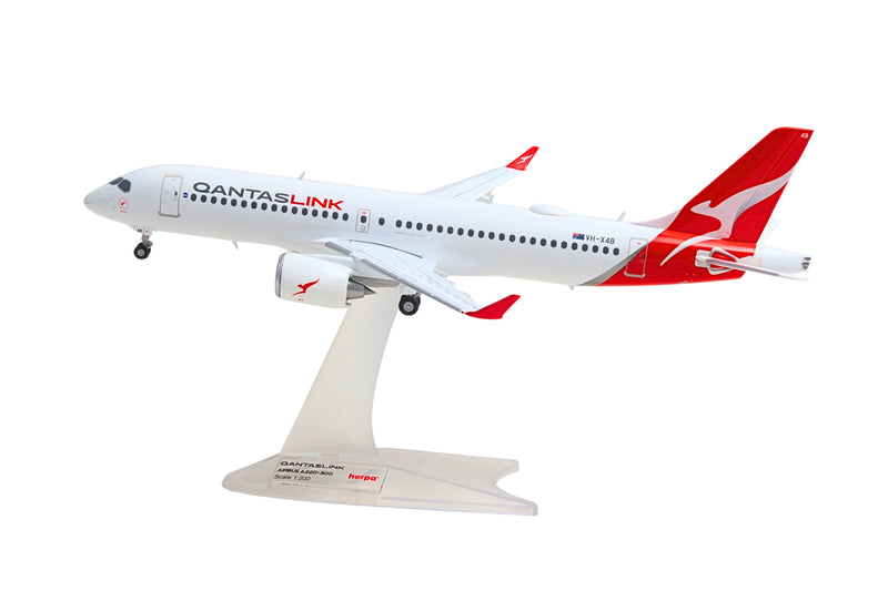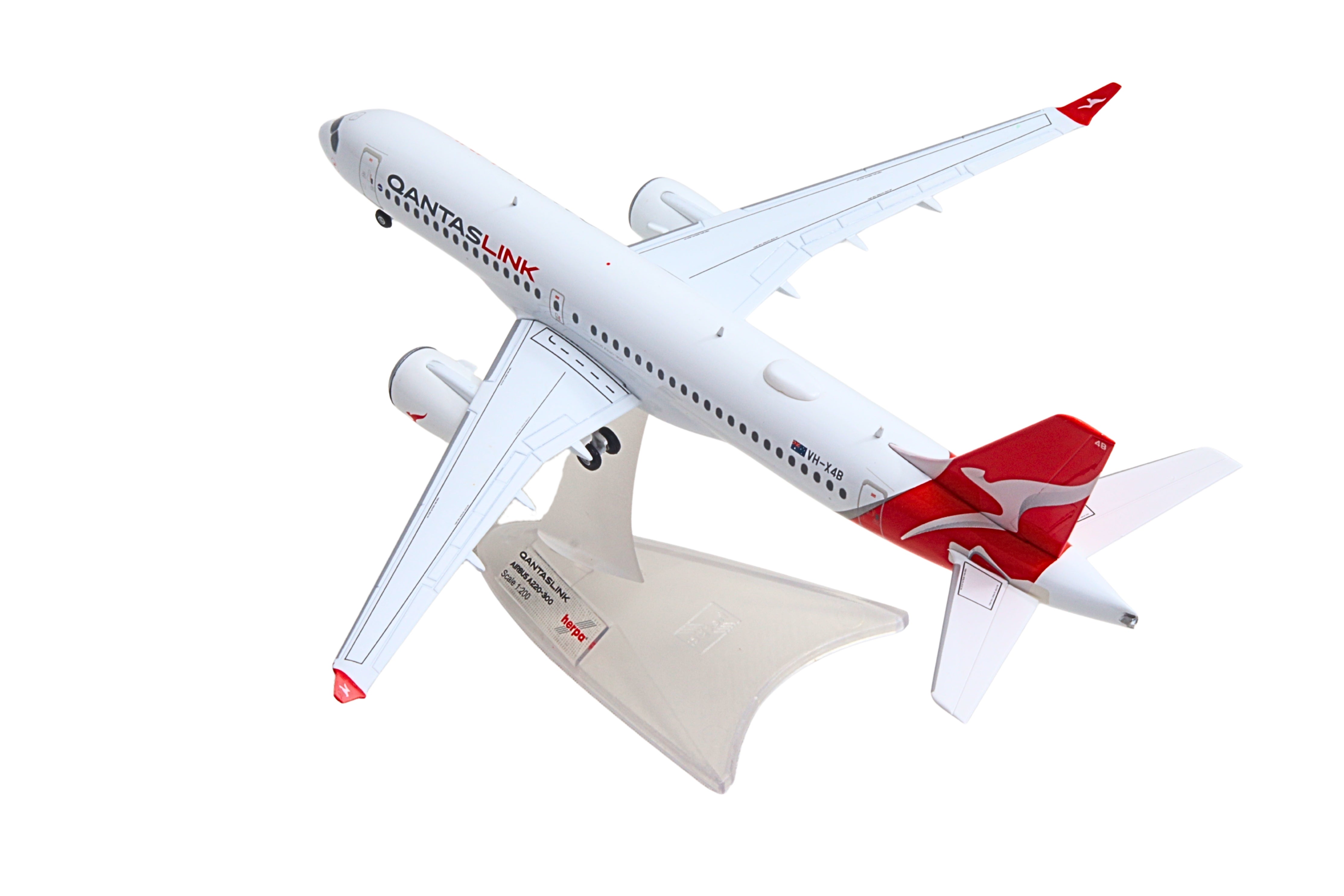 A220-300 1/200 This Die-cast metal airplane model comes in 1/200 scale with landing gear and plastic stand. Model is approximately 7 1/2 inches long with 6 3/4 inch wingspan.