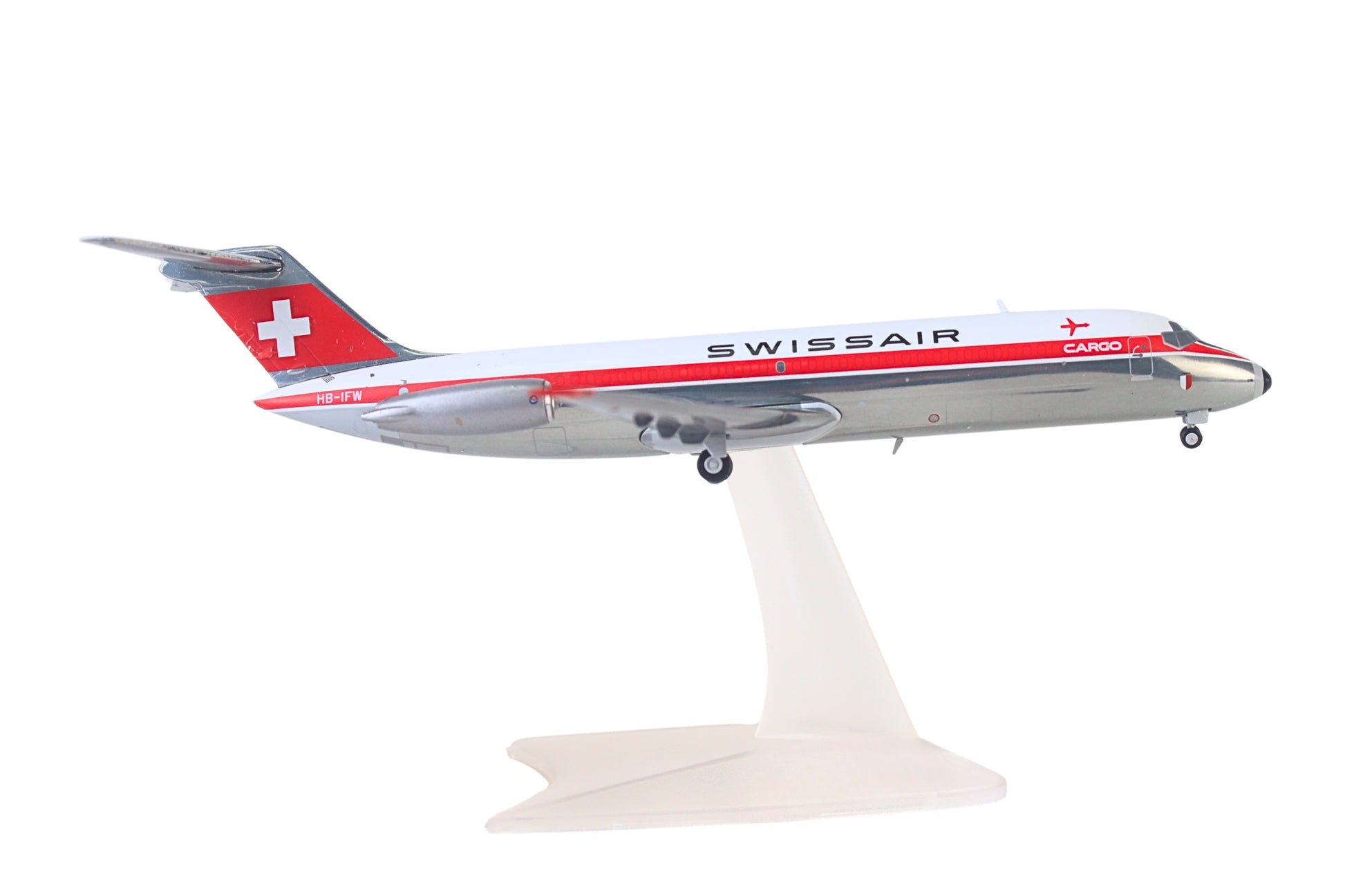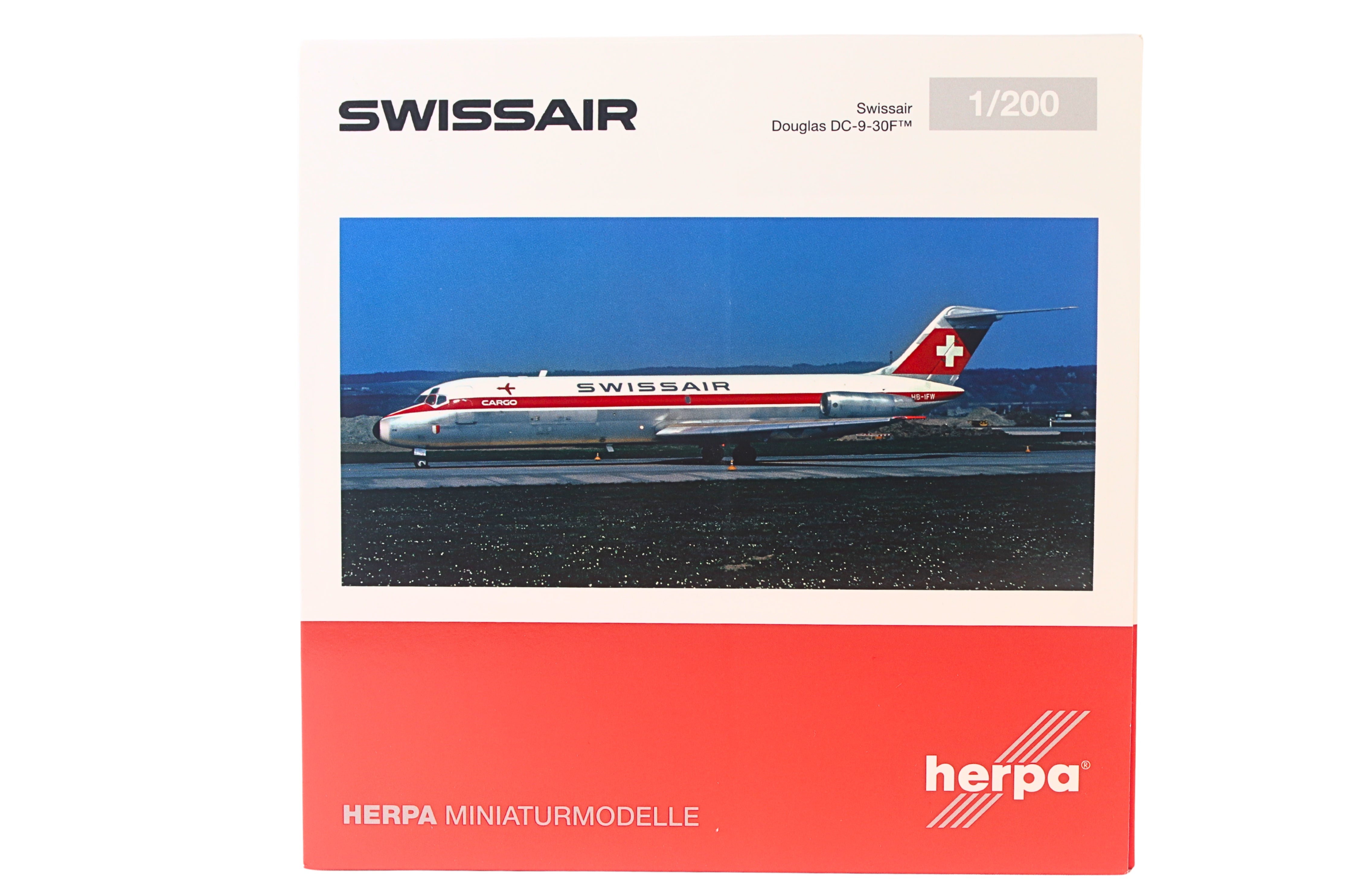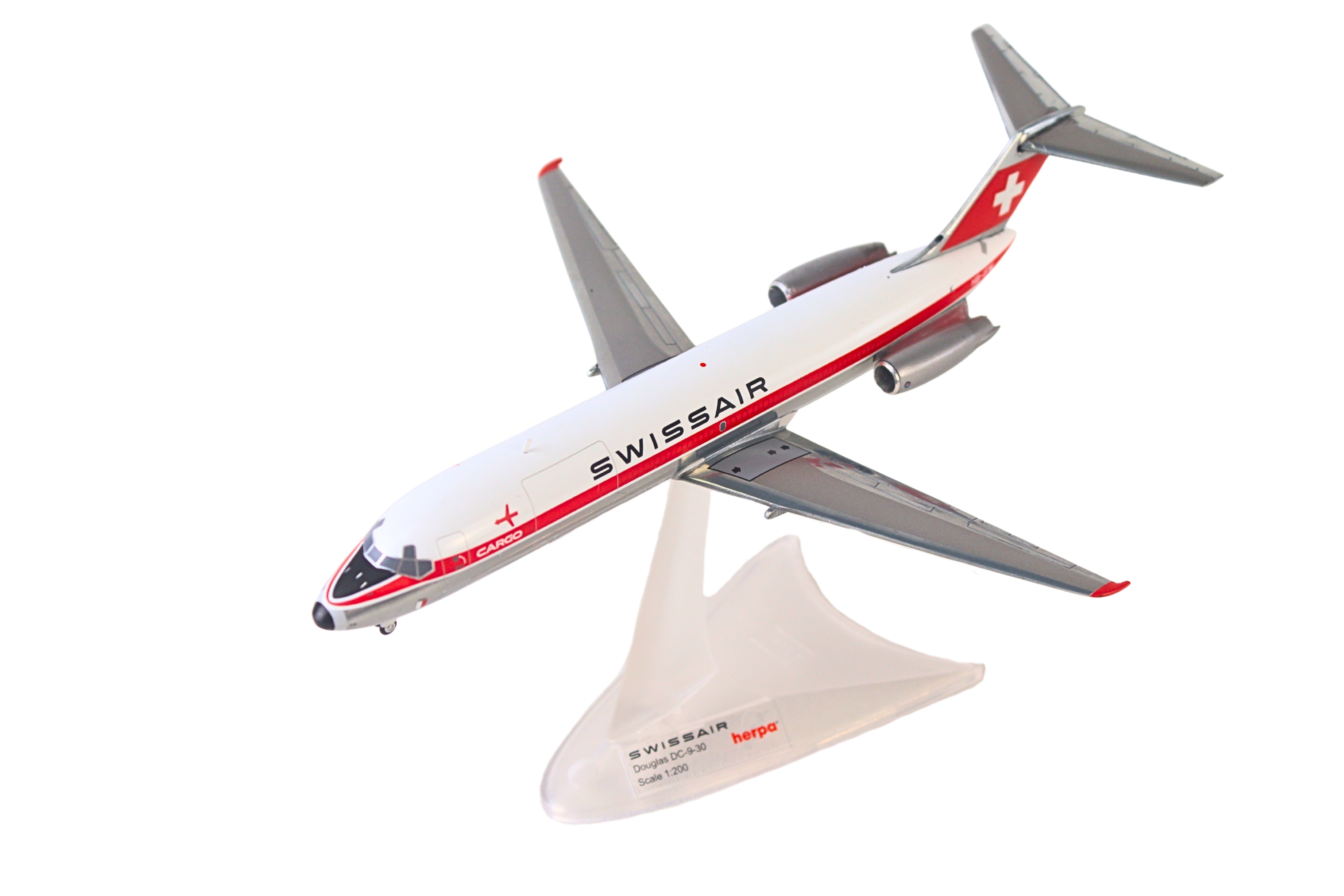 DC-9-30 1/200 This Die-cast metal airplane model comes in 1/200 scale with landing gear and plastic stand. Model is approximately 6 3/4 inches long with 5 1/2 inch wingspan.