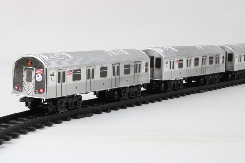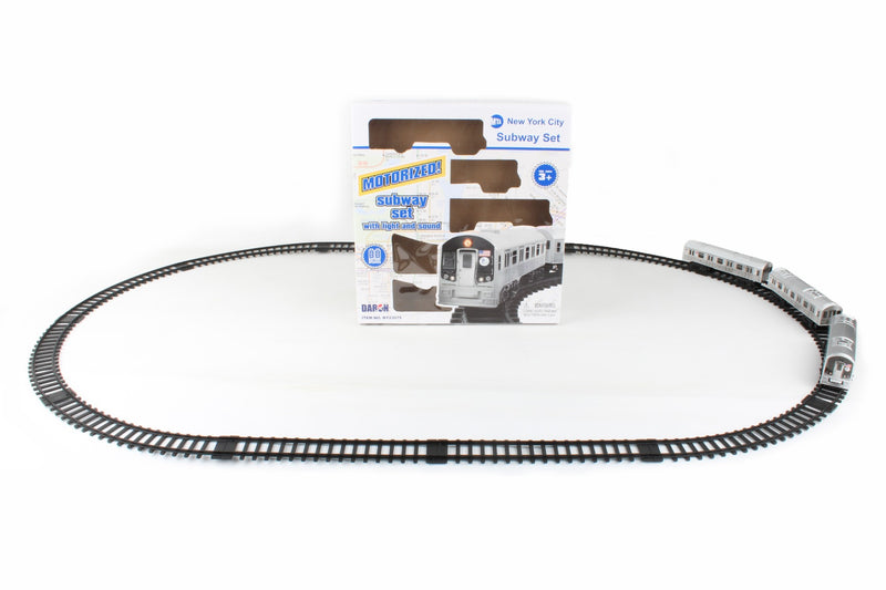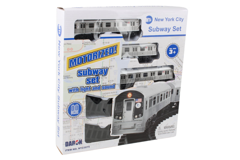 This train set comes with 3 NYC MTA Trains and 16 Pieces of tracks. Fully functional lights and sounds make this train set realistic and fun! All MTA logos and marks are certified by the Metropolitan Transportation Authority. Batteries are not included. Requires 3 AA batteries. Recommended for children Ages 3+.