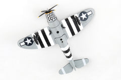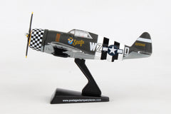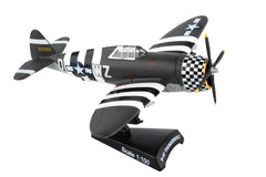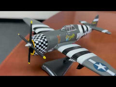 This Die-cast metal airplane model comes in 1:100 scale with plastic stand and is approximately 4 1/4 inches long with 4 3/4 inch wingspan. The P-47 Thunderbolt was a fighter-bomber used by the United States Army Air Forces during World War II. Over 15,000 planes were built during its operational lifetime. With the aid of drop tanks (auxiliary fuel tanks), the P-47 could cover long distances and was feared because of its eight .50 caliber guns. The P-47 was the heaviest single engine WWII fighter and the first piston powered fighter to exceed 500 mph. This P-47 has been painted to represent "Snafu" as flown by the 78th Fighter Group stationed in England in late 1944 to battle enemy Luftwaffe fighters and provide escort to Allied heavy bombers. It has been restored to its wartime condition by The Fighter Collection, a private operator of airworthy vintage military aircraft based at historic Duxford Airfield in Cambridgeshire, UK. Adult Collectible ages 14+