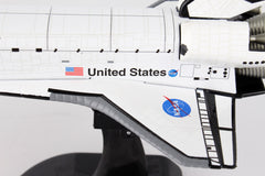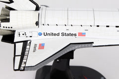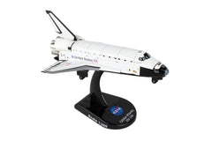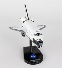 The Space Shuttle Orbital Vehicle was developed and operated by NASA as part of the Space Transportation System Program. It is the first orbital human spacecraft designed for reusability. The Orbiter Atlantis is now retired and on display at the Kennedy Space Center. This Die-cast metal spacecraft model comes in 1:300 scale with plastic stand and is approximately 4 3/4 inches long with 3 1/8 inch wingspan. Adult Collectible ages 14+