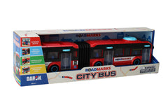 Embark on an adventure of boundless imagination with our City Bus! This meticulously crafted toy boasts an articulated structure for realistic maneuvers, three sets of double doors that open and close seamlessly, and a top-mounted steering knob for hands-on exploration. Its free-wheeling design ensures smooth gliding across various surfaces, providing endless entertainment. Let your child's creativity flourish as they mimic the hustle and bustle of city life, imagining passengers boarding and exiting their bus. Suitable for ages 3 and up.