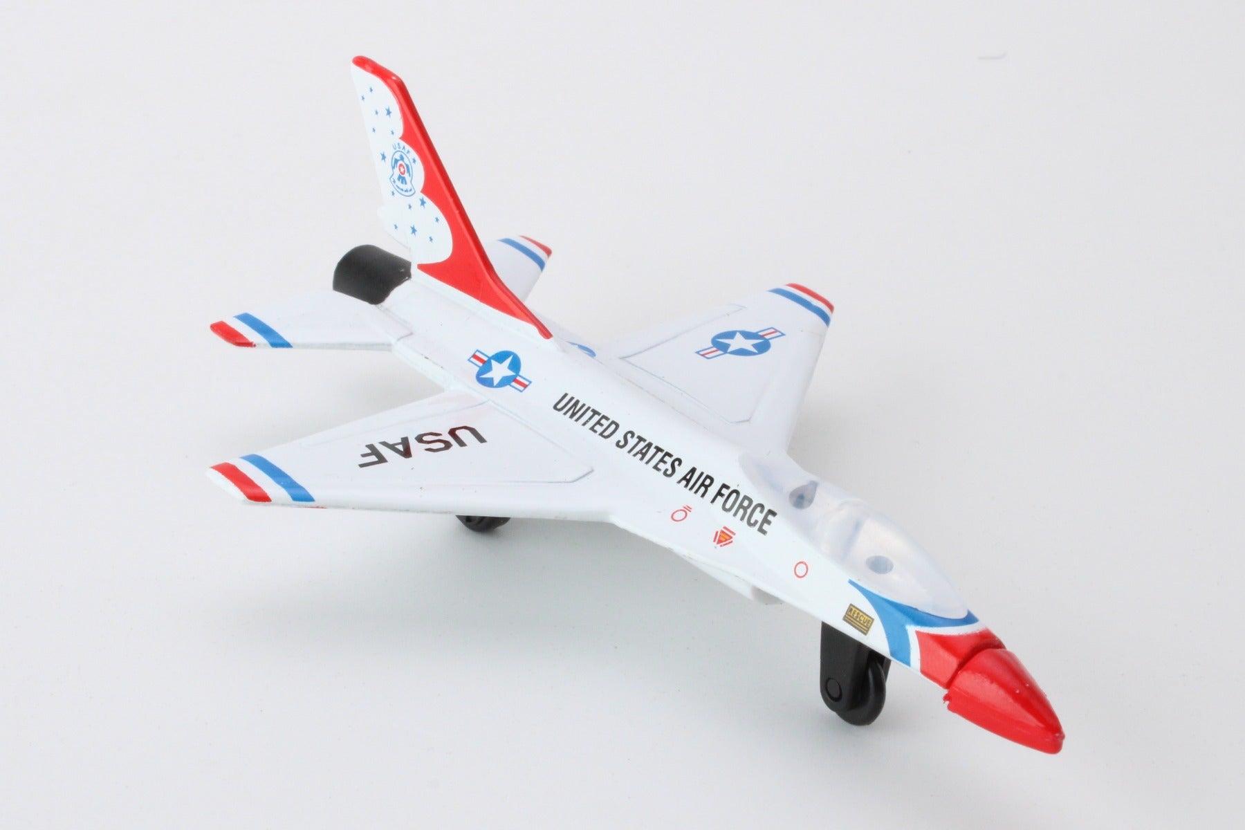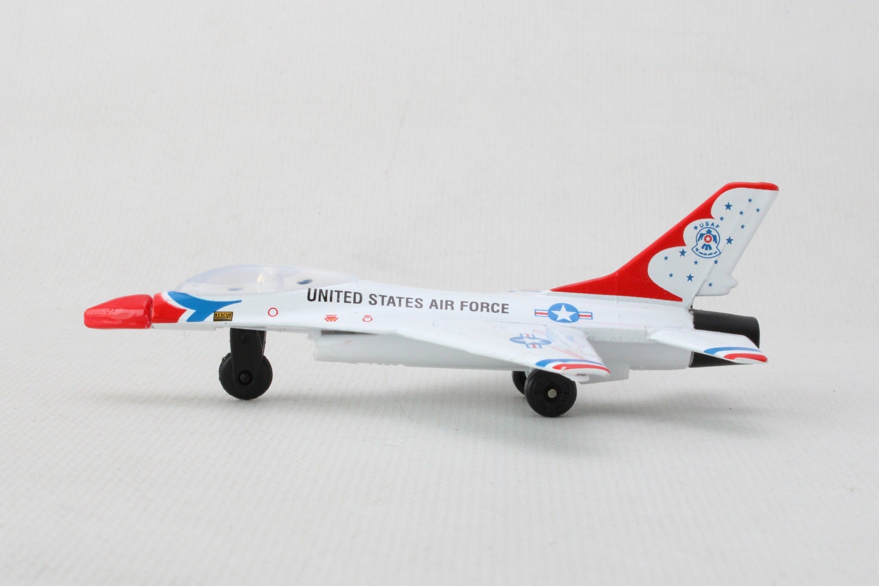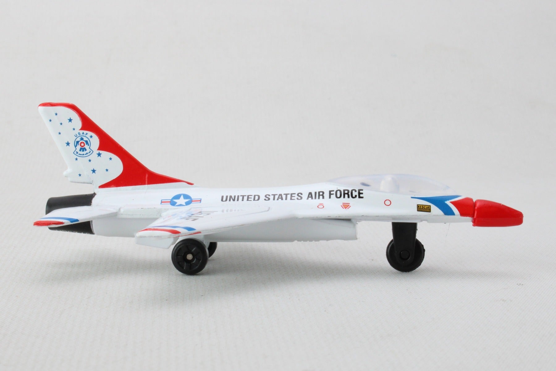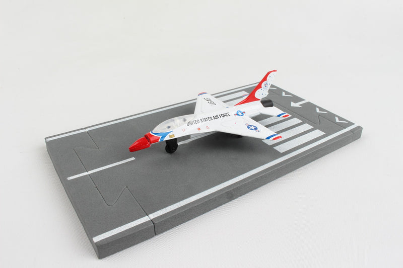 Runway24 by Daron (with Runway Section) are detailed, die-cast metal airplane toys that can be used together. Commerical, military and general aviation-style aircraft with real markings. Each die-cast aircraft comes with a flexible rubber runway section. These sections can be used together with other Runway24 sets to create your own airport. Intersections, straight sections, and curved pieces available seperately. Ages 3+