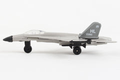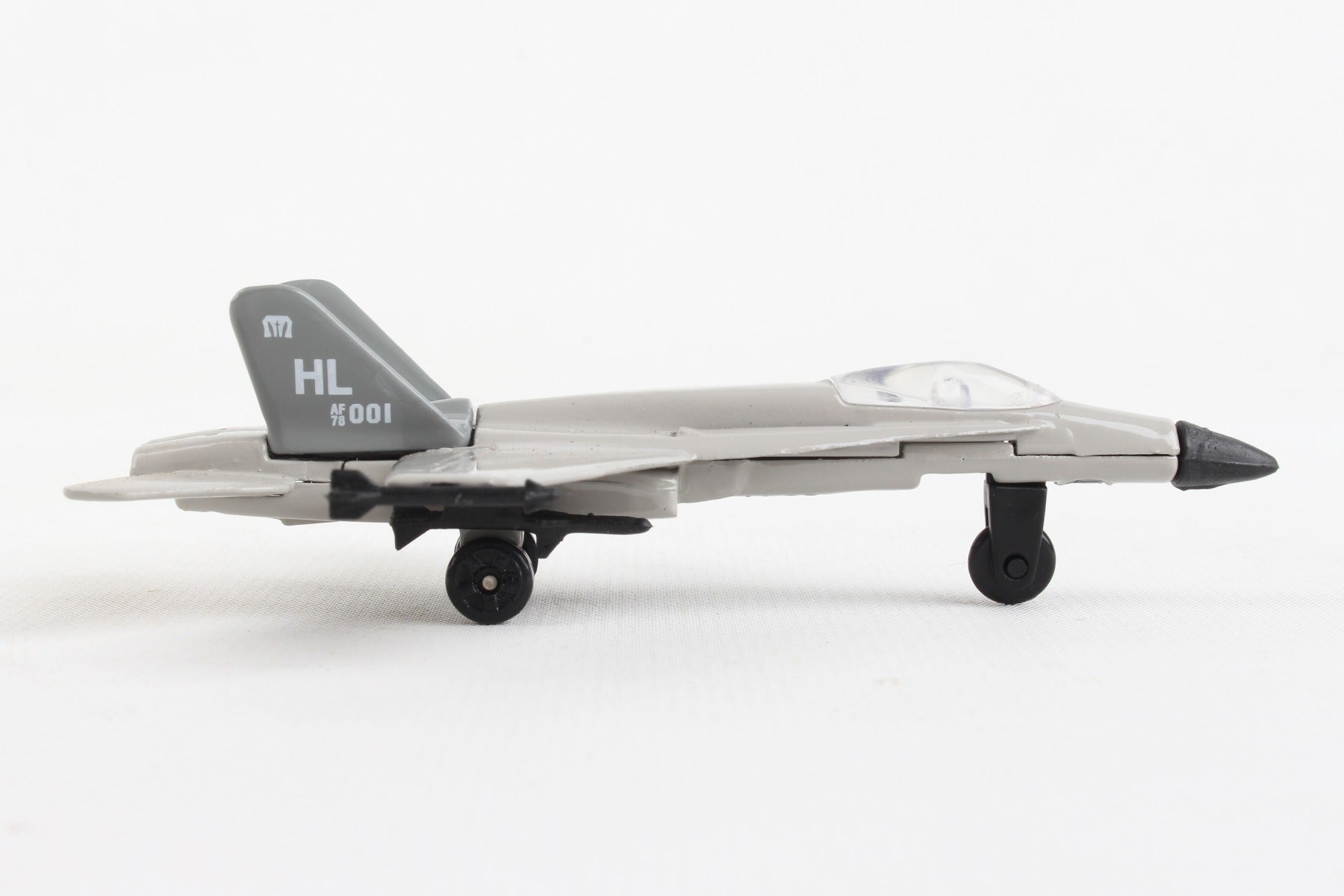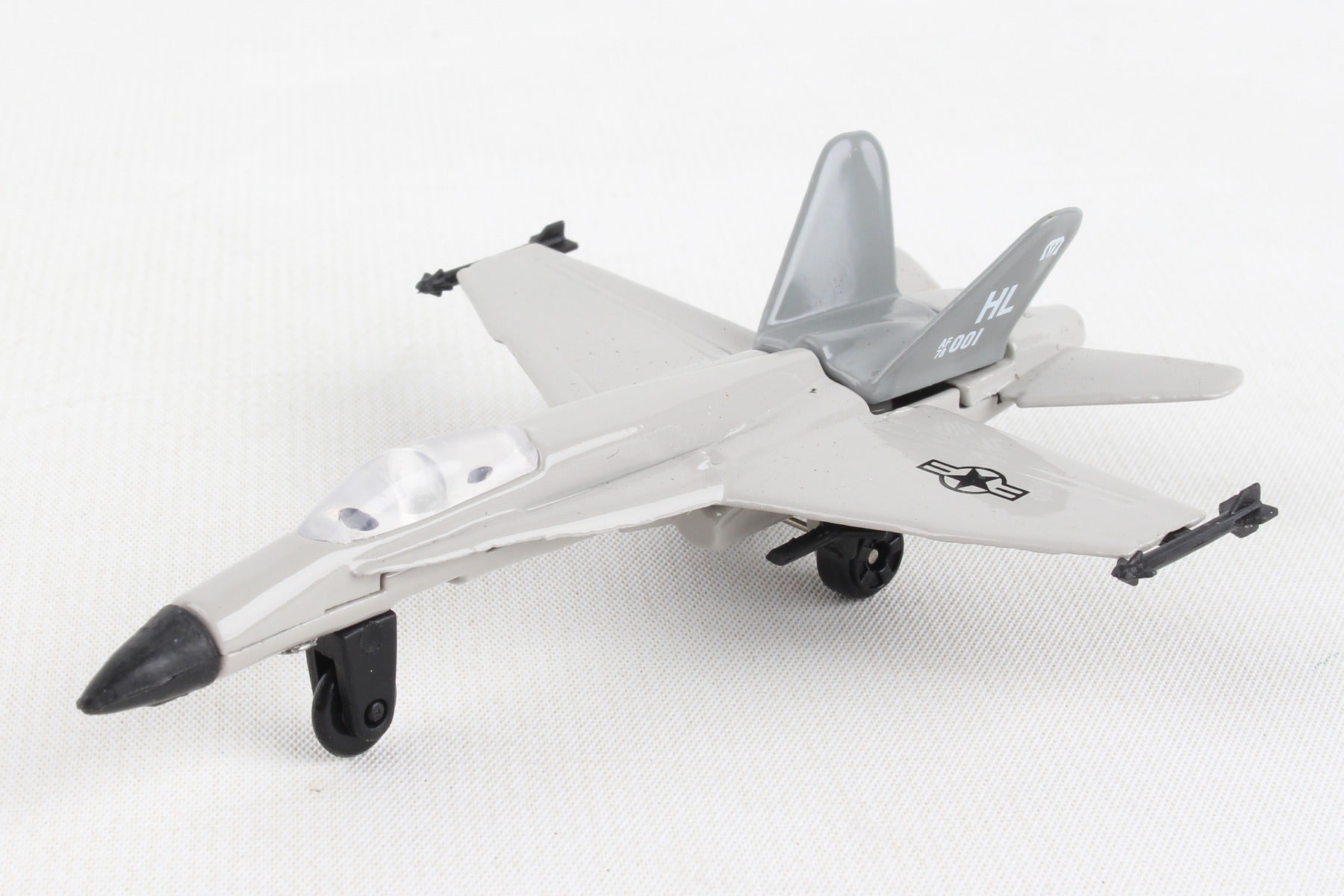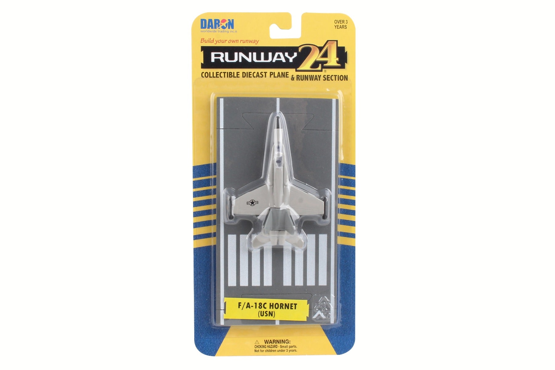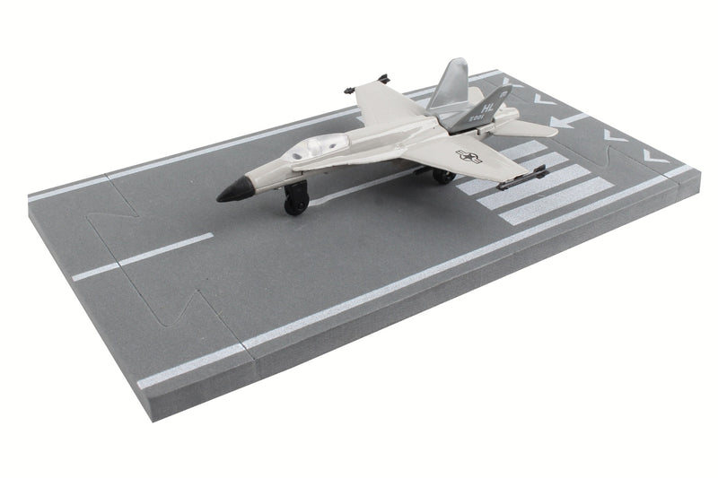 This die-cast metal model airplane comes with a foam rubber runway. Item is aprpoximately 4 1/4 inches long, 2 7/8 inch wingspan, 1 1/8 inches tall. Runway is 7 1/4 inches long, 4 inches wide and 1/4 inch thick. Ages 3+