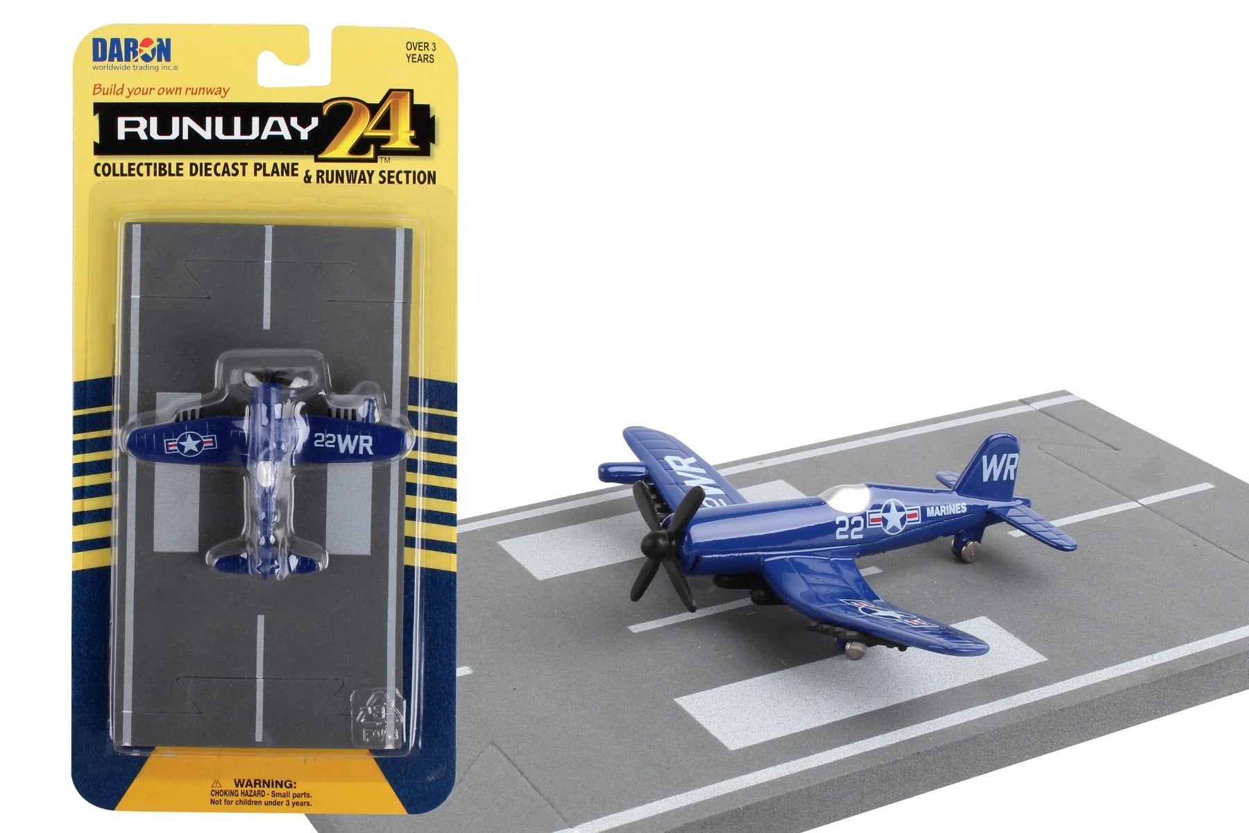 Runway24 by Daron (with Runway Section) are detailed, die-cast metal airplane toys that can be used together. Commerical, military and general aviation-style aircraft with real markings. Each die-cast aircraft comes with a flexible rubber runway section. These sections can be used together with other Runway24 sets to create your own airport. Intersections, straight sections, and curved pieces available seperately. Ages 3+