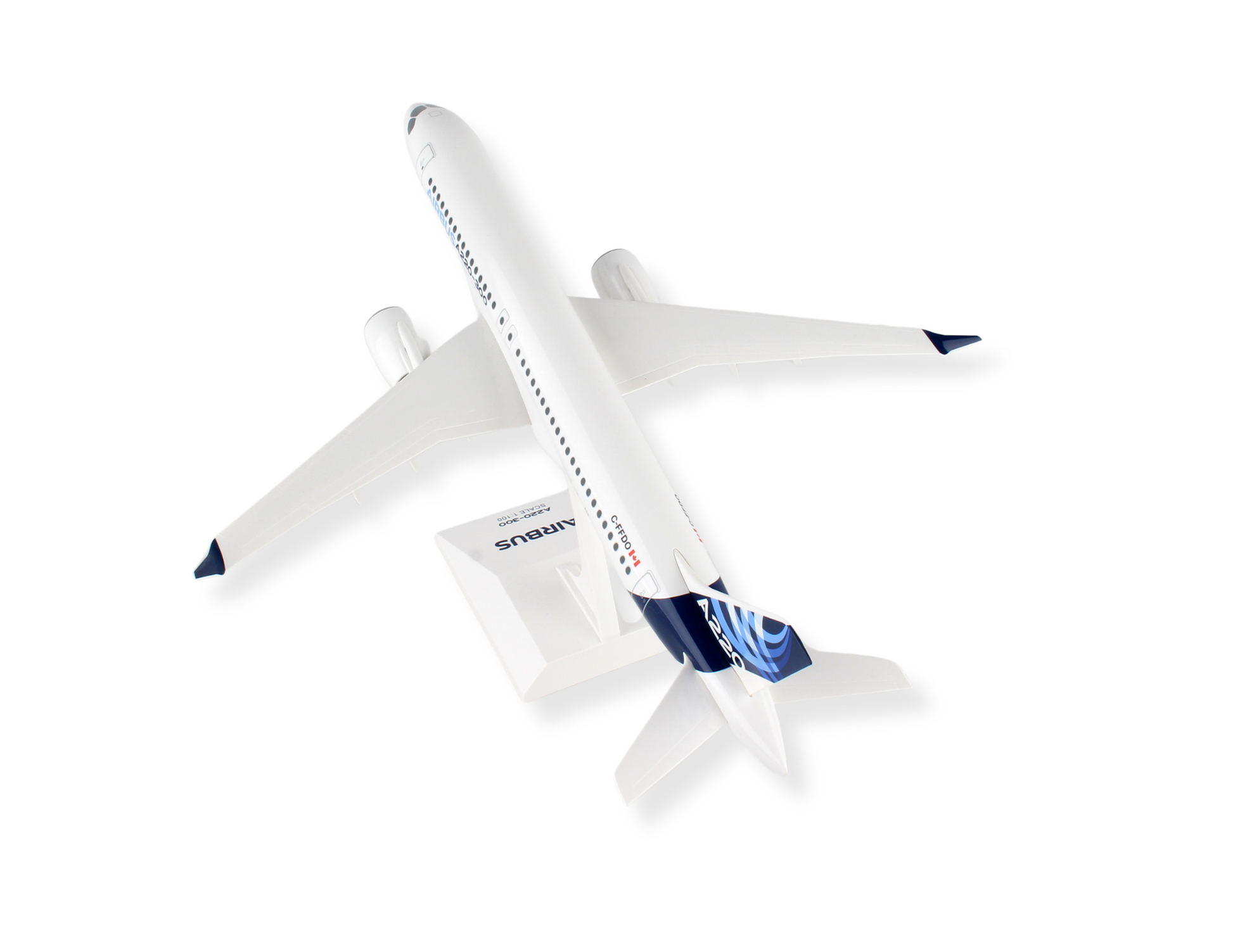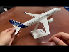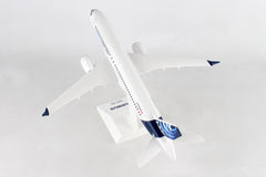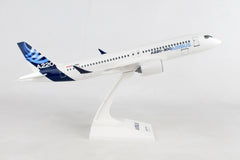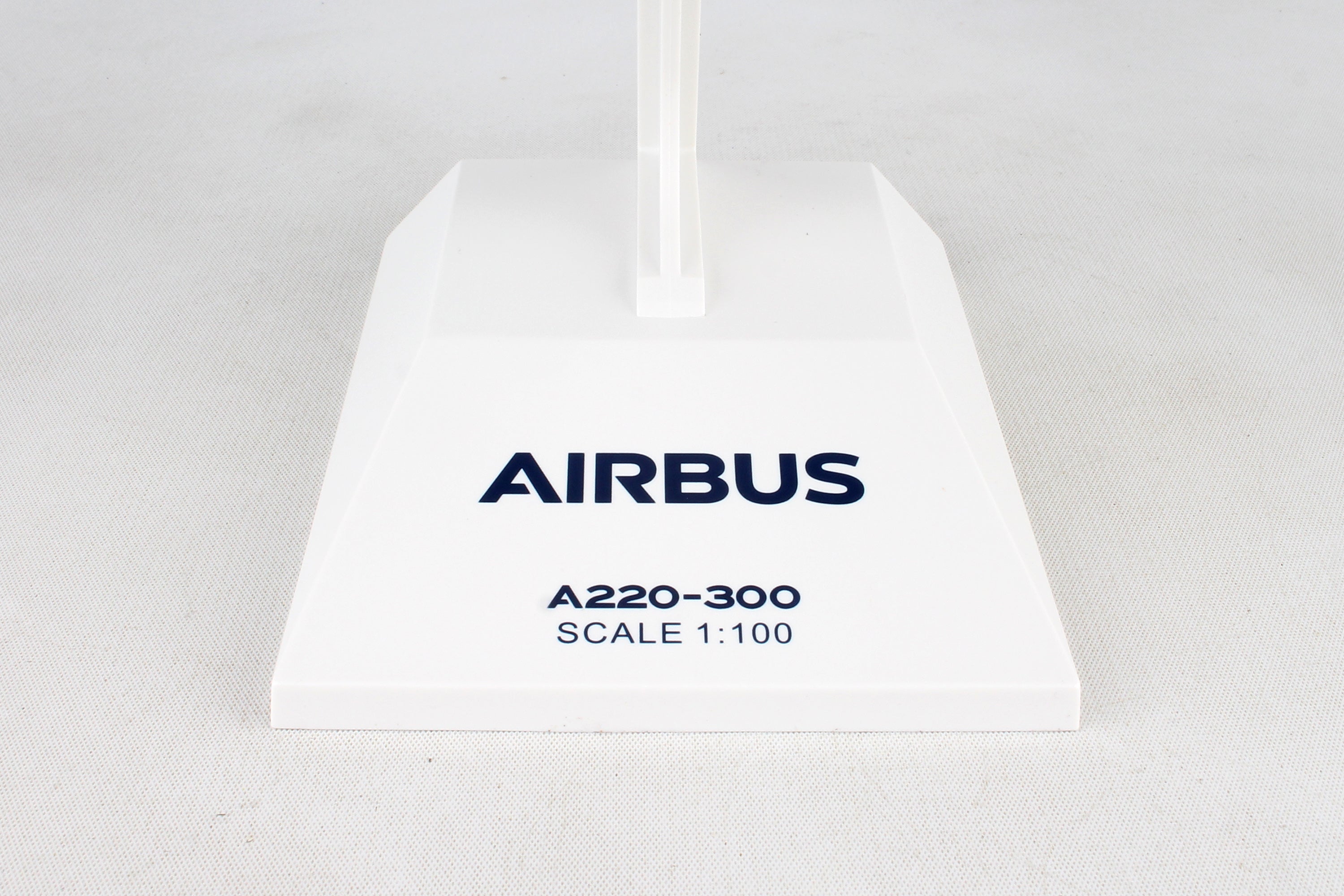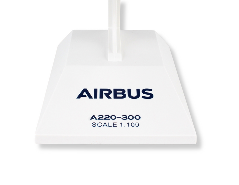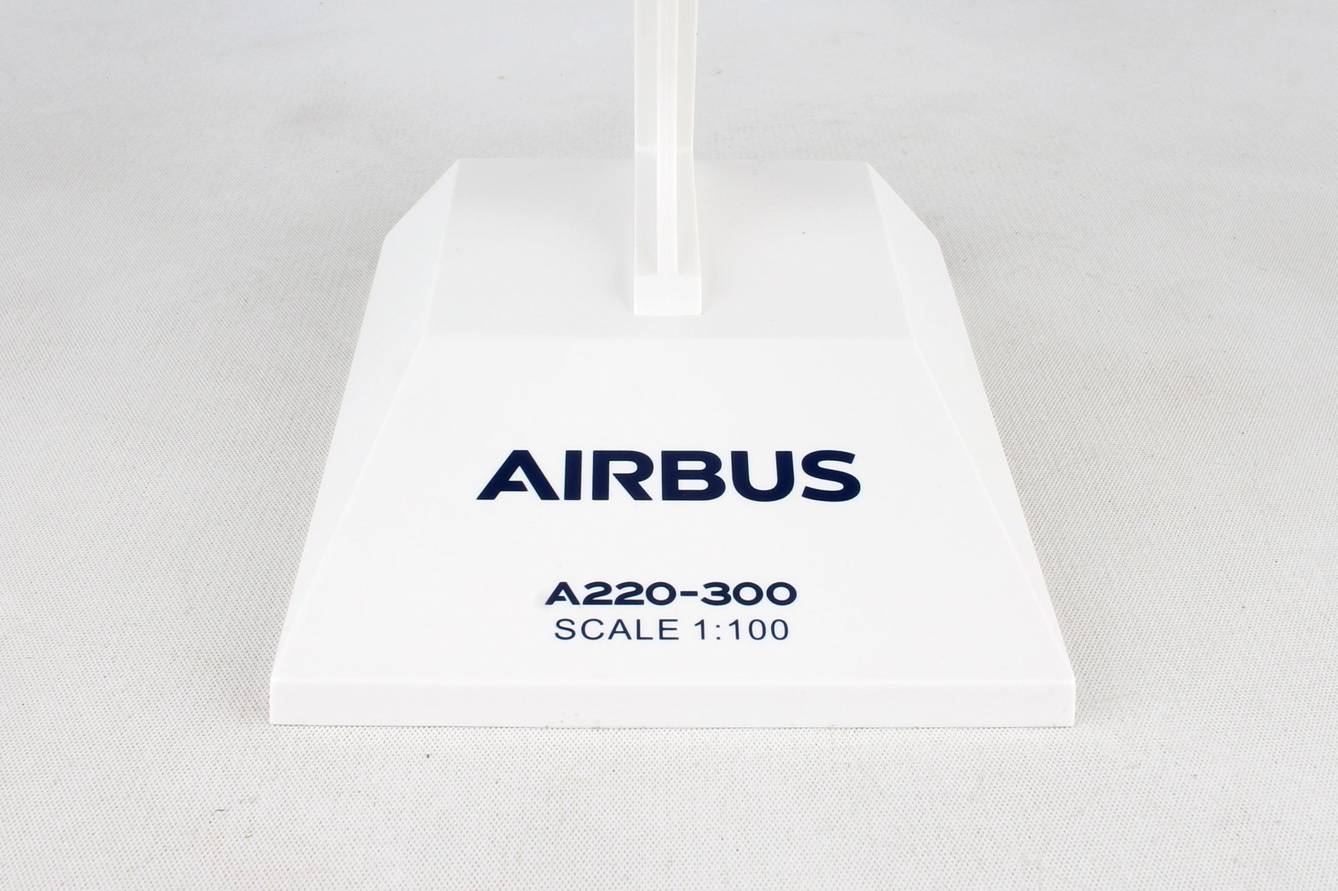 Comprising superior quality, solid, substantial injection molded plastic components with a simple snap-fit design that allows for easy assembly without the need for glue, this SkyMarks 1/100 Scale Airbus House Colors A220-300 - Registration C-FFDO - measures approximately 15-1/16-inches long with a 13-5/8-inch wingspan and comes complete with a Display Stand. An accurate, true-to-scale reproduction of the actual aircraft, the model is great for collectors and features authentic, highly detailed graphics and markings. The Airbus A220-300, which went into service at the end of 2016 and is larger than the initially introduced Airbus A220-100, is a modern, technologically advanced aircraft that was developed to fly 120-160 passengers up to 3,400 nautical miles in quiet comfort to different points that were either not feasible for several reasons or simply not profitable for the airlines. Recognized by airlines for its efficiency and economical operating costs, the Airbus A220-300, which is nearly identical to the Airbus A220-100 variant in almost all respects, enables airlines to cost effectively fly both versions while allowing pilots and flight crews to easily transition from one model to the other. According to Airbus, even though the Airbus A220 Family is the smallest jetliner in Airbus' commercial aircraft product line, not only does it offer unbeatable comfort, with its large seats, ample storage space and large windows, it is a single aisle aircraft that feels like a widebody jet.