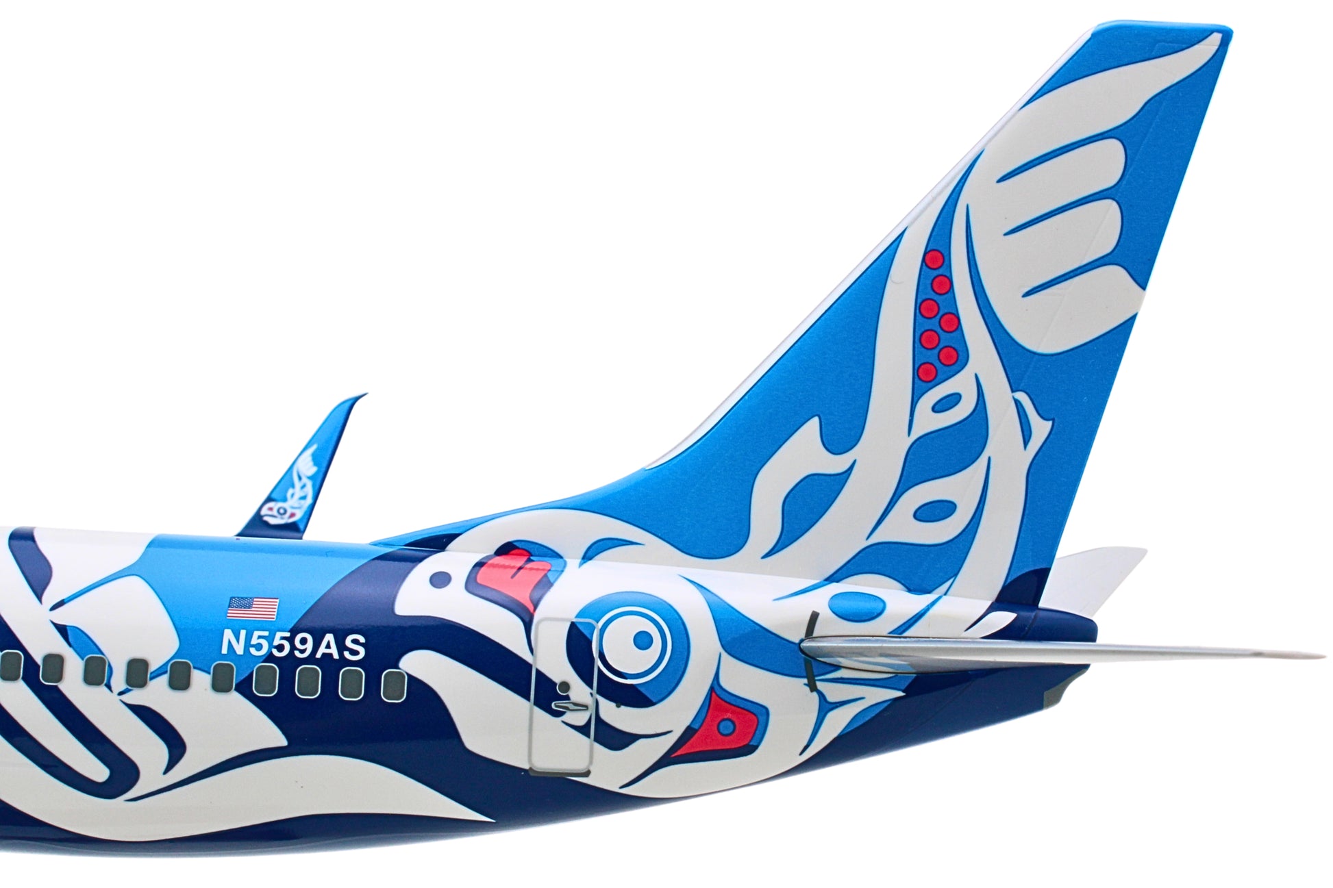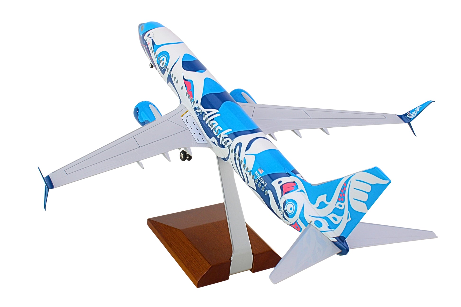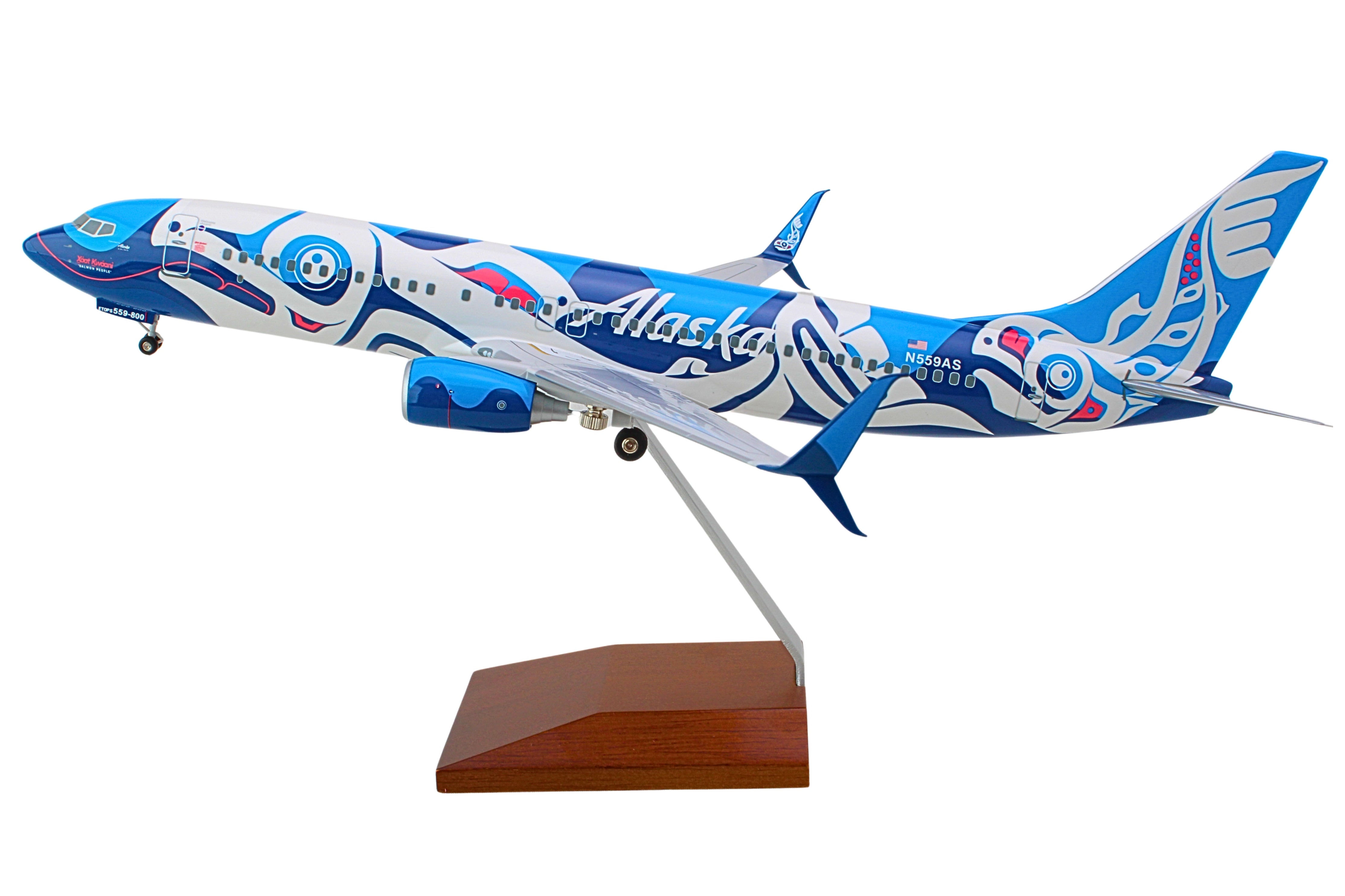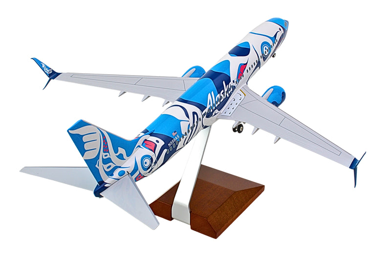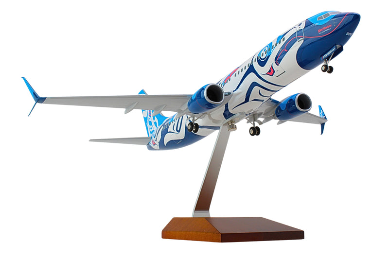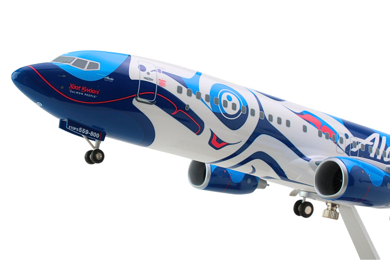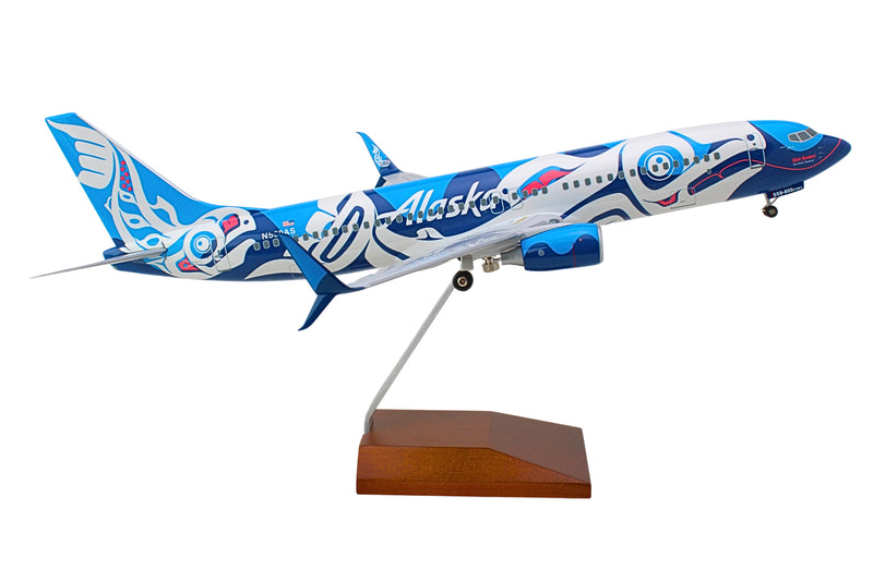 SKYMARKS ALASKA 737-800 1/100 SALMON W/WOOD STAND & GEAR