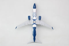 This model features solid injection molded plastic construction with highly detailed graphics. All models assemble in minutes and include a display stand. Model is approximately 12 inches long with 10 3/4 inch wingspan.