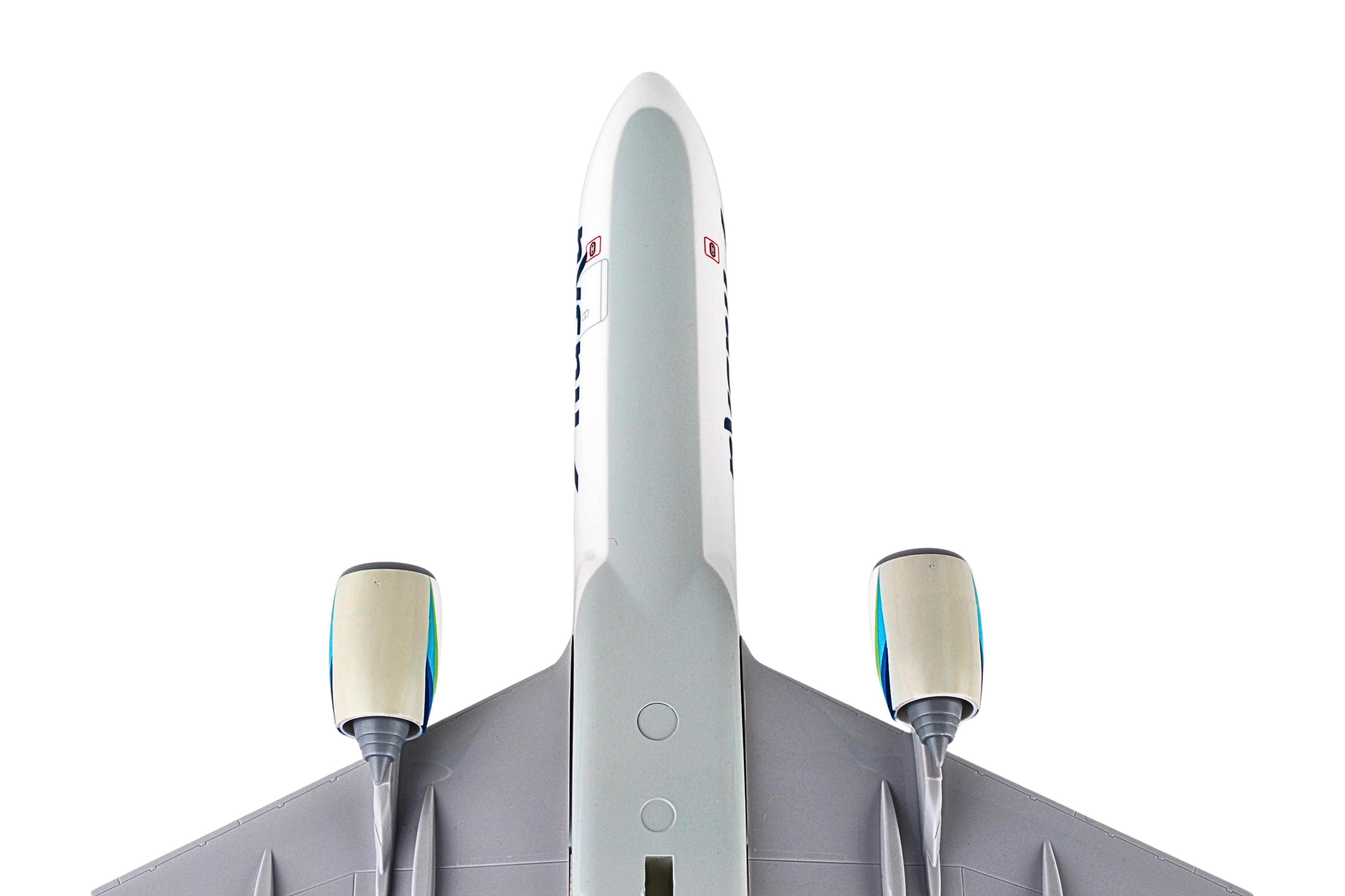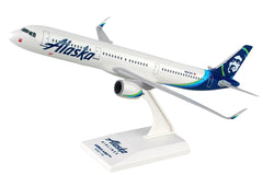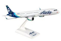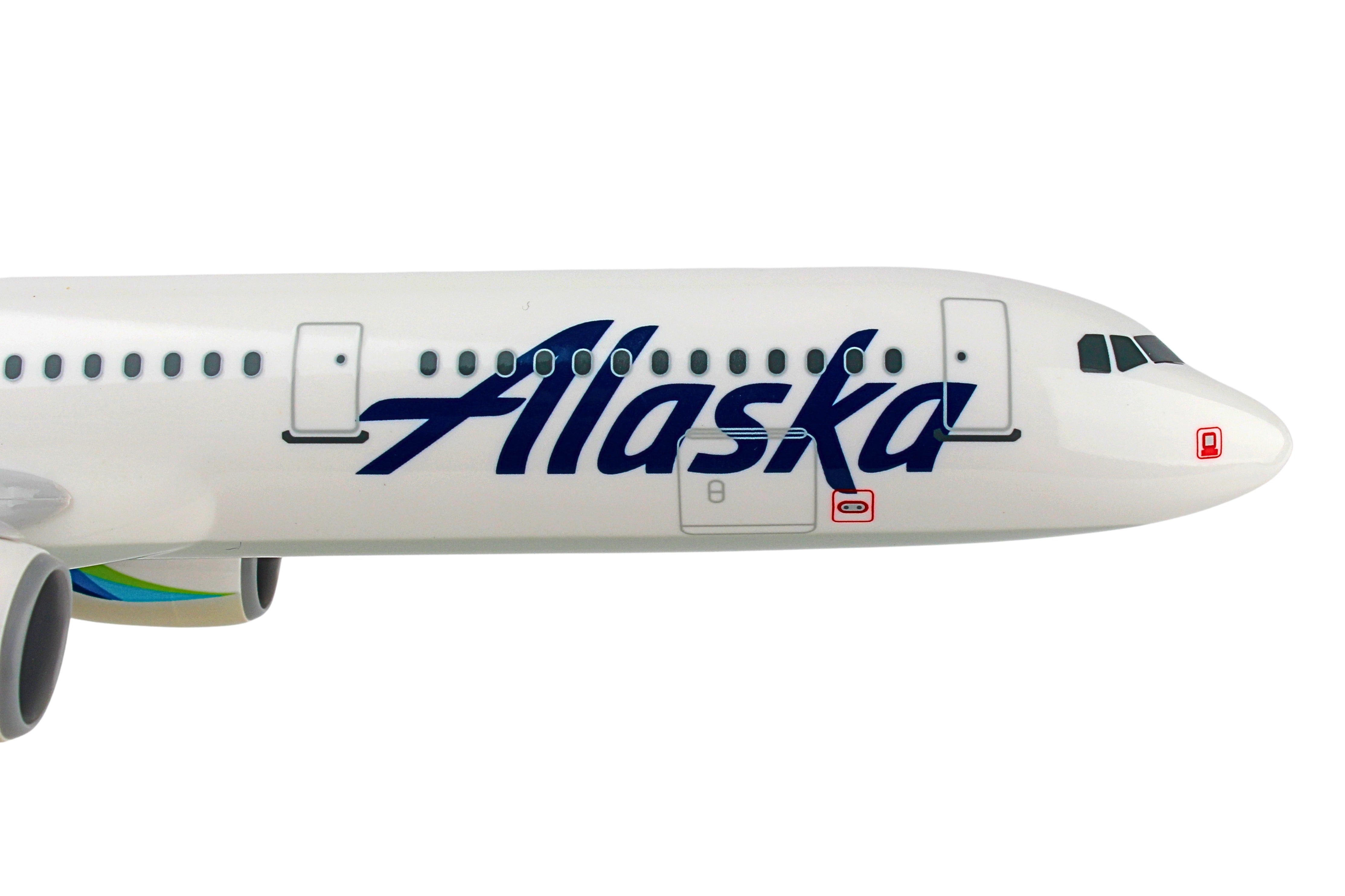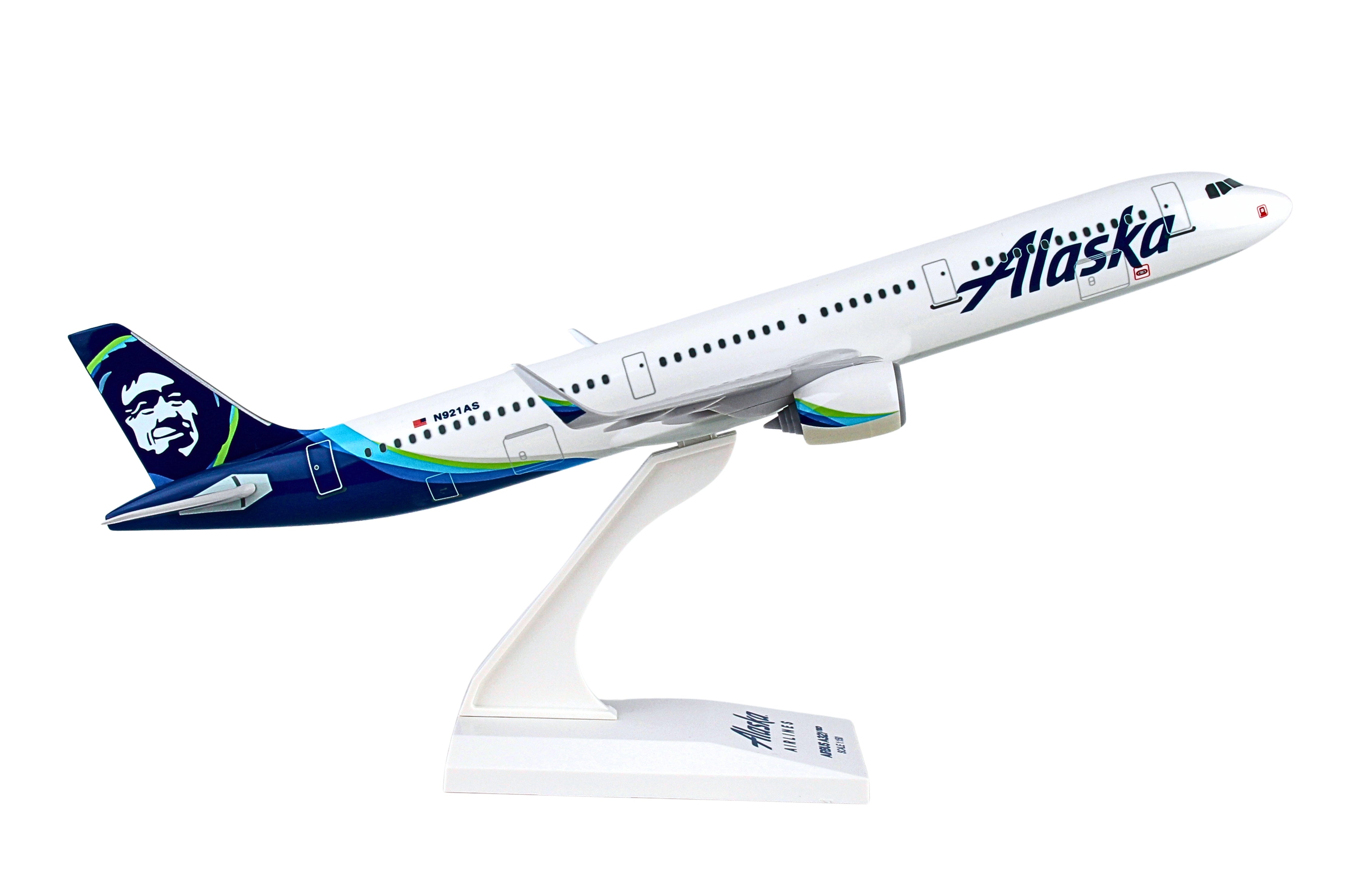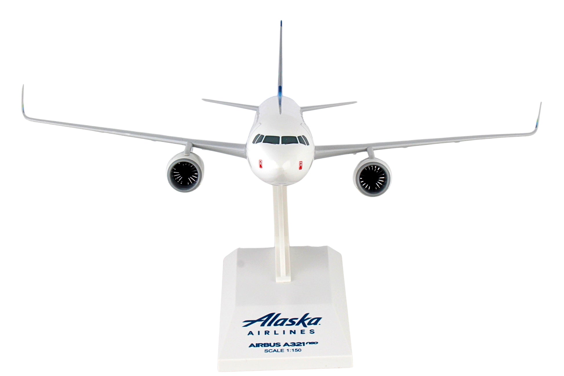Comprising superior quality, substantial, solid injection molded plastic components with a simple snap-fit design that allows for easy assembly without the need for glue, this SkyMarks 1/150 Scale Alaska Airlines Airbus A321neo - Registration N921AS - measures approximately 11-5/8-inches long with a 9-5/8-inch wingspan and comes complete with a Display Stand. An accurate, true-to-scale reproduction of the actual aircraft, the model is great for collectors and features authentic, highly detailed graphics and markings. The Airbus A321, which entered service in 1994 as an innovative pioneer with technologically advanced digital fly-by-wire side stick controls, is a stretched variant of the Airbus A320 family of short to medium range, narrow body commercial twin jet airliners and has the longest fuselage of the A320 series of aircraft. According to Airbus, it can comfortably seat 180 to 220 passengers in a typical two-class layout and as many as 244 passengers in a higher density arrangement. Utilized around the world by low-cost operators and mainline carriers alike to fly to all types of destinations in all types of environments, including short, urban runways, hot, dry deserts, icy Antarctic landing sites and remote high-altitude airports, the cockpit of the Airbus A321 shares commonality with the Airbus A319, A320 and A321, enabling pilots to not only readily change from one aircraft to another as needed with a Common Type Rating, they can even easily step up to widebody Airbus aircraft, making it easier for airlines to deploy flight crews with greater flexibility. Based on the previous A320 family, which includes the A319, A320 and A321, Airbus released a more efficient version of the current Airbus A321 (which it has renamed the A321ceo, for "current engine option"), the Airbus A321neo, for "new engine option," which offers more efficient engines along with airframe improvements and the addition of winglets, consequently yielding a fuel savings of up to 15% and a maximum flight range of 4,000 nautical miles.