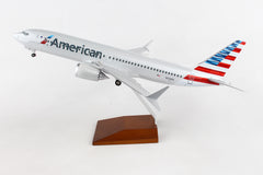 SKYMARKS AMERICAN 737MAX8 1/100 W/WOOD STAND & GEAR