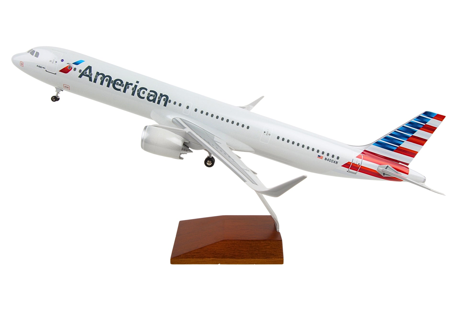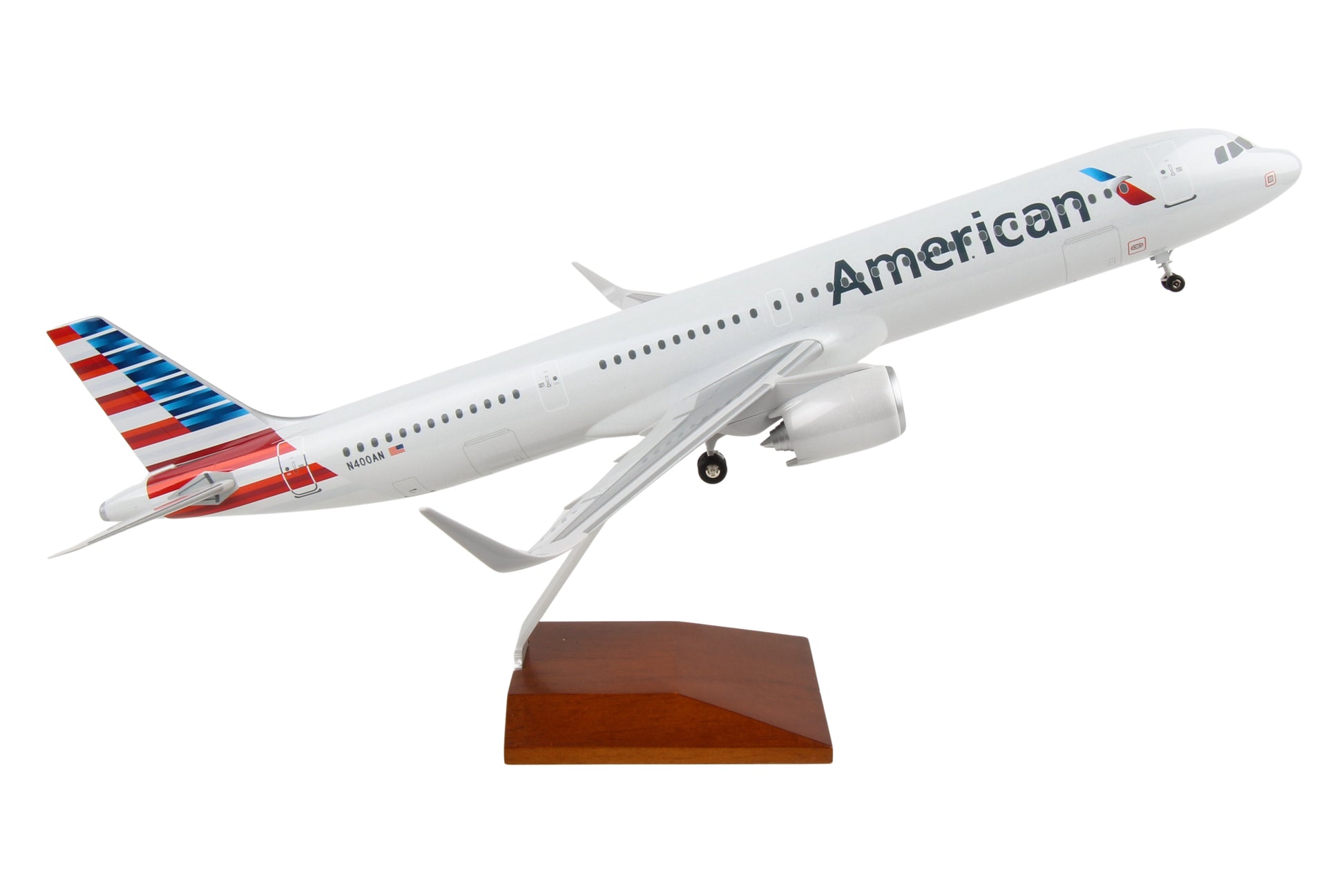 SKYMARKS AMERICAN A321NEO 1/100 W/WOOD STAND & GEAR