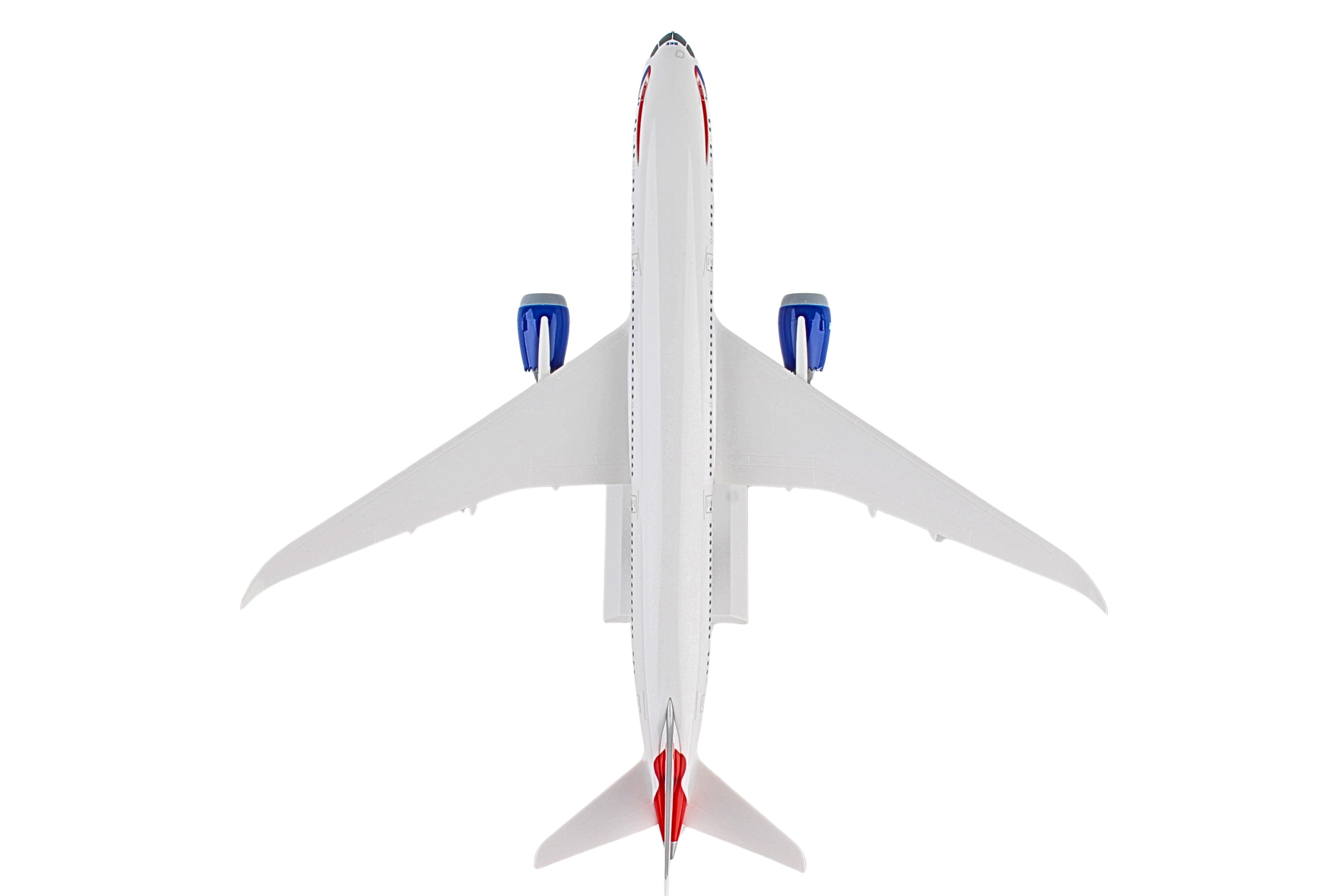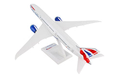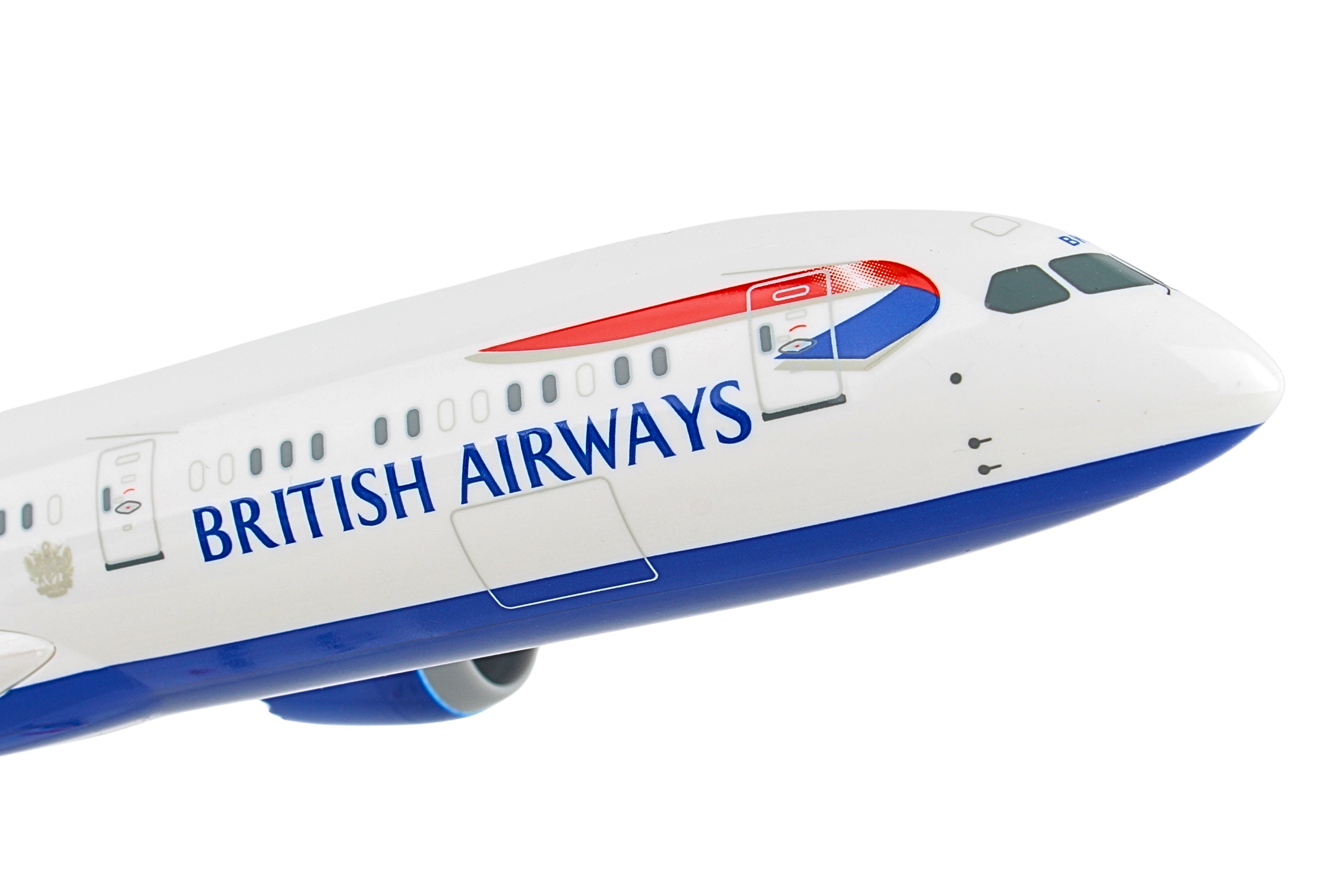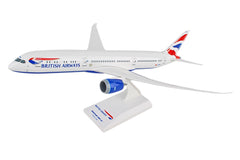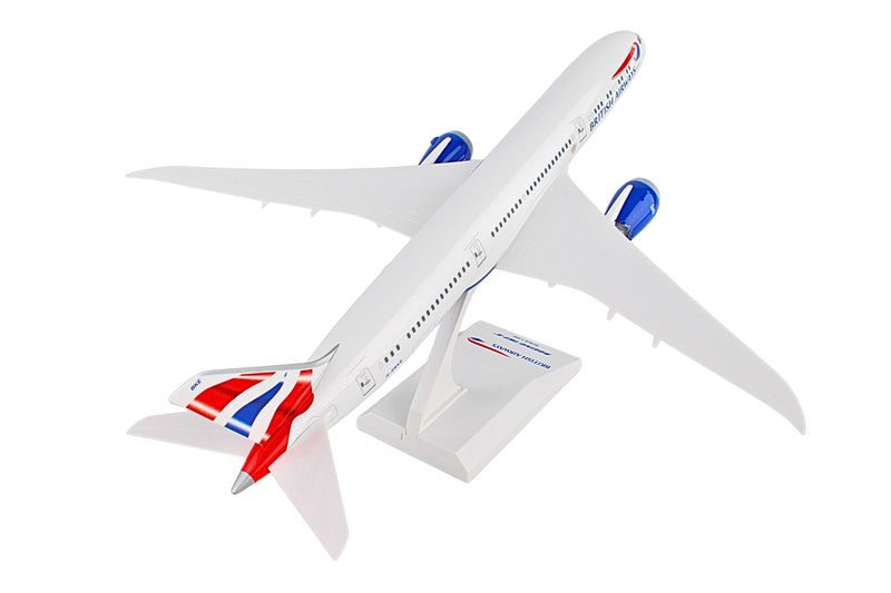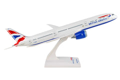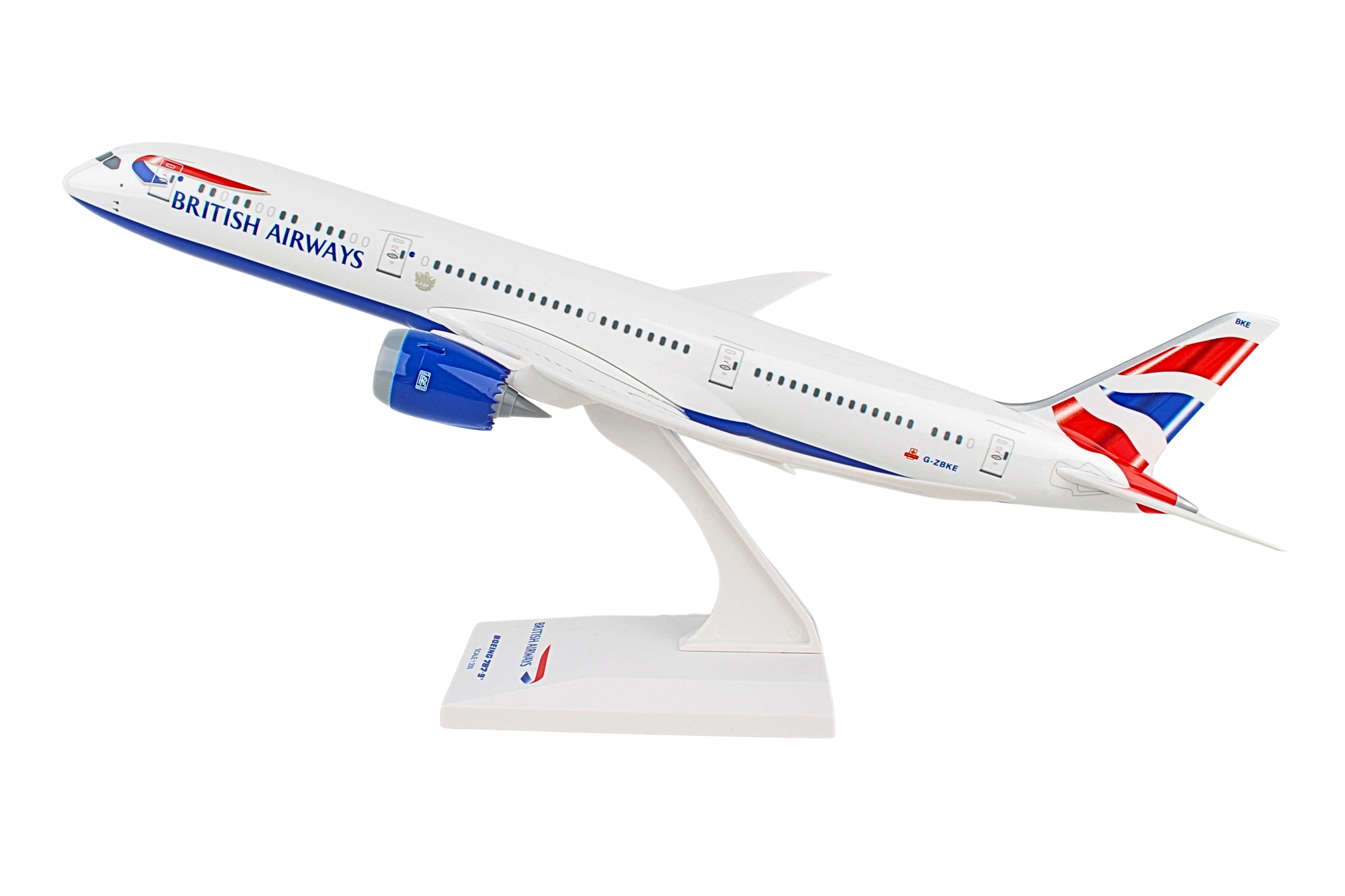 Comprising superior quality, solid, substantial injection molded plastic components with a simple snap-fit design that allows for easy assembly without the need for glue, this SkyMarks 1/200 Scale British Airways Boeing 787-9 Dreamliner - Registration G-ZBKE - measures approximately 12-3/8-inches long with a 12-1/8-inch wingspan and comes complete with a Display Stand. An accurate, true-to-scale reproduction of the actual aircraft, the model is great for collectors and features authentic, highly detailed graphics and markings. Having commenced service with the introduction of the Boeing 787-8 Dreamliner in 2011 as a more fuel-efficient, environmentally friendly successor to the aging Boeing 767, as market demand for the Boeing 747 and 767 had begun to slow down, the innovative, twin engine, wide-body Boeing 787 Dreamliner is currently offered in three different versions that can be configured to seat from 248 up to 336 passengers and is recognized by its prominently curved aerodynamic wings with raked back wingtips and chevrons on its engine nacelles. Technologically advanced with state-of-the-art avionics, electronics systems and an airframe that primarily comprises lightweight composite materials, the Boeing 787 Dreamliner can fly ultra-long-haul, non-stop, point-to-point routes up to 8,500 nautical miles where bigger aircraft cannot be accommodated or are financially justifiable, and offers improved cabin noise and oxygen levels, larger windows, and a very spacious interior design for maximum flying pleasure. Intended to replace the aging Boeing 767-300ER, the Boeing 787-9, which went into service in 2014, is a lengthened version of the launch version Boeing 787-8 with a higher maximum takeoff weight, and because of its increased range over the launch model, can fly 296 passengers to an even greater number of non-stop routes with exceptional efficiency.